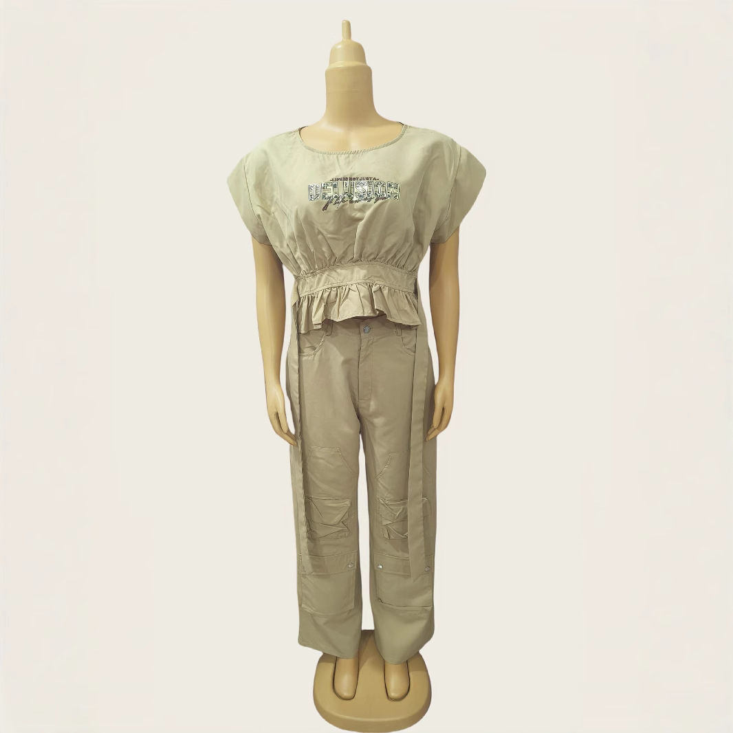 This African Print Round Neck Slim Waist Short-Sleeve Top + Loose Cargo Pants Set Design Made Of High Quality polyester And Spandex Material. It Is Stretchy, Durable And Comfortable. It Is a Must-Have Outfit For All Seasons. retail Two Piece Pant Sets Can Solve Your cloth selection Troubles. Explore More 2 Piece Pants Set On BamBam retail Women Clothing Online Store.