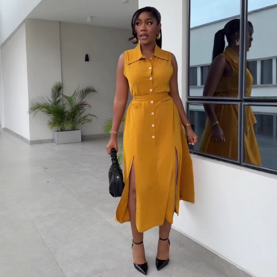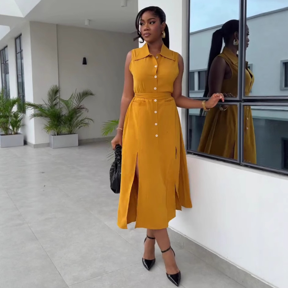 This African Women's Loose Elegant Belt Slim Fit Vest Dress Plus Size Trendy Maxi Dress Design Made Of High Quality polyester And Spandex Material. It Is Stretchy, Durable And Comfortable. Casual Dresses With Long Sleeves Can Not Only Be Worn As Outerwear In Spring And Autumn, But Also Matching a Jacket In Winter, It Is a Must Have Item For Every Season. Grab Really Great Buy Casual Dresses For Women And Grow Your Business. No Moq In BamBam.