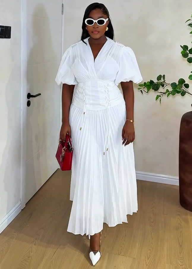 This African Women's v-Neck Puff Sleeve Lace-Up Slim Waist Solid Color Trendy Pleated Maxi Dress Design Made Of High Quality polyester And Spandex Material, Which Is Stretchy, Soft And Comfortable. It's Always On Trend. This Casual Maxi Dresses Is a Must-Have For Vocations And Dating Occasions. Maxi Dresses At BamBam Comes With Huge Selections Of Colors, Sizes, Material, And Designs. When You Need retail affordable Maxi Dresses, You Can Always Find Vary Collection And No Moq On Our retail Women Fashion Online Store.