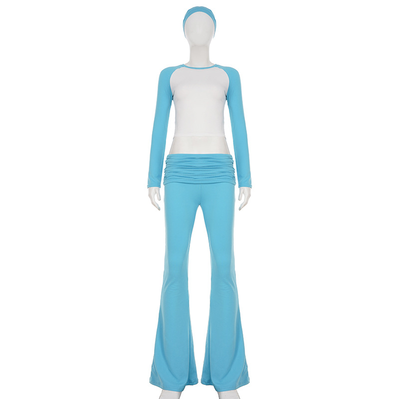 This American Casual Sport Color Block Long Sleeve t-Shirt & Fold-Waist Pants Gym Three-Piece Set Design Made Of High Quality polyester And Spandex Material. It Is Stretchy, Durable And Comfortable. It Is a Must-Have Outfit For All Seasons. retail Two Piece Pant Sets Can Solve Your cloth selection Troubles. Explore More 2 Piece Pants Set On BamBam retail Women Clothing Online Store.