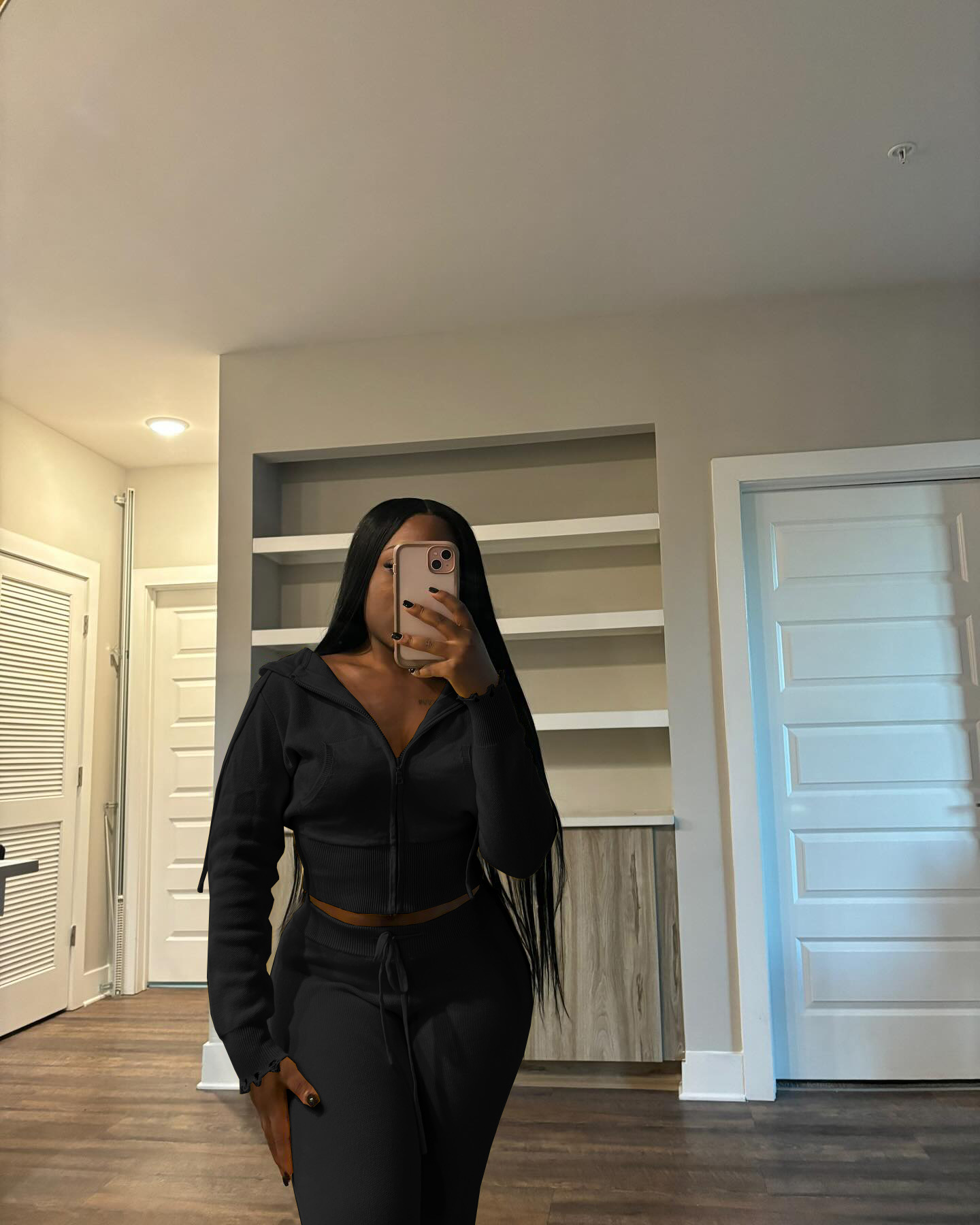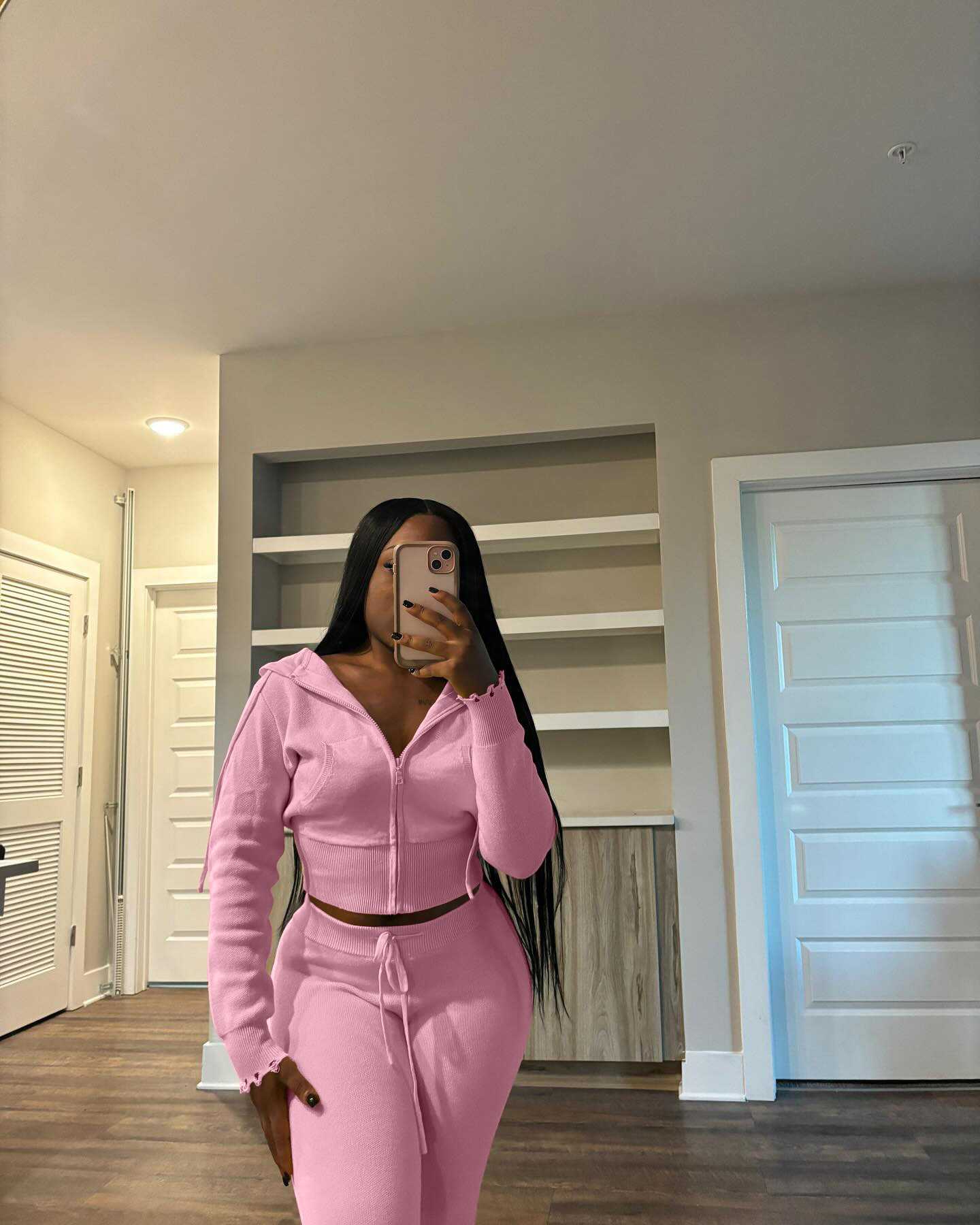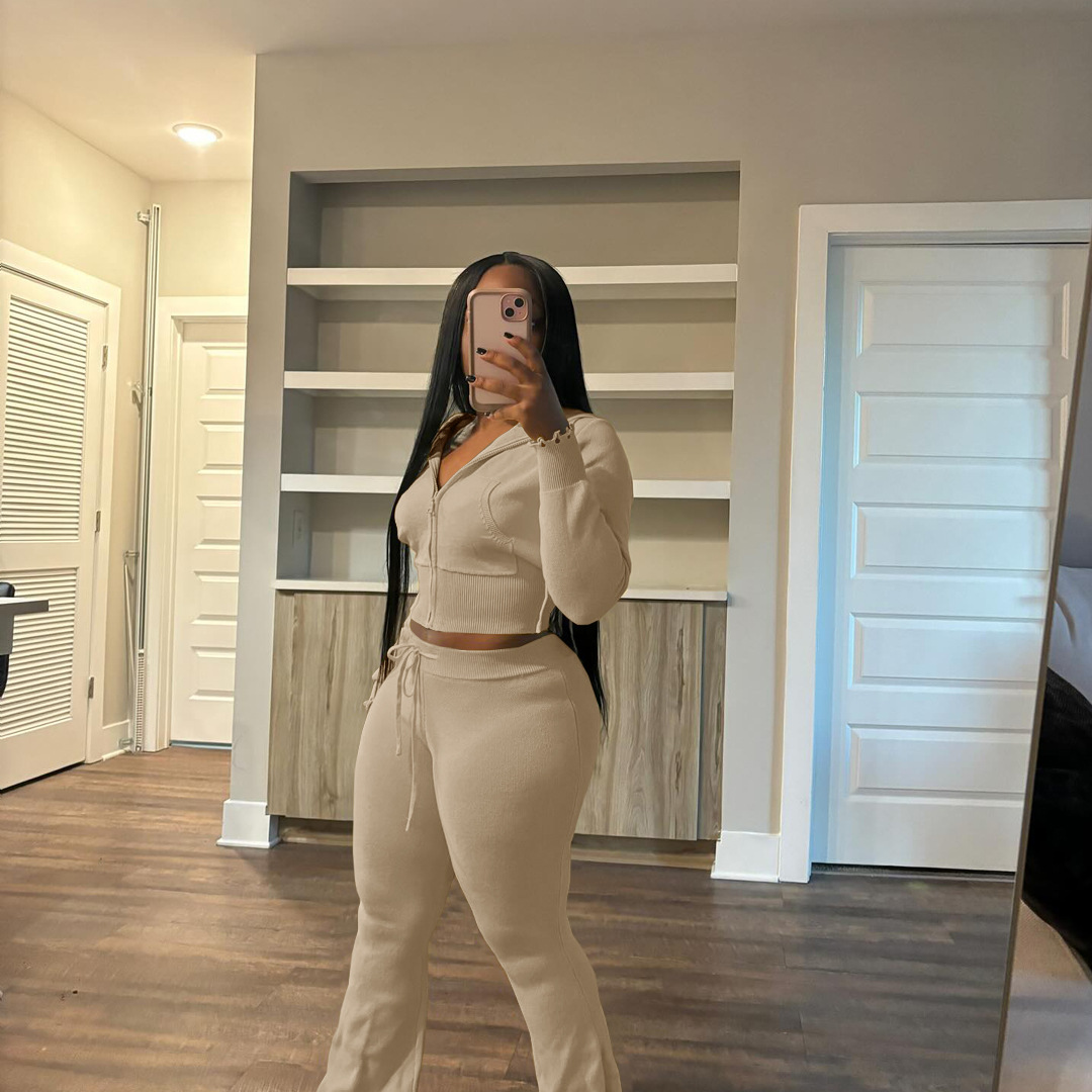 This Autumn And Winter Women's Zipper Hooded Sweater Knitting Pants Fashion Casual Sports Two Piece Set Design Made Of High Quality polyester And Spandex Material. It Is Stretchy, Durable And Comfortable. It Is a Must-Have Outfit For All Seasons. retail Two Piece Pant Sets Can Solve Your cloth selection Troubles. Explore More 2 Piece Pants Set On BamBam retail Women Clothing Online Store.