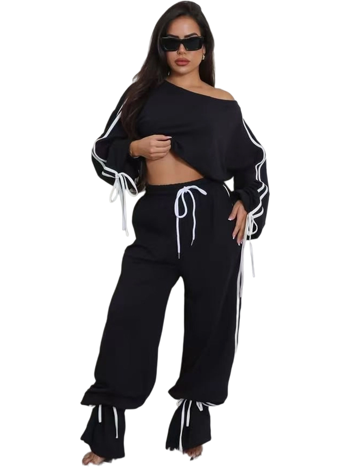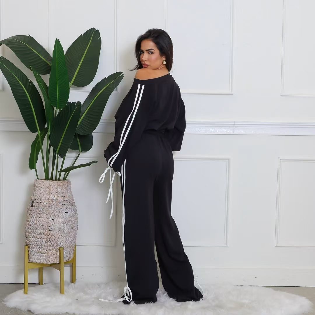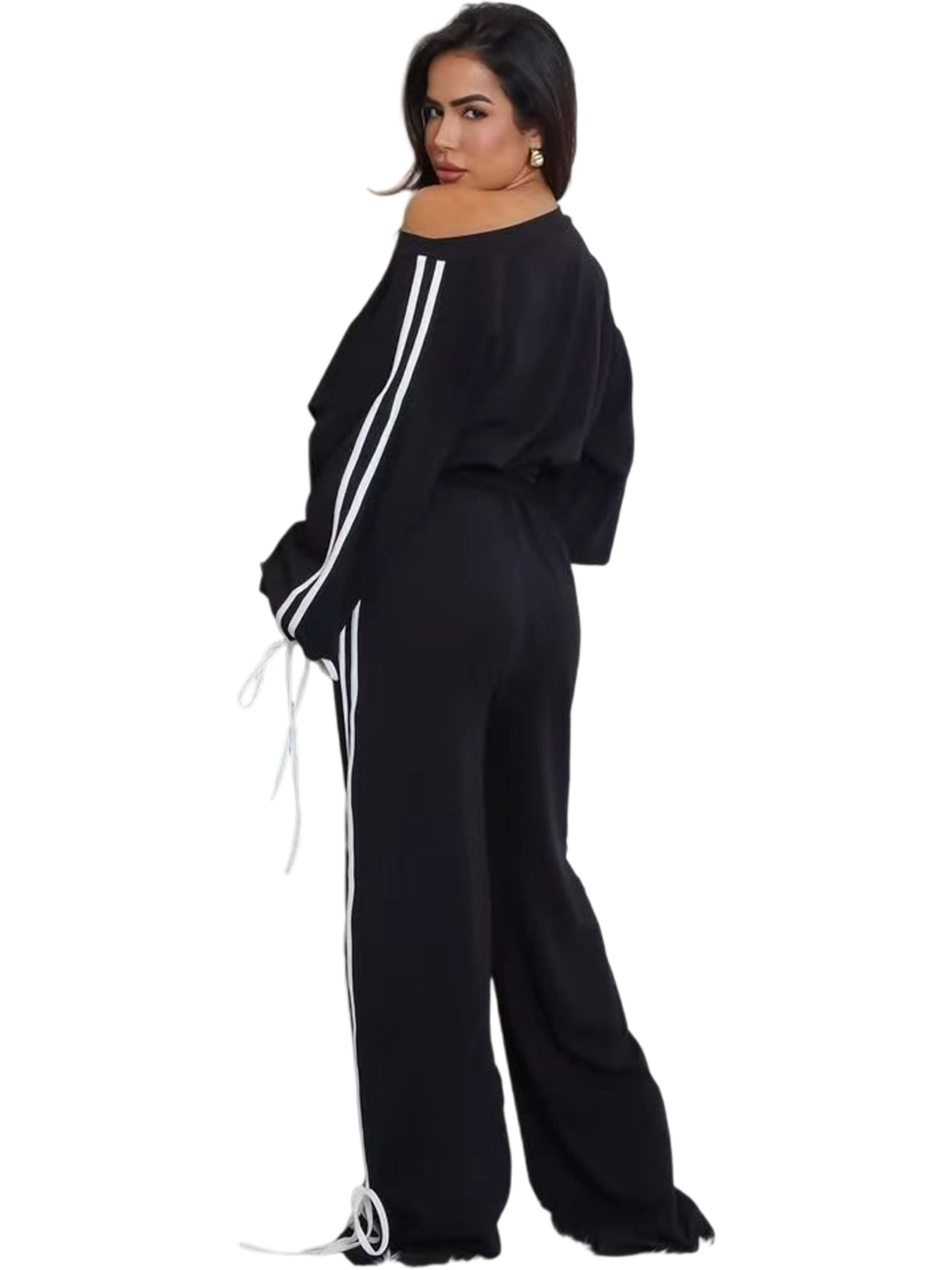 This Autumn Casual Women's Solid Color Loose Webbing-Trimmed Two-Piece Pants Set Design Made Of High Quality polyester And Spandex Material. It Is Stretchy, Durable And Comfortable. It Is a Must-Have Outfit For All Seasons. retail Two Piece Pant Sets Can Solve Your cloth selection Troubles. Explore More 2 Piece Pants Set On BamBam retail Women Clothing Online Store.