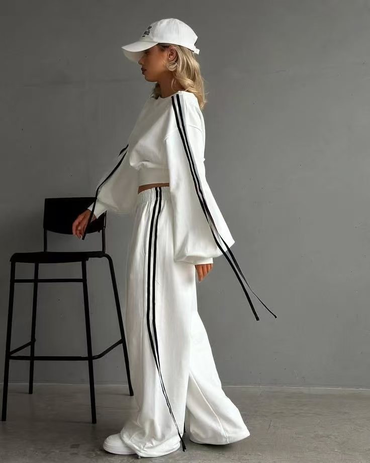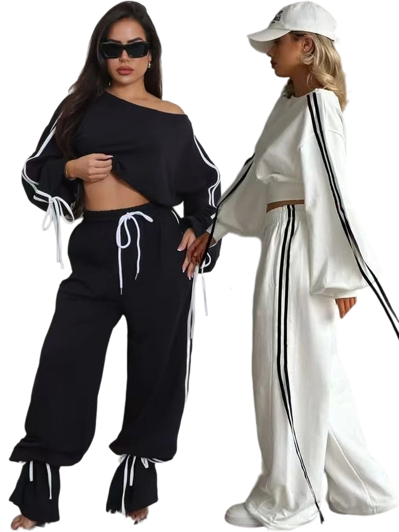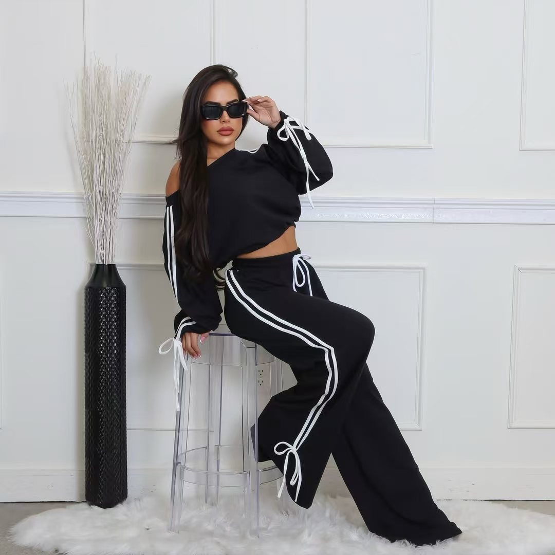 This Autumn Casual Women's Solid Color Loose Webbing-Trimmed Two-Piece Pants Set Design Made Of High Quality polyester And Spandex Material. It Is Stretchy, Durable And Comfortable. It Is a Must-Have Outfit For All Seasons. retail Two Piece Pant Sets Can Solve Your cloth selection Troubles. Explore More 2 Piece Pants Set On BamBam retail Women Clothing Online Store.
