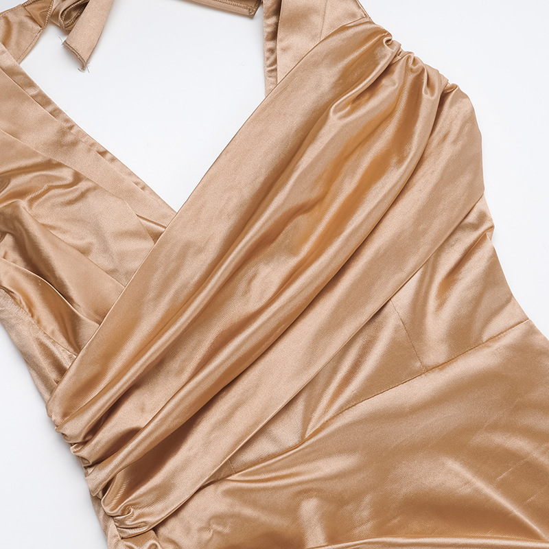 This Autumn Chic Sexy Halter Slim Pleated Deep v Satin Long Dress Design Made Of Good Quality polyester And Spandex Material, Which Is Stretchy, Durable And Comfortable. The Long Evening Dresses And gowns are Always The main Choice For All Kinds Of Parties, Cocktail, Prom, Events, And Dating Occasions. Evening Gowns At BamBam Comes With Huge Selections - Sequins, Beaded, Satin, Velvet, Lace.... When You Need retail Evening Dresses, BamBam retail Women Garment Online Shop Is Your One-Stop Online Shopping Choice.
