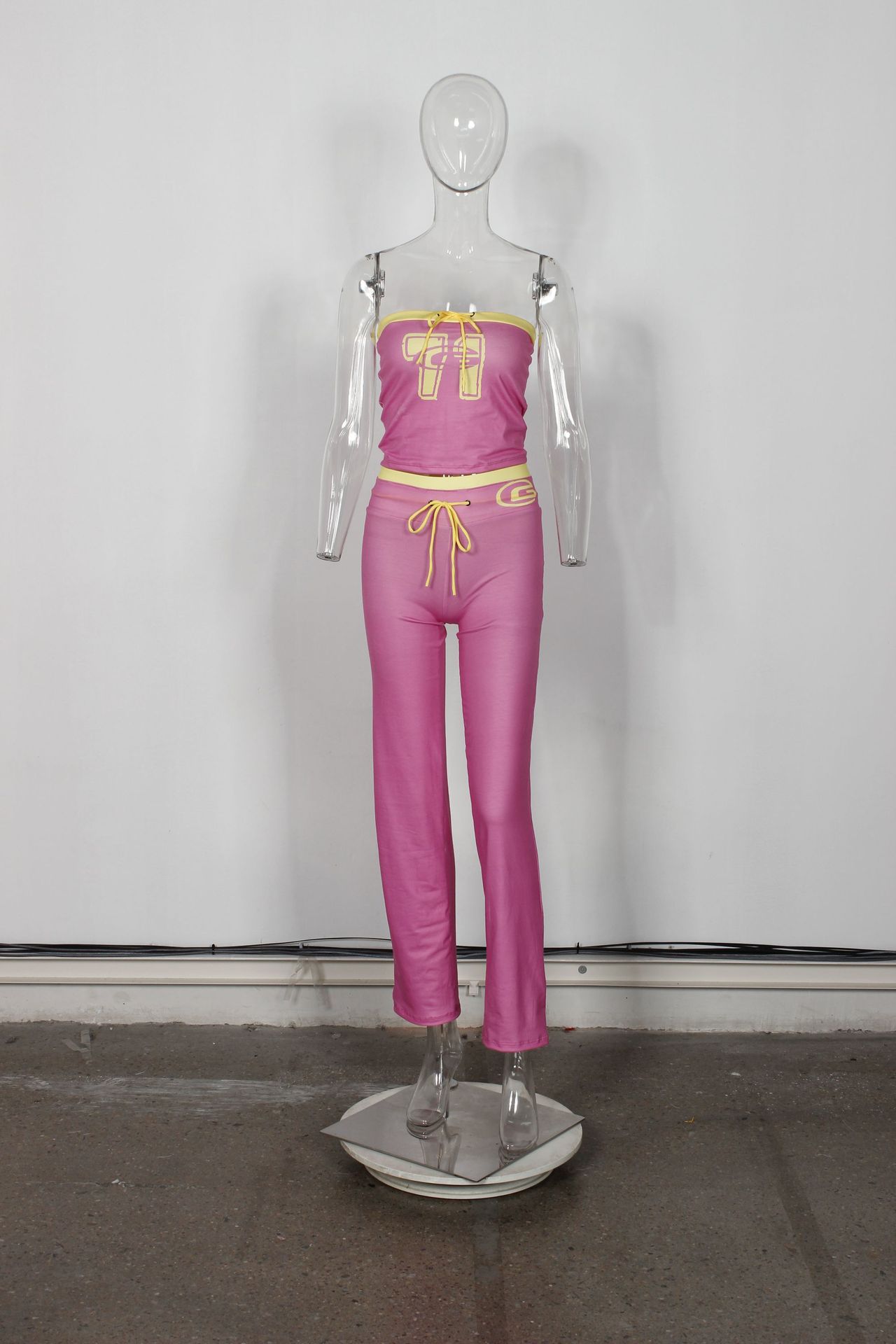 This Autumn Fashion Slim Contrast Color Sexy Short Strapless Crop Top Trousers Two Piece Set Design Made Of High Quality polyester And Spandex Material. It Is Stretchy, Durable And Comfortable. It Is a Must-Have Outfit For All Seasons. retail Two Piece Pant Sets Can Solve Your cloth selection Troubles. Explore More 2 Piece Pants Set On BamBam retail Women Clothing Online Store.