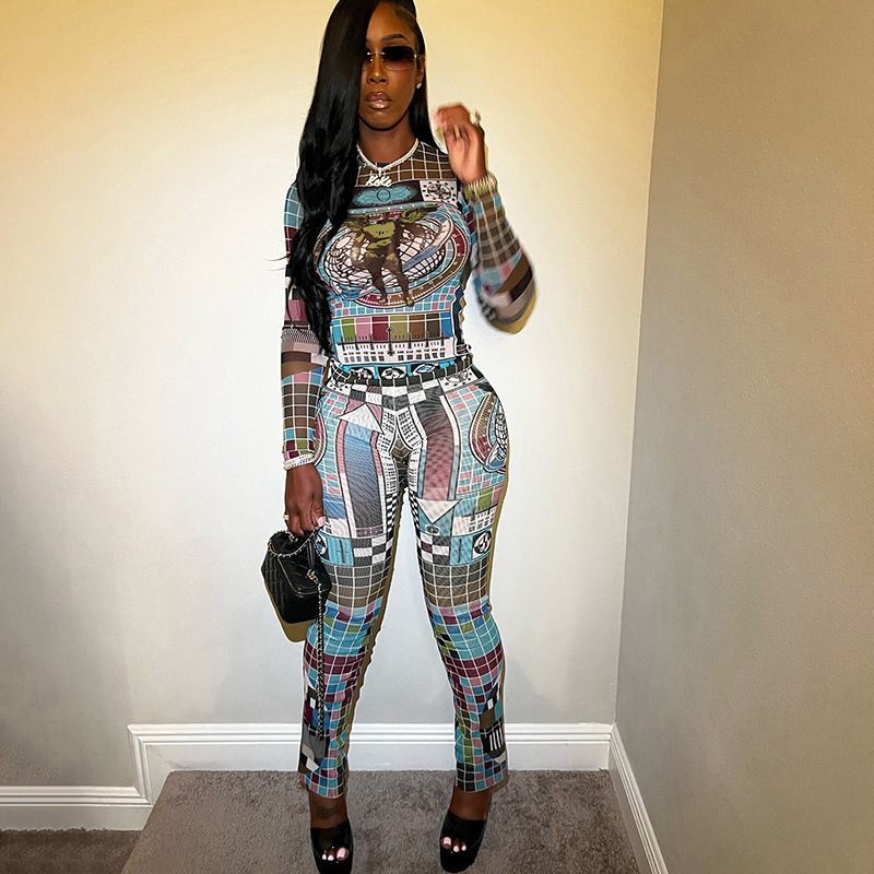 This Autumn Street Trend Tight Fitting Print Crop Long Sleeve Top Trousers Two Piece Set Design Made Of High Quality polyester And Spandex Material. It Is Stretchy, Durable And Comfortable. It Is a Must-Have Outfit For All Seasons. retail Two Piece Pant Sets Can Solve Your cloth selection Troubles. Explore More 2 Piece Pants Set On BamBam retail Women Clothing Online Store.