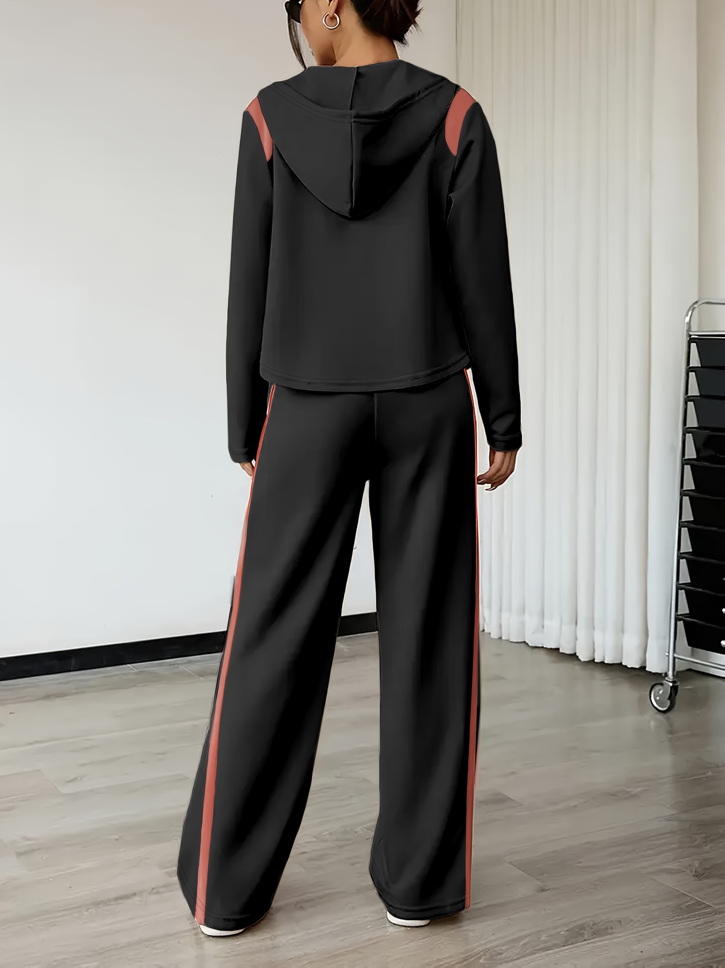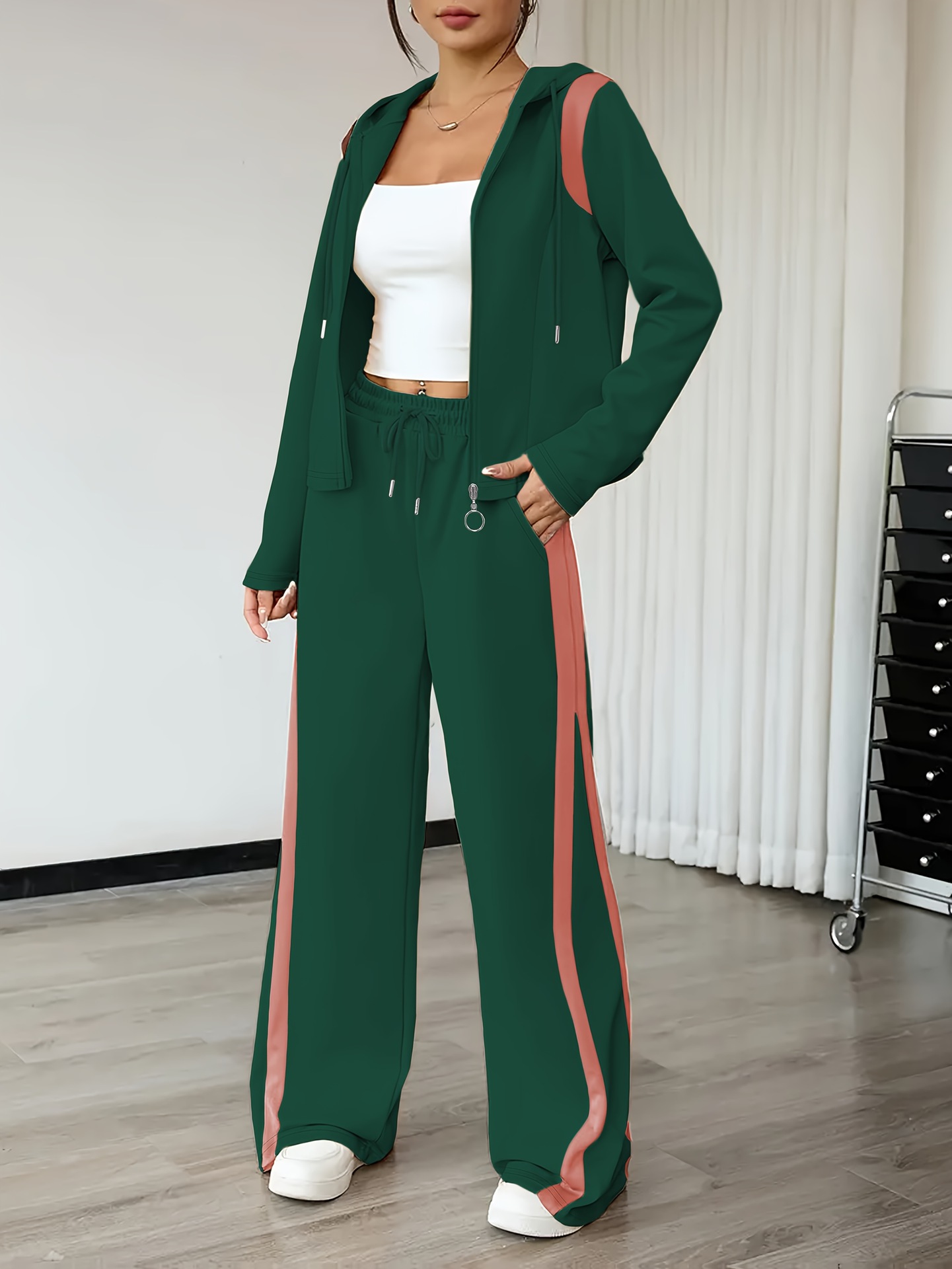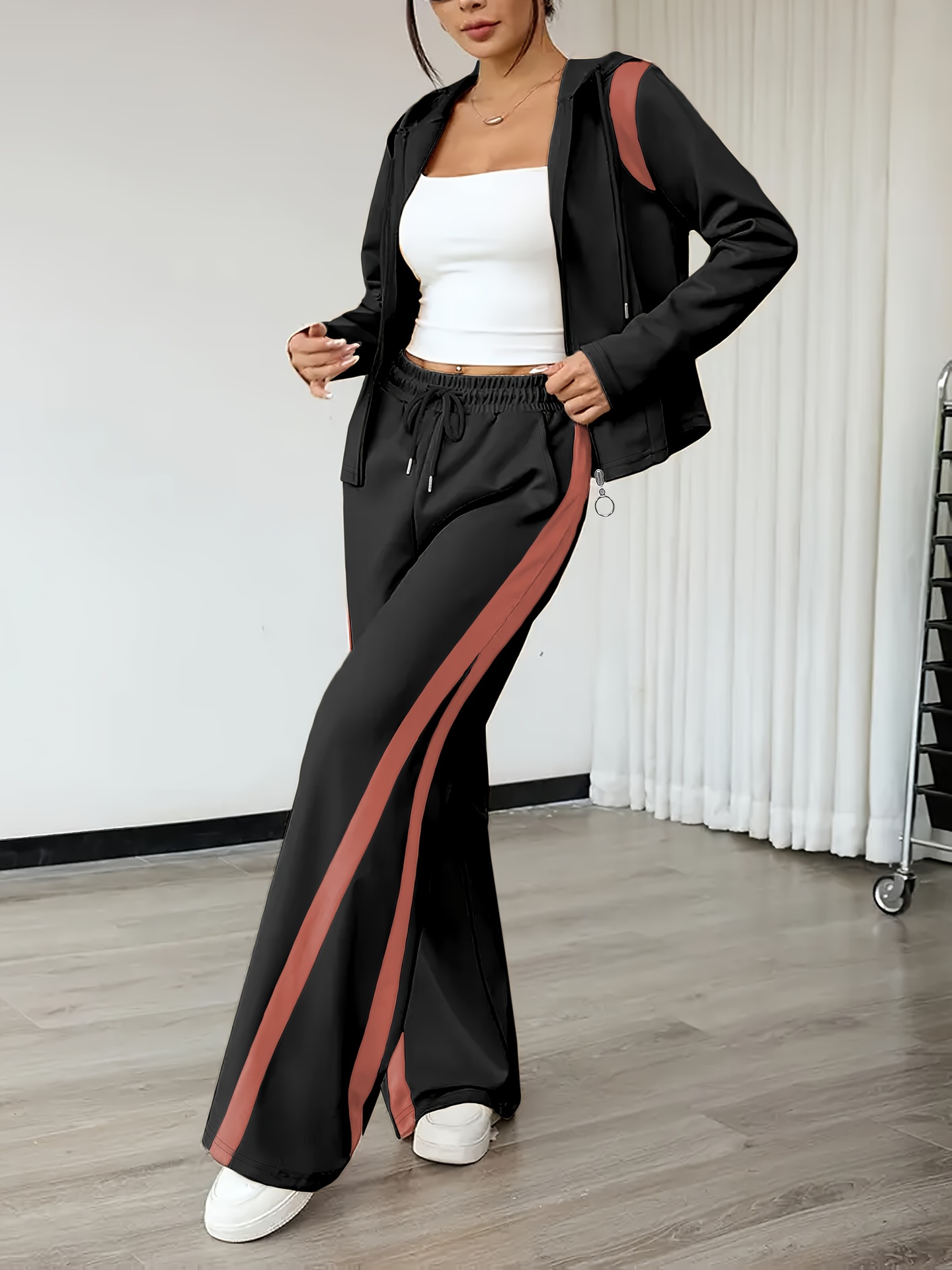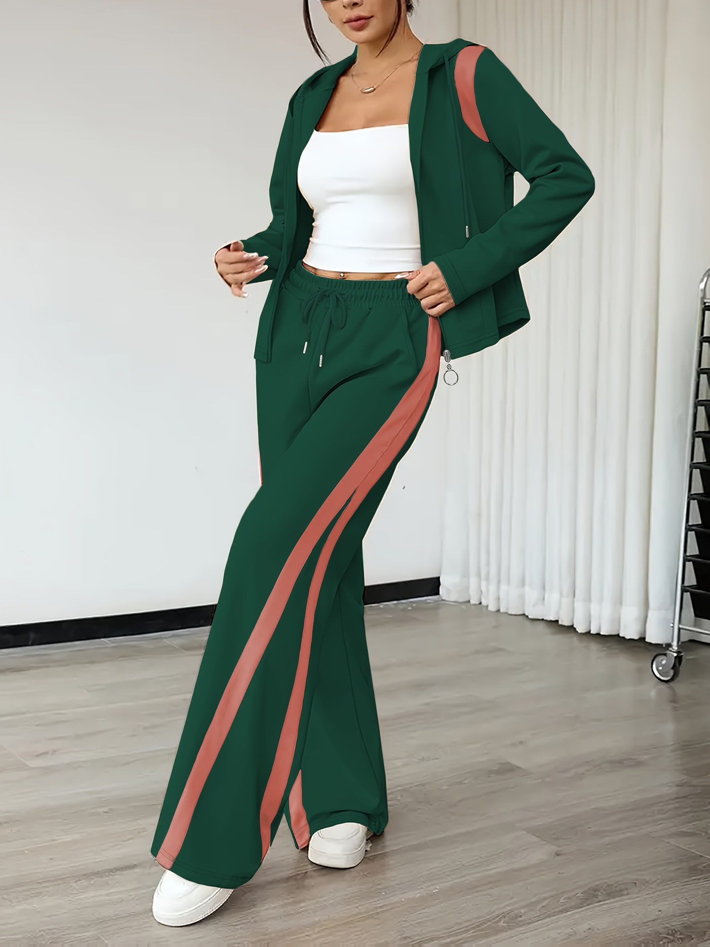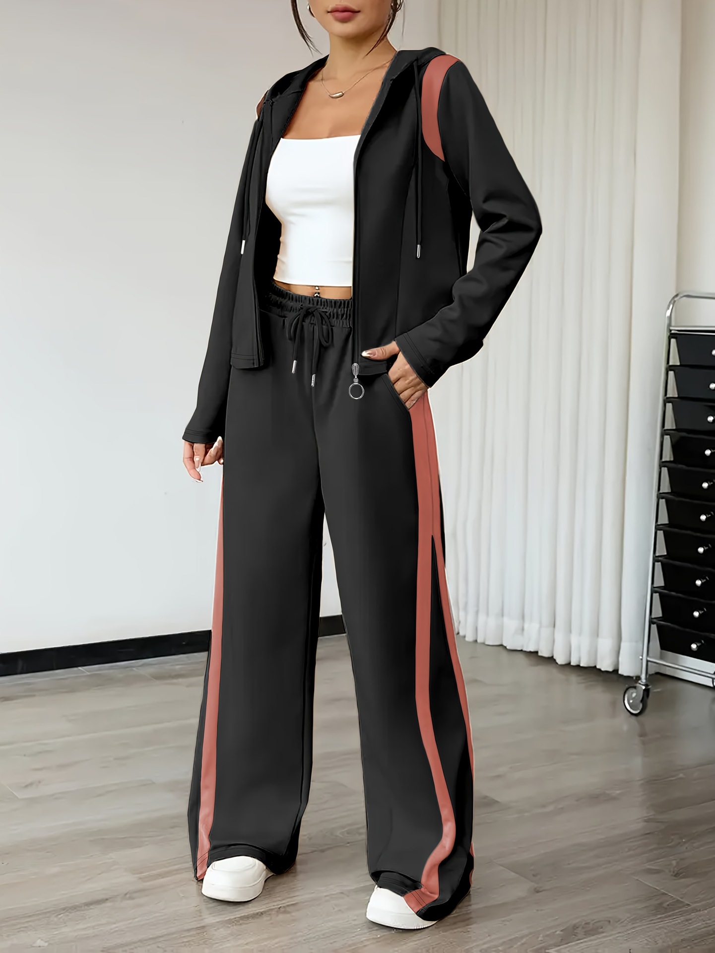 This Autumn Winter Hooded Top Jacket Paired With High Waist Wide Leg Pants Women Two-Piece Set Design Made Of High Quality polyester And Spandex Material. It Is Stretchy, Durable And Comfortable. It Is a Must-Have Outfit For All Seasons. retail Two Piece Pant Sets Can Solve Your cloth selection Troubles. Explore More 2 Piece Pants Set On BamBam retail Women Clothing Online Store.