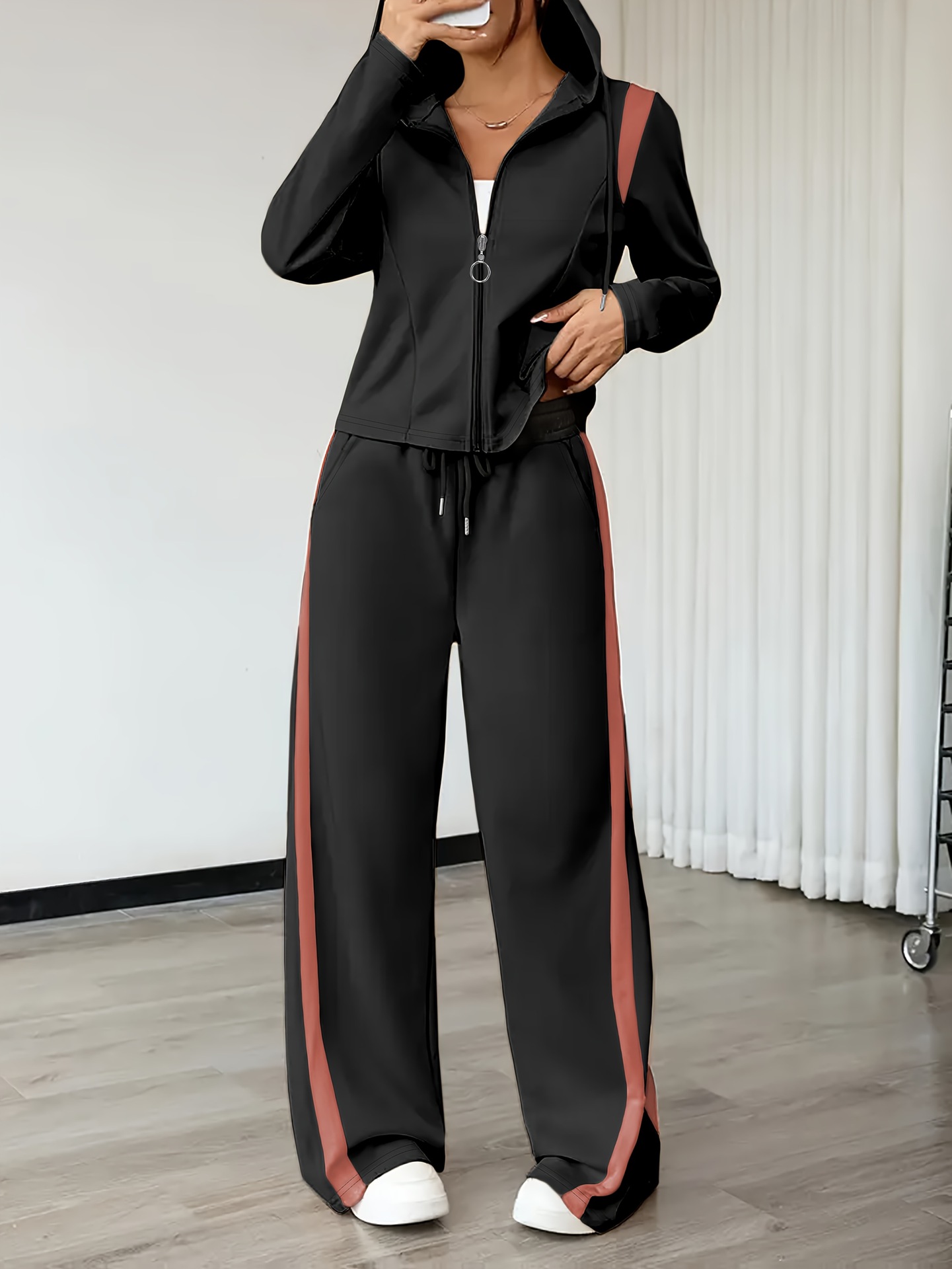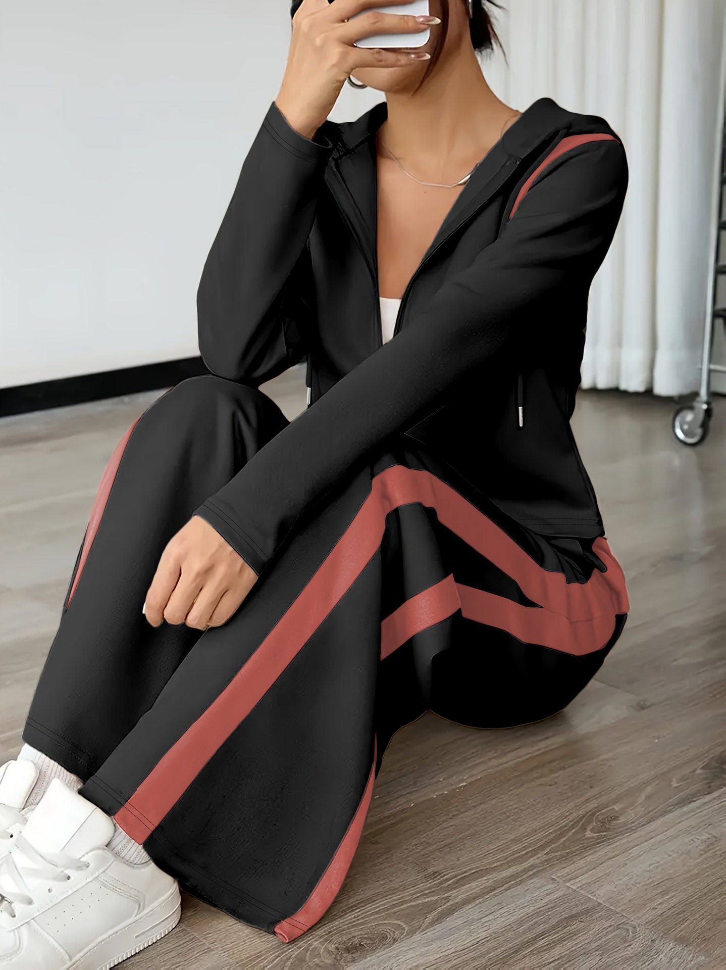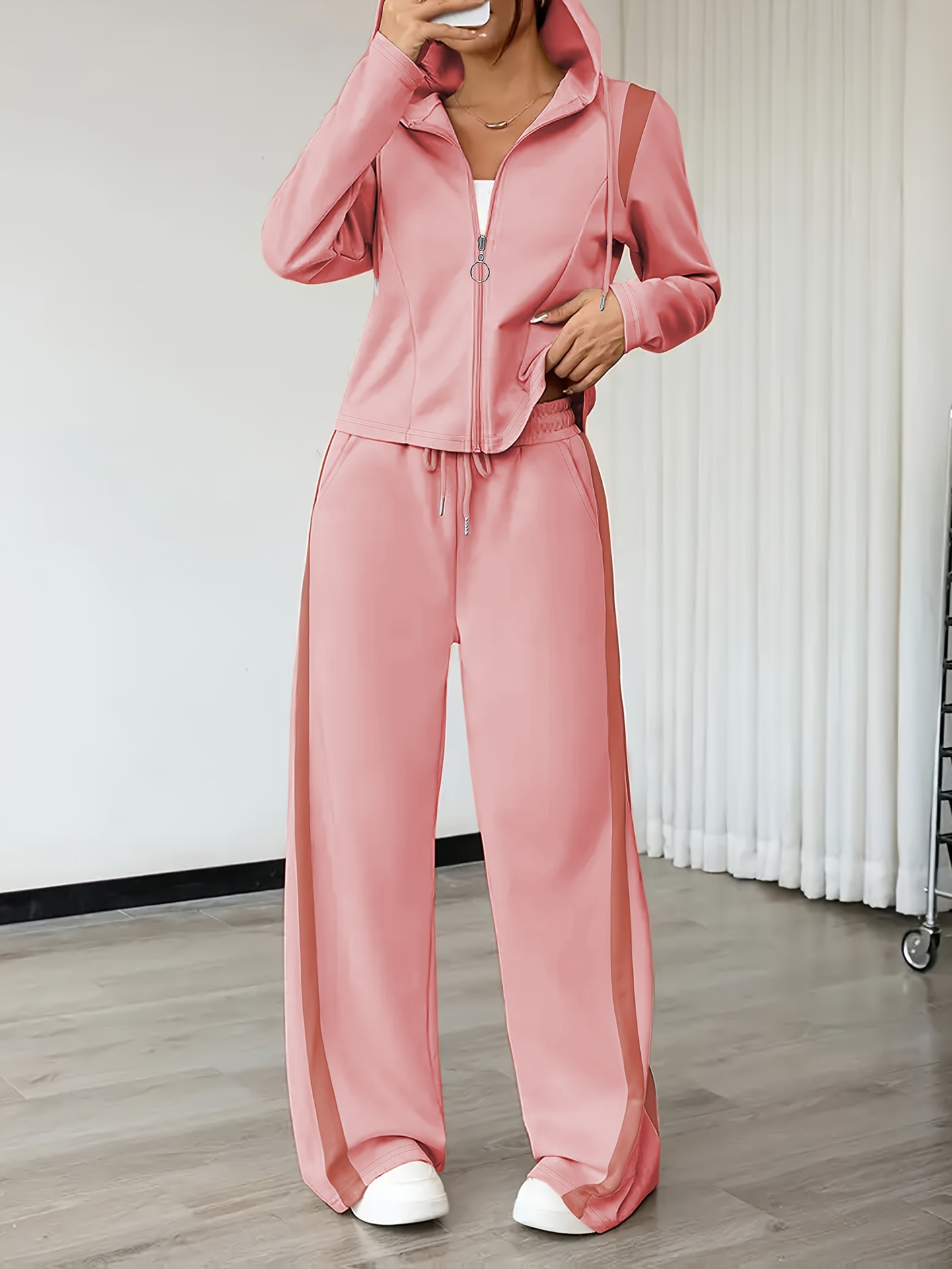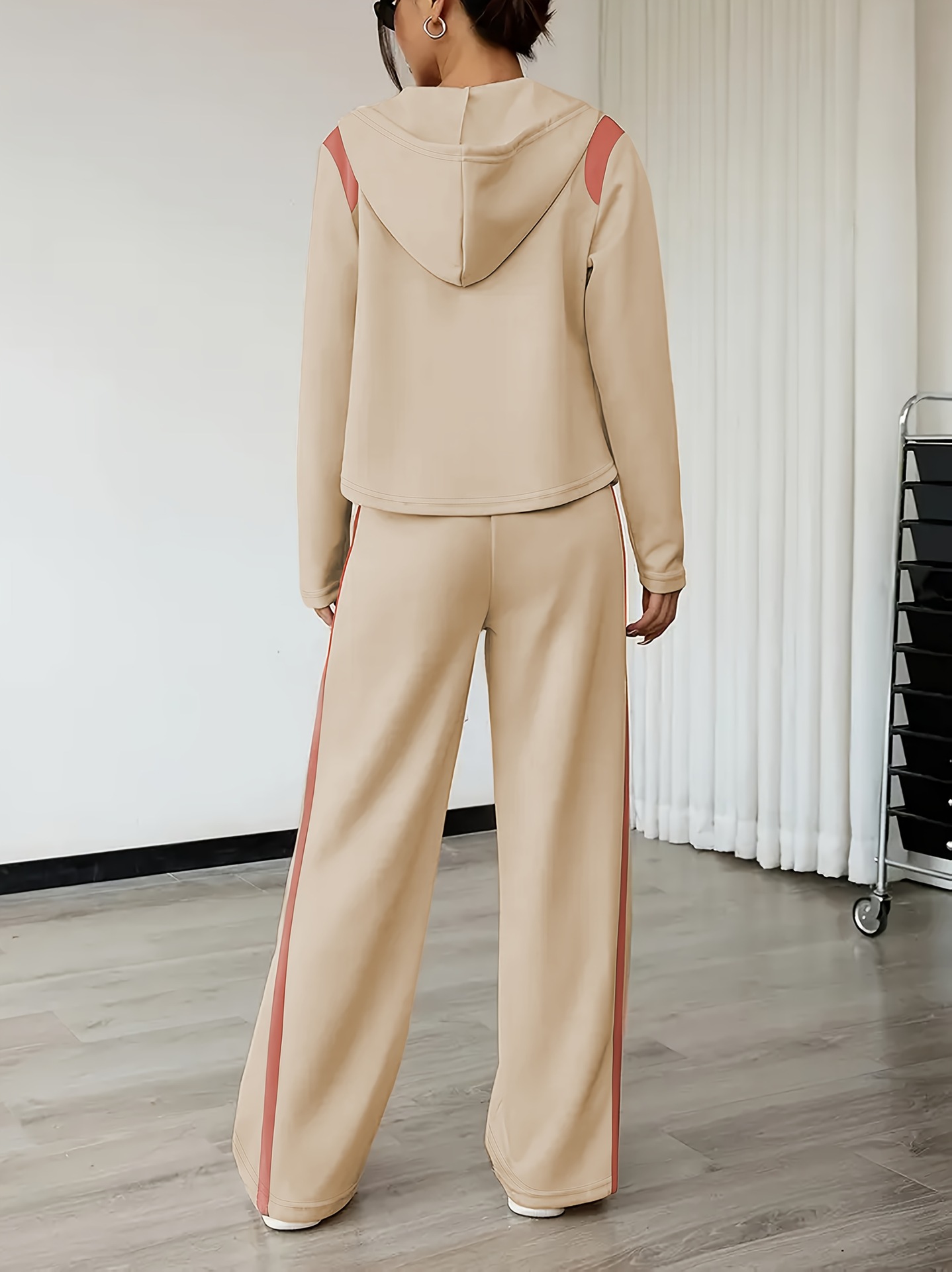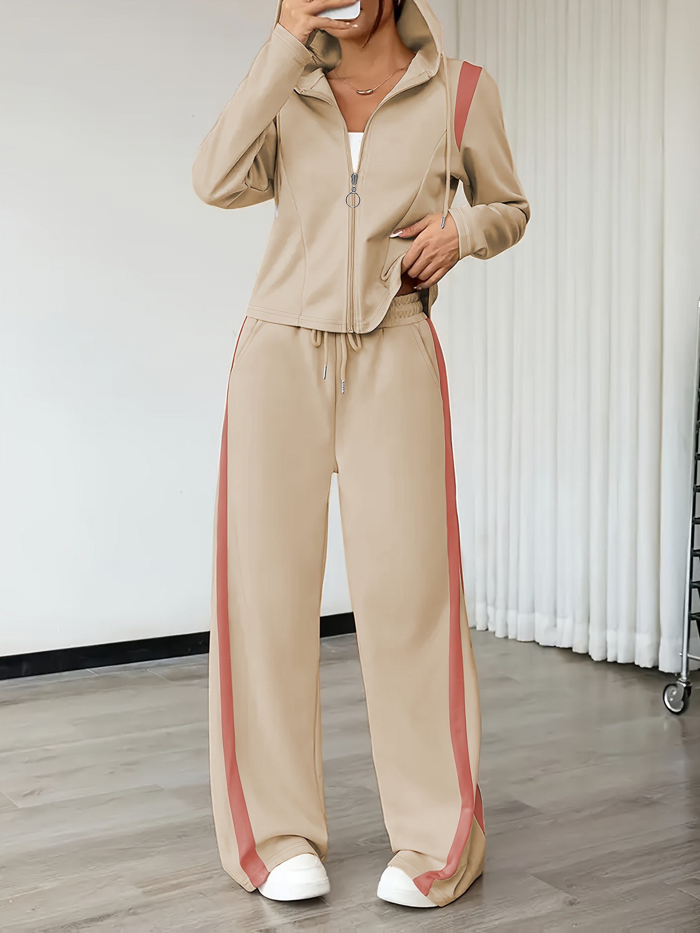 This Autumn Winter Hooded Top Jacket Paired With High Waist Wide Leg Pants Women Two-Piece Set Design Made Of High Quality polyester And Spandex Material. It Is Stretchy, Durable And Comfortable. It Is a Must-Have Outfit For All Seasons. retail Two Piece Pant Sets Can Solve Your cloth selection Troubles. Explore More 2 Piece Pants Set On BamBam retail Women Clothing Online Store.