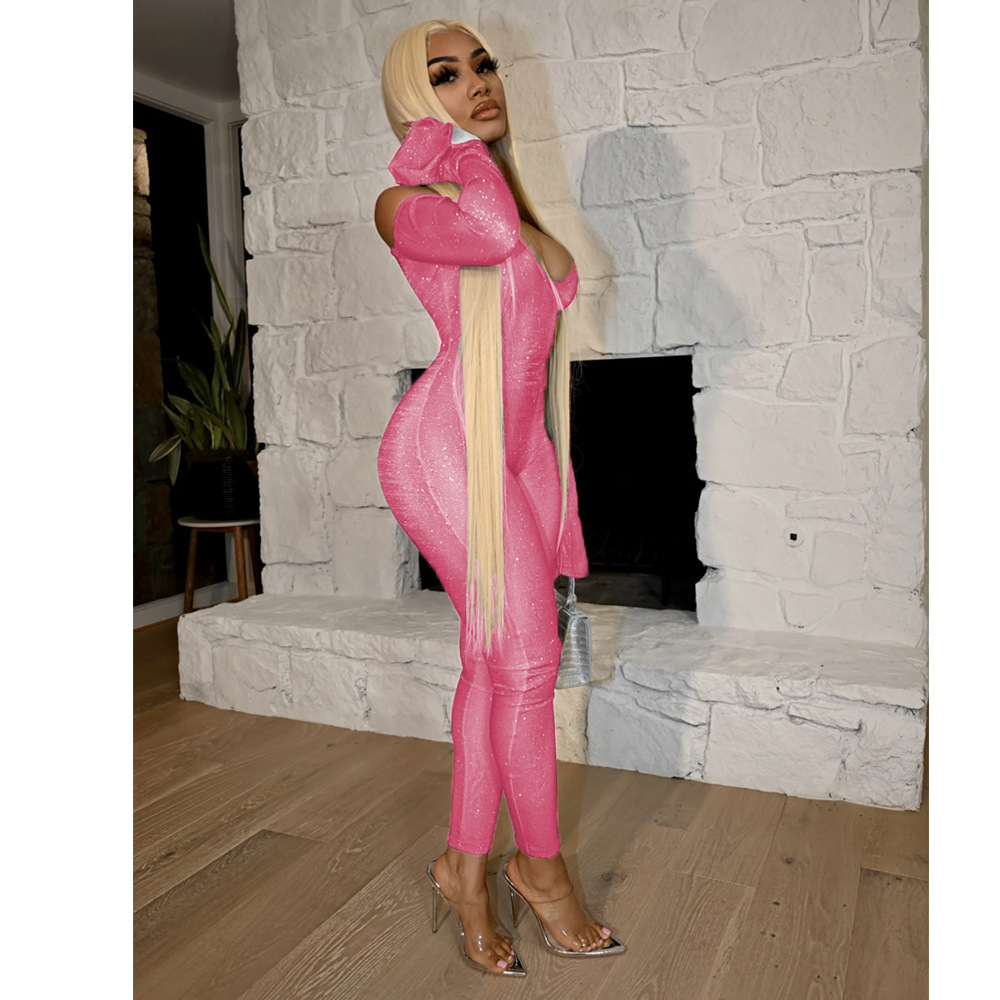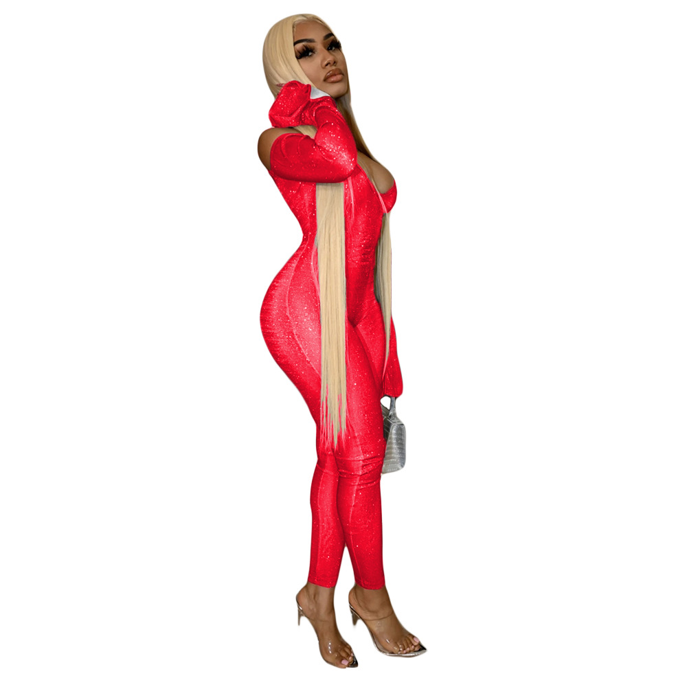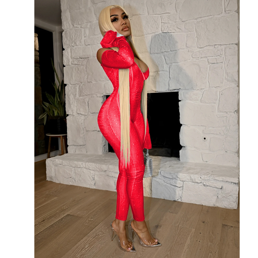 This Autumn Winter Women's Tight Fitting Bell Sleeve Jumpsuit Design Made Of High Quality Polyster And Spandex Material. It Is Stretchy, Durable And Comfortable. Affordable Sexy Jumpsuits For Women Has Long Been a Party Favorite. BamBam provides a Rich selection Of Sequin, Beaded, See Through Mesh, Leopard, Floral Lace, Leather, Velvet, Tight And Fitted retail Jumpsuit Without Moq Limit.