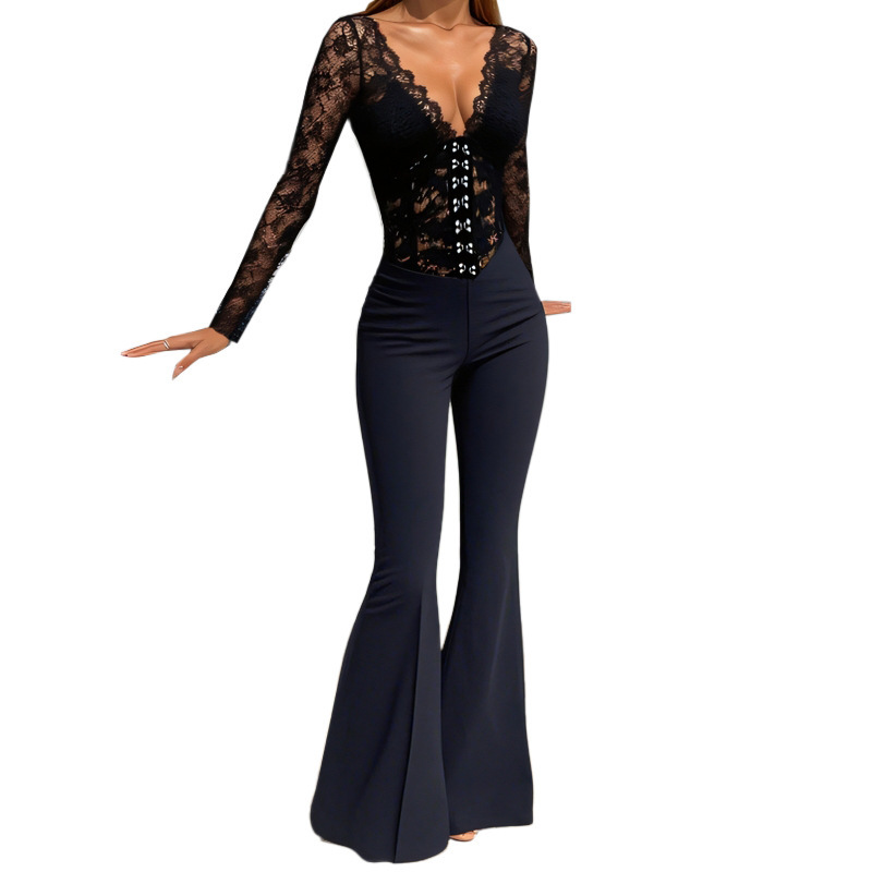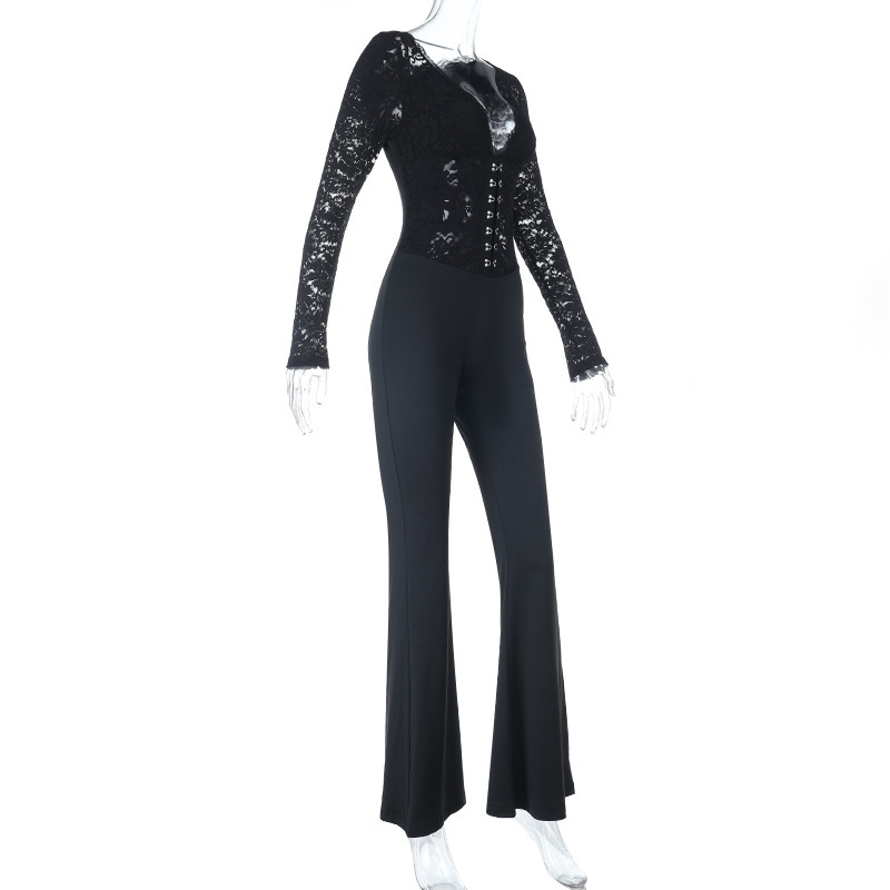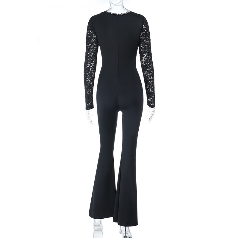 This Autumn Women's Chic Fitted Long Sleeve Lace Low Back Jumpsuit Design Made Of High Quality Polyster And Spandex Material. It Is Stretchy, Durable And Comfortable. Affordable Sexy Jumpsuits For Women Has Long Been a Party Favorite. BamBam provides a Rich selection Of Sequin, Beaded, See Through Mesh, Leopard, Floral Lace, Leather, Velvet, Tight And Fitted retail Jumpsuit Without Moq Limit.