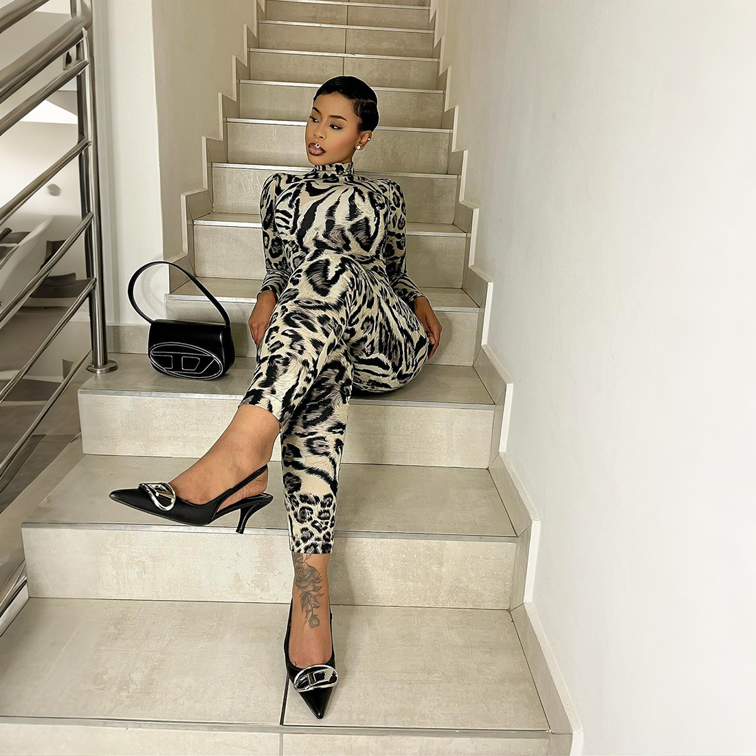 This Autumn Women's Fashion Leopard Print Semi-High Neck Sexy Tight Fitting Jumpsuit Design Made Of High Quality Polyster And Spandex Material. It Is Stretchy, Durable And Comfortable. Affordable Sexy Jumpsuits For Women Has Long Been a Party Favorite. BamBam provides a Rich selection Of Sequin, Beaded, See Through Mesh, Leopard, Floral Lace, Leather, Velvet, Tight And Fitted retail Jumpsuit Without Moq Limit.