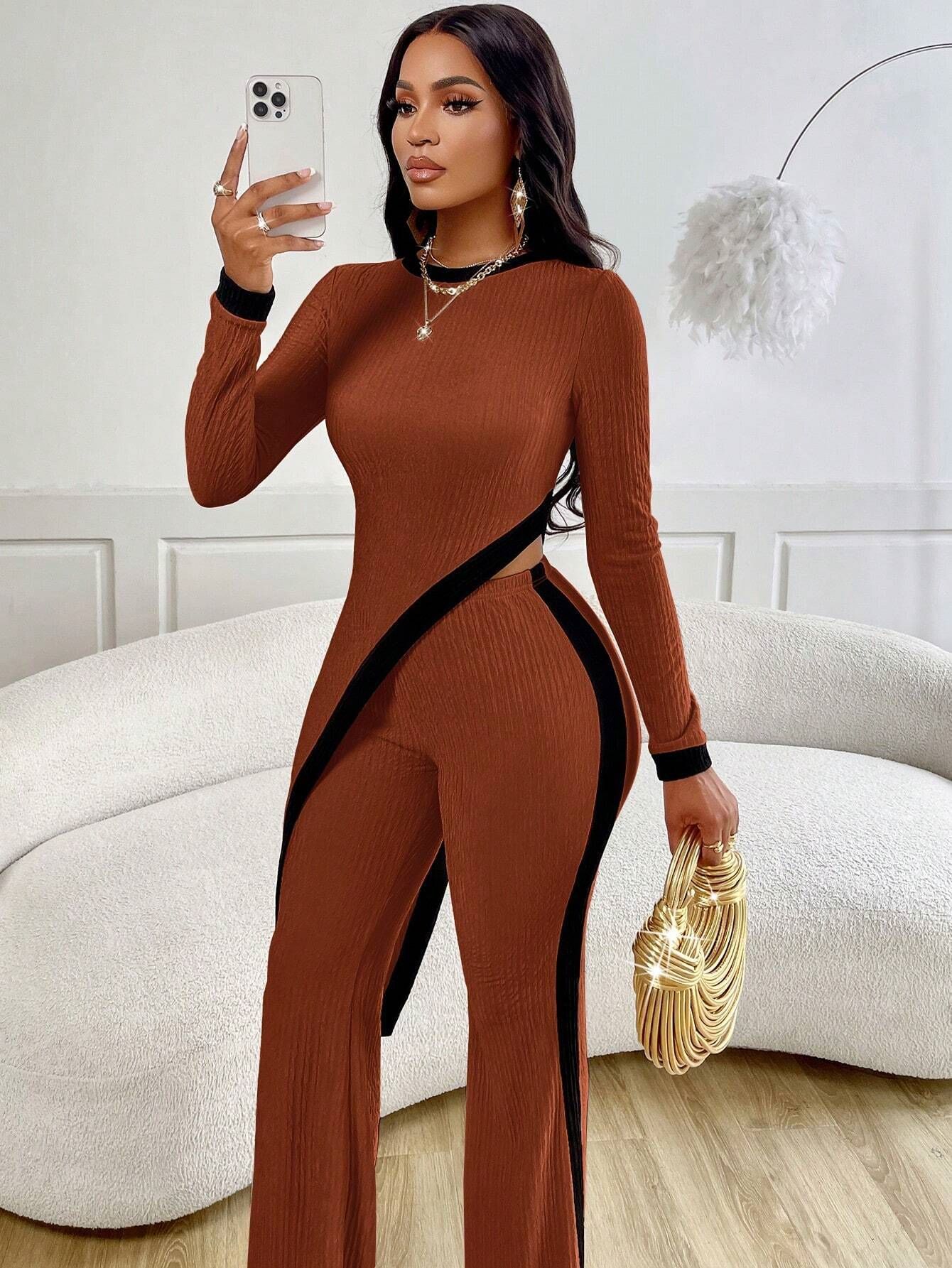 This Autumn Women's Fashion Long Sleeve Contrast Color Split t-Shirt Patchwork Trousers For Women Design Made Of High Quality polyester And Spandex Material. It Is Stretchy, Durable And Comfortable. It Is a Must-Have Outfit For All Seasons. retail Two Piece Pant Sets Can Solve Your cloth selection Troubles. Explore More 2 Piece Pants Set On BamBam retail Women Clothing Online Store.