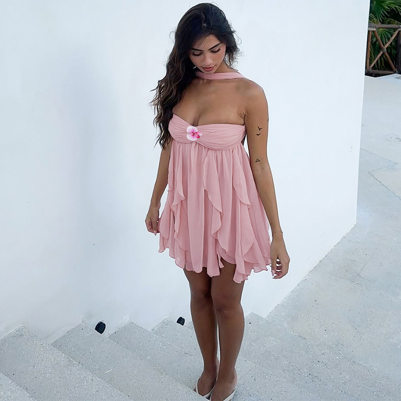 This Autumn Women's Sexy Halter Neck Low Back Mesh Patchwork Floral Embellished Top Design Made Of High Quality polyester And Spandex Material. It Is Stretchy, Durable And Comfortable. Casual Dresses With Long Sleeves Can Not Only Be Worn As Outerwear In Spring And Autumn, But Also Matching a Jacket In Winter, It Is a Must Have Item For Every Season. Grab Really Great Buy Casual Dresses For Women And Grow Your Business. No Moq In BamBam.