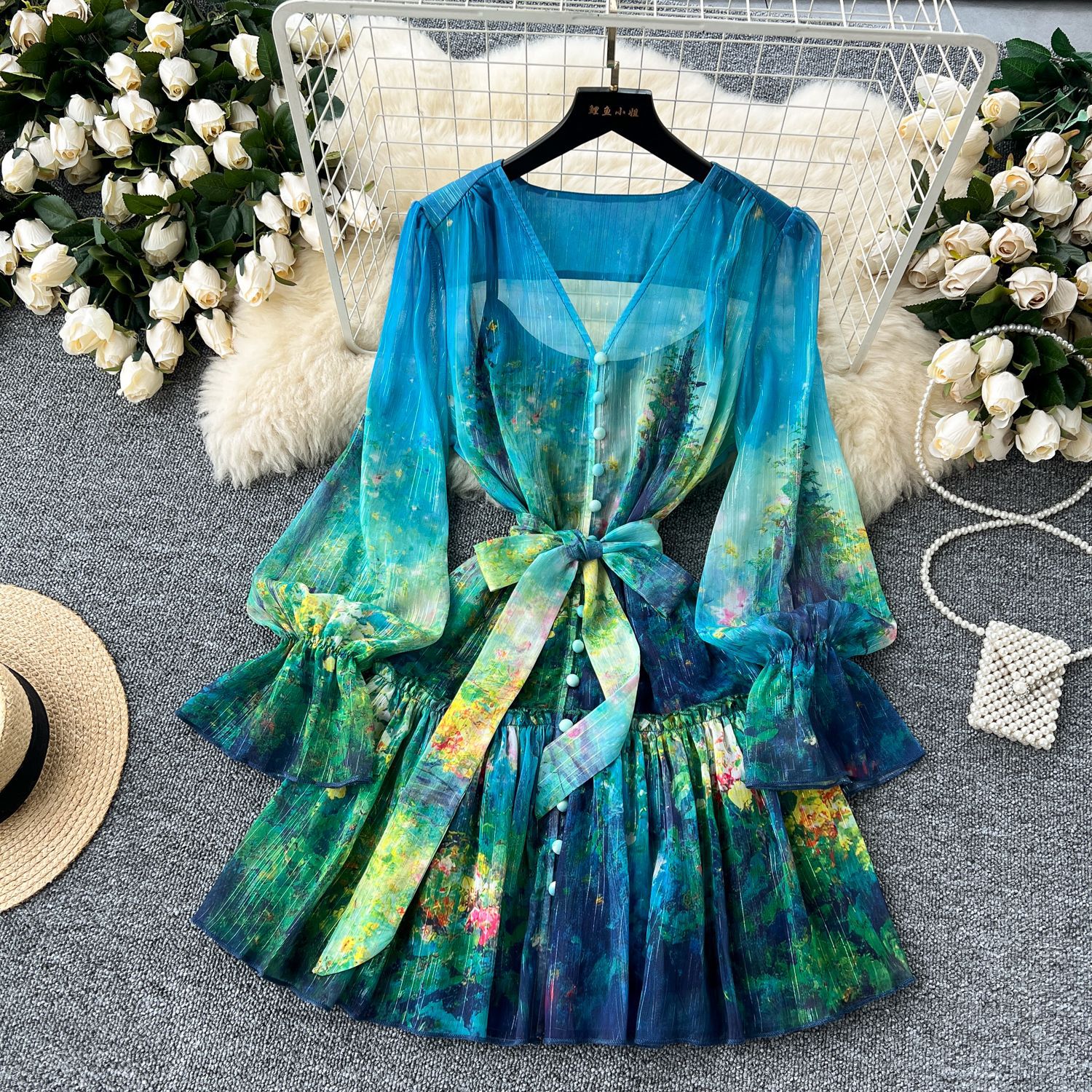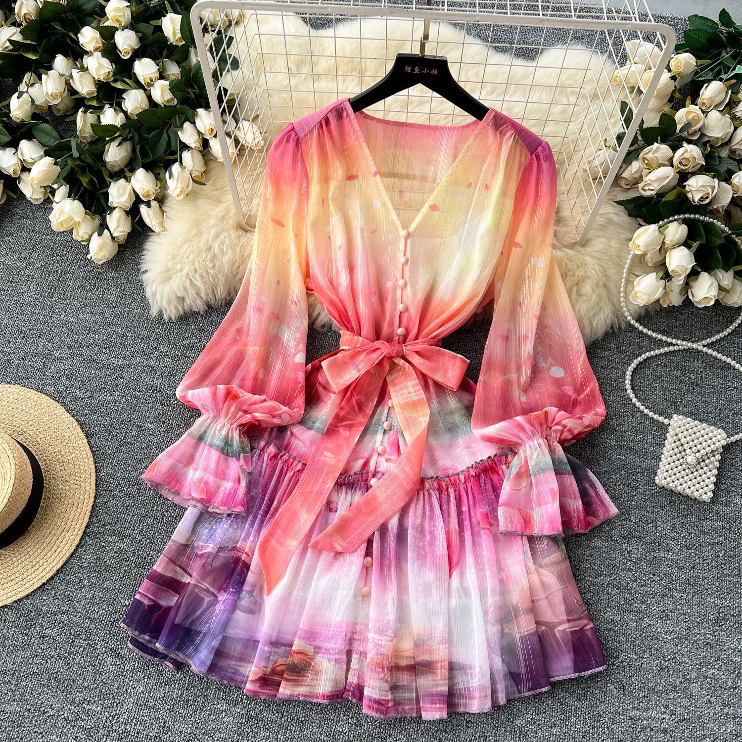 This Bell Sleeve Dress Women's Bell Sleeve Floral Slim Waistbelt v-Neck Ruffle Mini Dress Design Made Of High Quality polyester And Spandex Material. It Is Stretchy, Durable And Comfortable. Casual Dresses With Long Sleeves Can Not Only Be Worn As Outerwear In Spring And Autumn, But Also Matching a Jacket In Winter, It Is a Must Have Item For Every Season. Grab Really Great Buy Casual Dresses For Women And Grow Your Business. No Moq In BamBam.