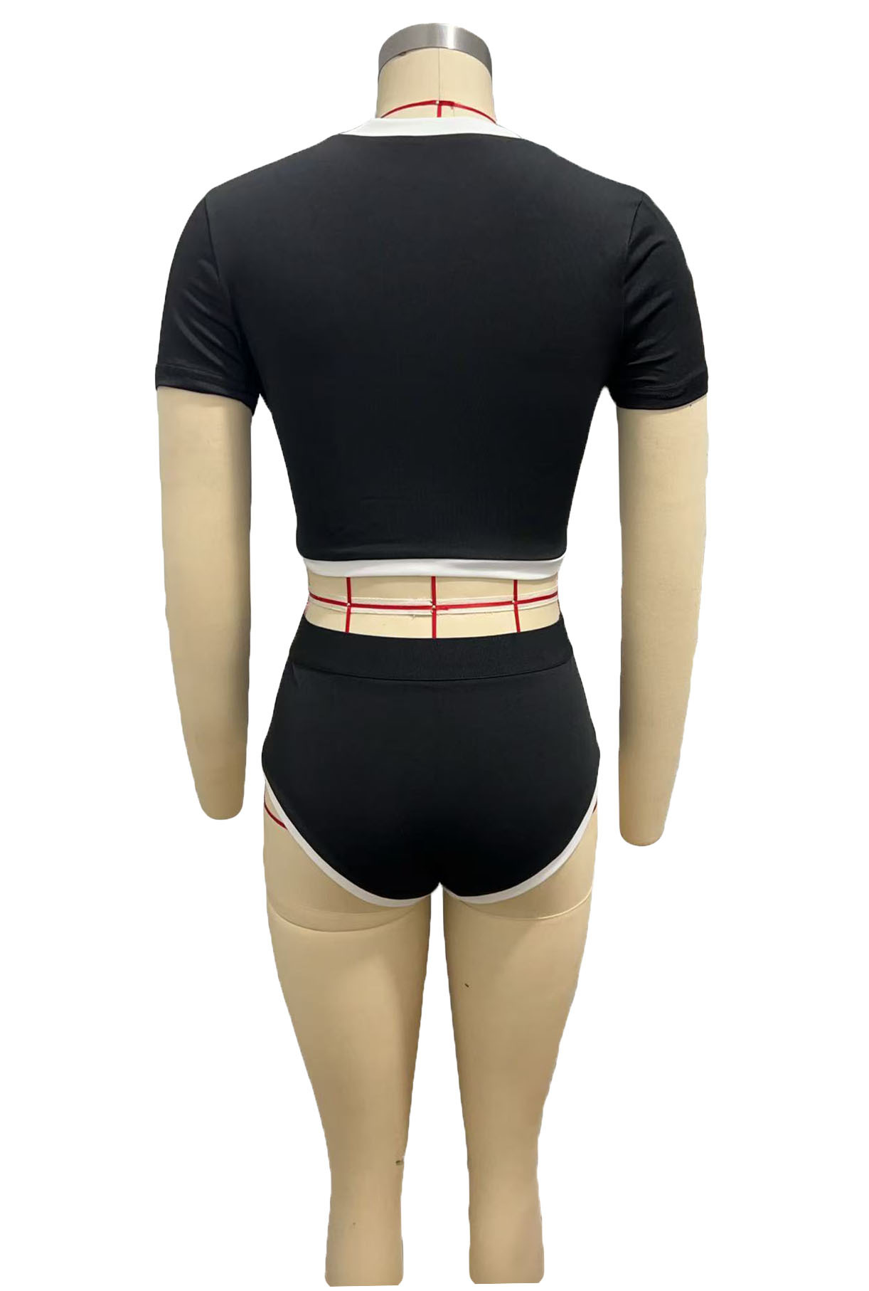 This Black And White Patchwork Round Neck Moon Print Tight Fitting Two Piece Shorts Set Design Made Of High Quality polyester And Spandex Material. It Is Stretchy, Durable And Comfortable. It Come With The Top And Shorts. retail Short Sets Saves Some People From The Trouble Of Matching. And For Matchmakers It Is More Flexible Than One-Piece Outfit. Two Piece Short Set Can Be Worn Together Or Individually, Ladies Can Match Them According To Different Occasions. Grab Different Two Piece Short Sets For This Spring And Summer.
