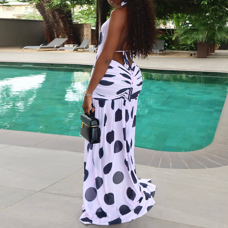 This Black White Polka Dot Women's Slit Print Irregular High Neck Tie Low Back Dress Design Made Of High Quality polyester And Spandex Material. It Is Stretchy, Durable And Comfortable. Casual Dresses With Long Sleeves Can Not Only Be Worn As Outerwear In Spring And Autumn, But Also Matching a Jacket In Winter, It Is a Must Have Item For Every Season. Grab Really Great Buy Casual Dresses For Women And Grow Your Business. No Moq In BamBam.