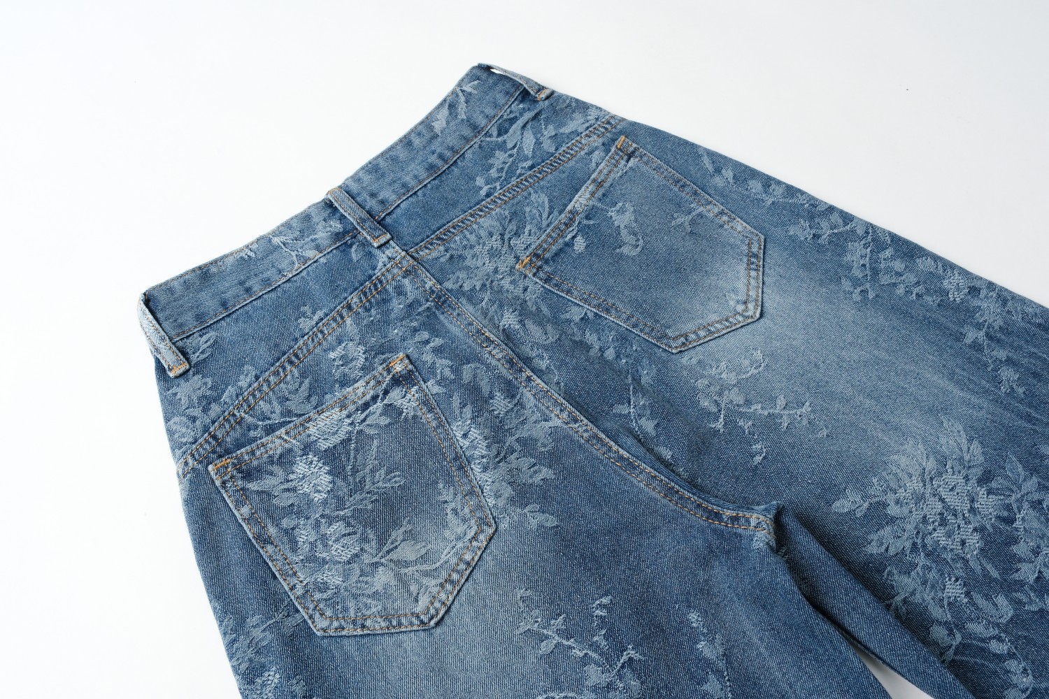This Blue Jacquard Denim Pants Women Loose Wide Leg Straight Leg Trousers Design Made Of Durable And Stretchy Jeans Fabric. It Is a Must-Have Item For everyday use. Trendy retail Jeans Is a Indispensable Item For Everyday Fashion. Women’s Jeans With High Waist Is a Must Have trouser/pant that helps bring the grace of shape of your legs out even more and fits perfectly snugging your thighs and body gracefully. Grab a Must Have High Waist Jeans retail For Your Closet, Just Choose Different Matching Tops To stay in control of Every Occasion Easily.