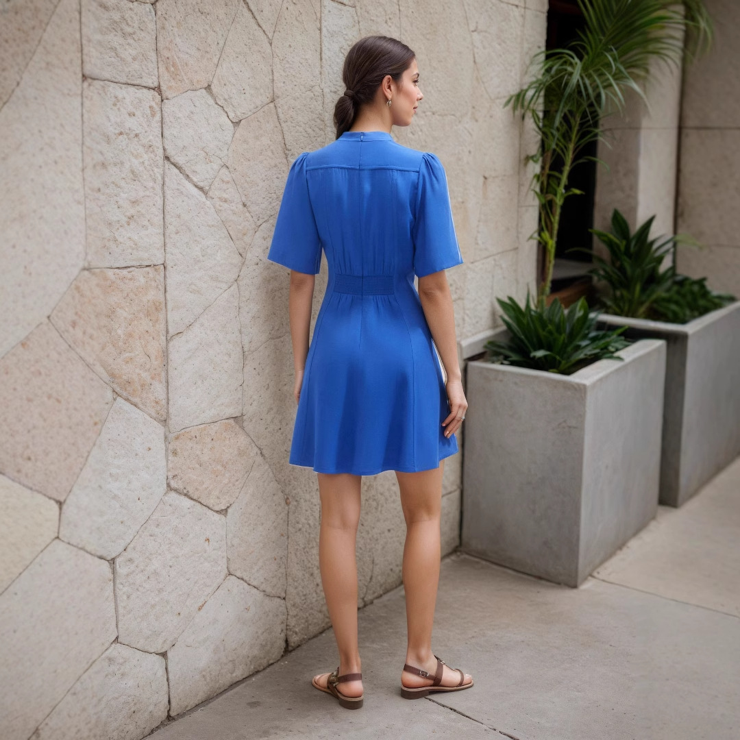 This Blue v-Neck a-Line Mini Dress Design Made Of High Quality polyester And Spandex Material. It Is Stretchy, Durable And Comfortable. Casual Dresses With Long Sleeves Can Not Only Be Worn As Outerwear In Spring And Autumn, But Also Matching a Jacket In Winter, It Is a Must Have Item For Every Season. Grab Really Great Buy Casual Dresses For Women And Grow Your Business. No Moq In BamBam.