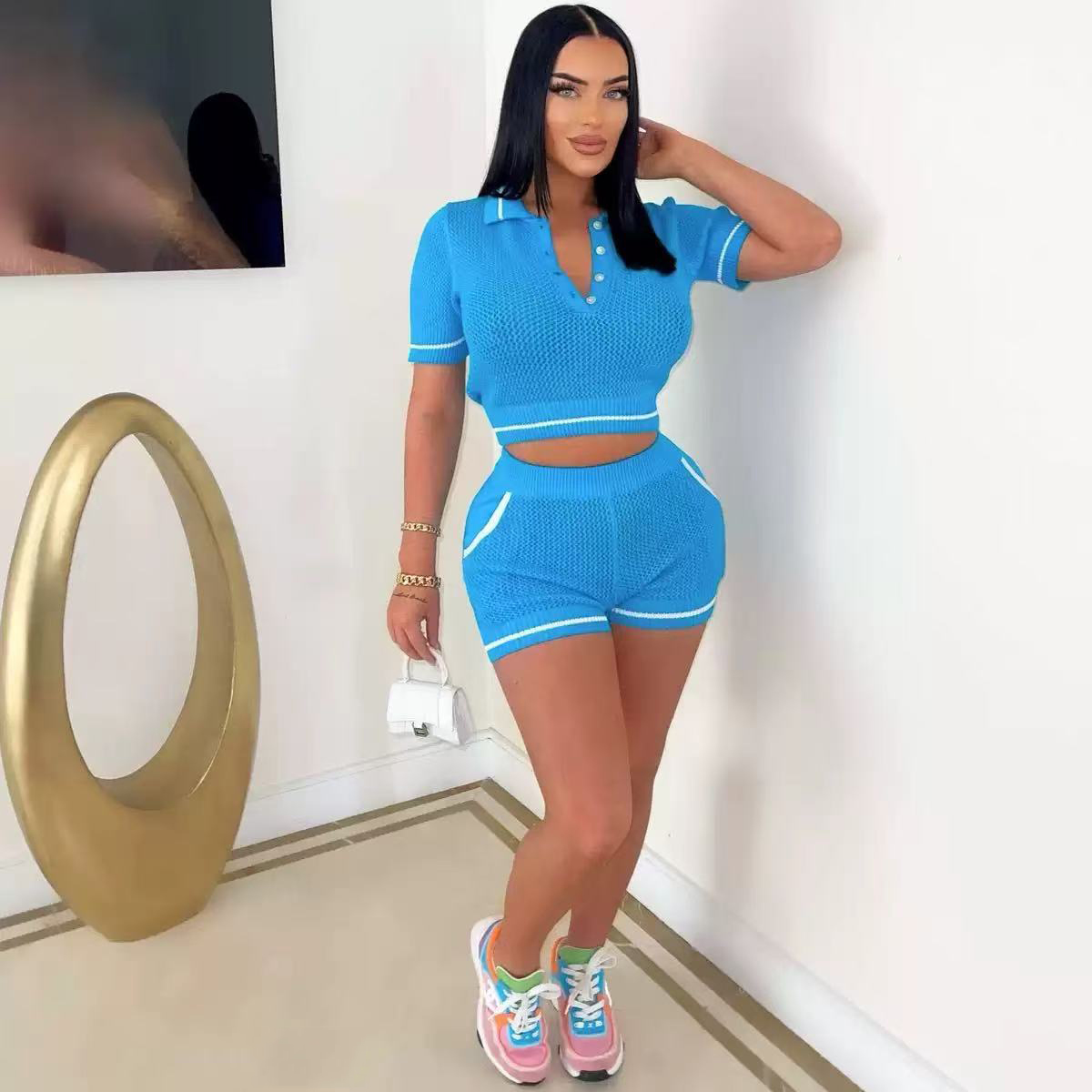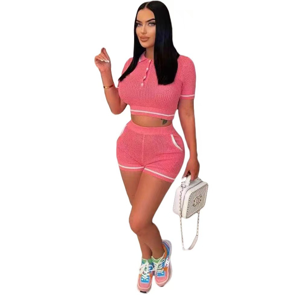 This Button Short-Sleeve Knit Shirt & Shorts Set Design Made Of High Quality polyester And Spandex Material. It Is Stretchy, Durable And Comfortable. It Come With The Top And Shorts. retail Short Sets Saves Some People From The Trouble Of Matching. And For Matchmakers It Is More Flexible Than One-Piece Outfit. Two Piece Short Set Can Be Worn Together Or Individually, Ladies Can Match Them According To Different Occasions. Grab Different Two Piece Short Sets For This Spring And Summer.