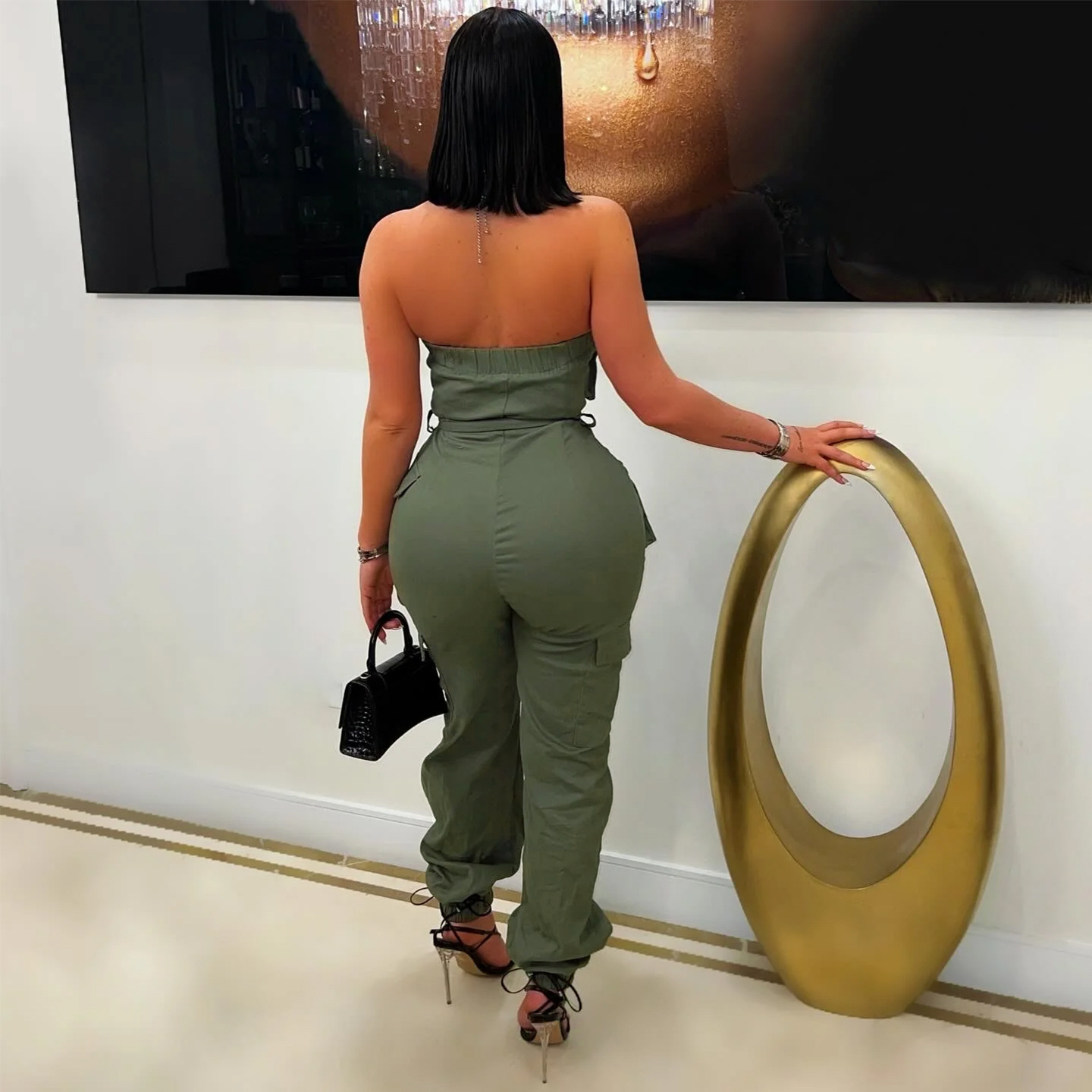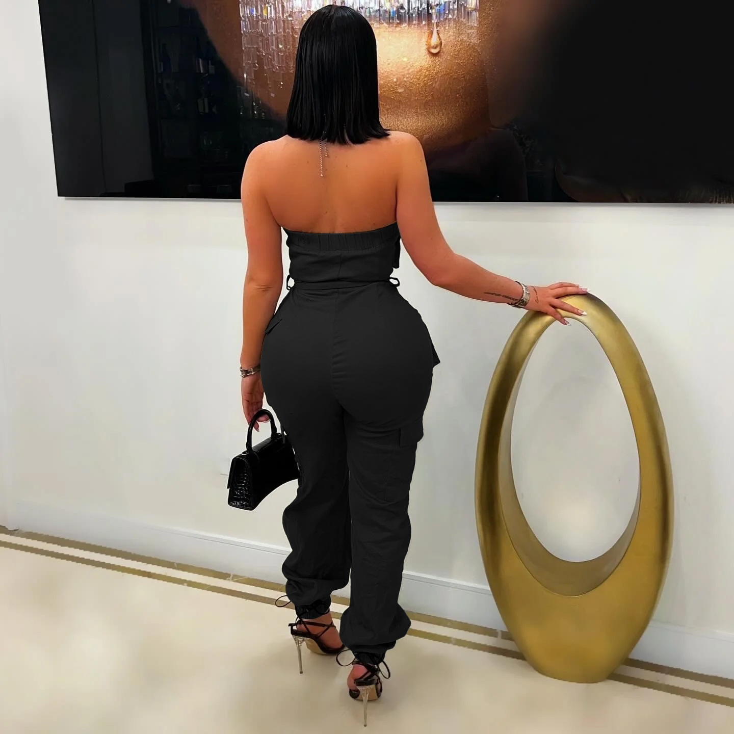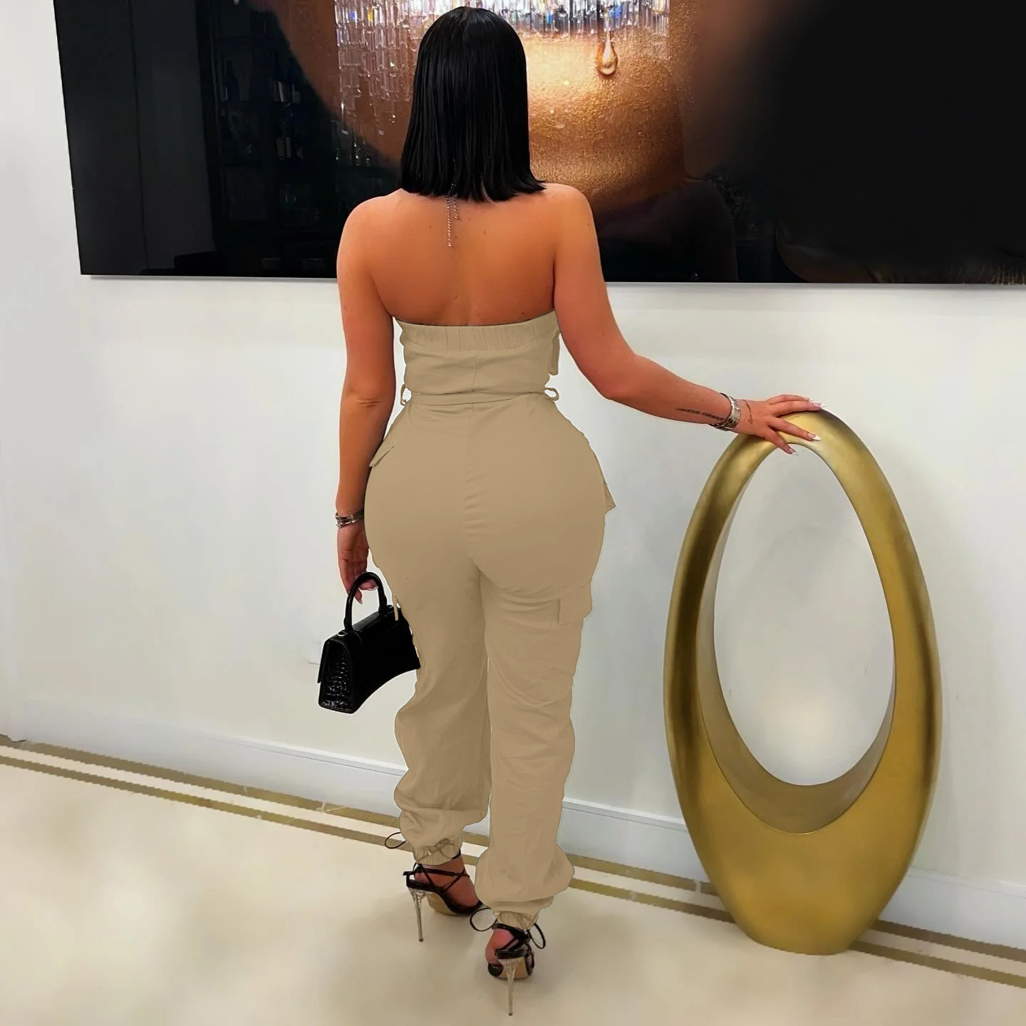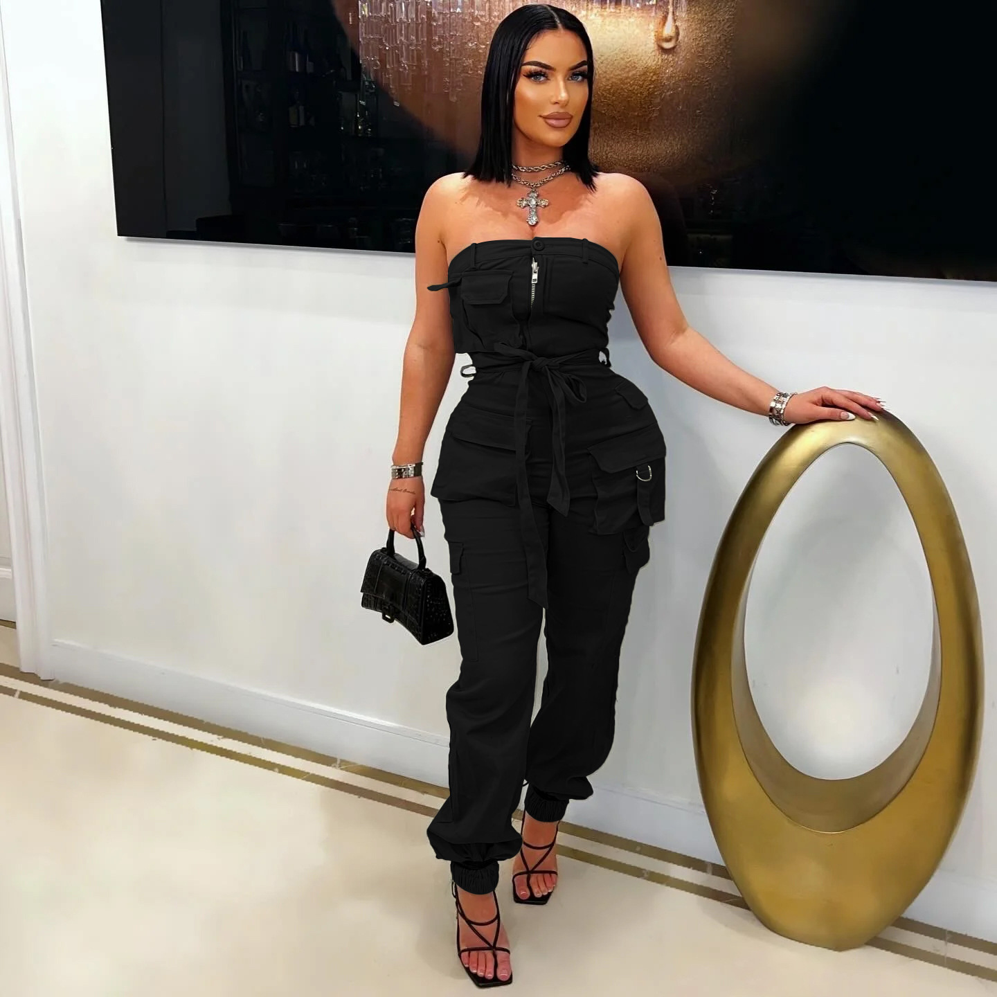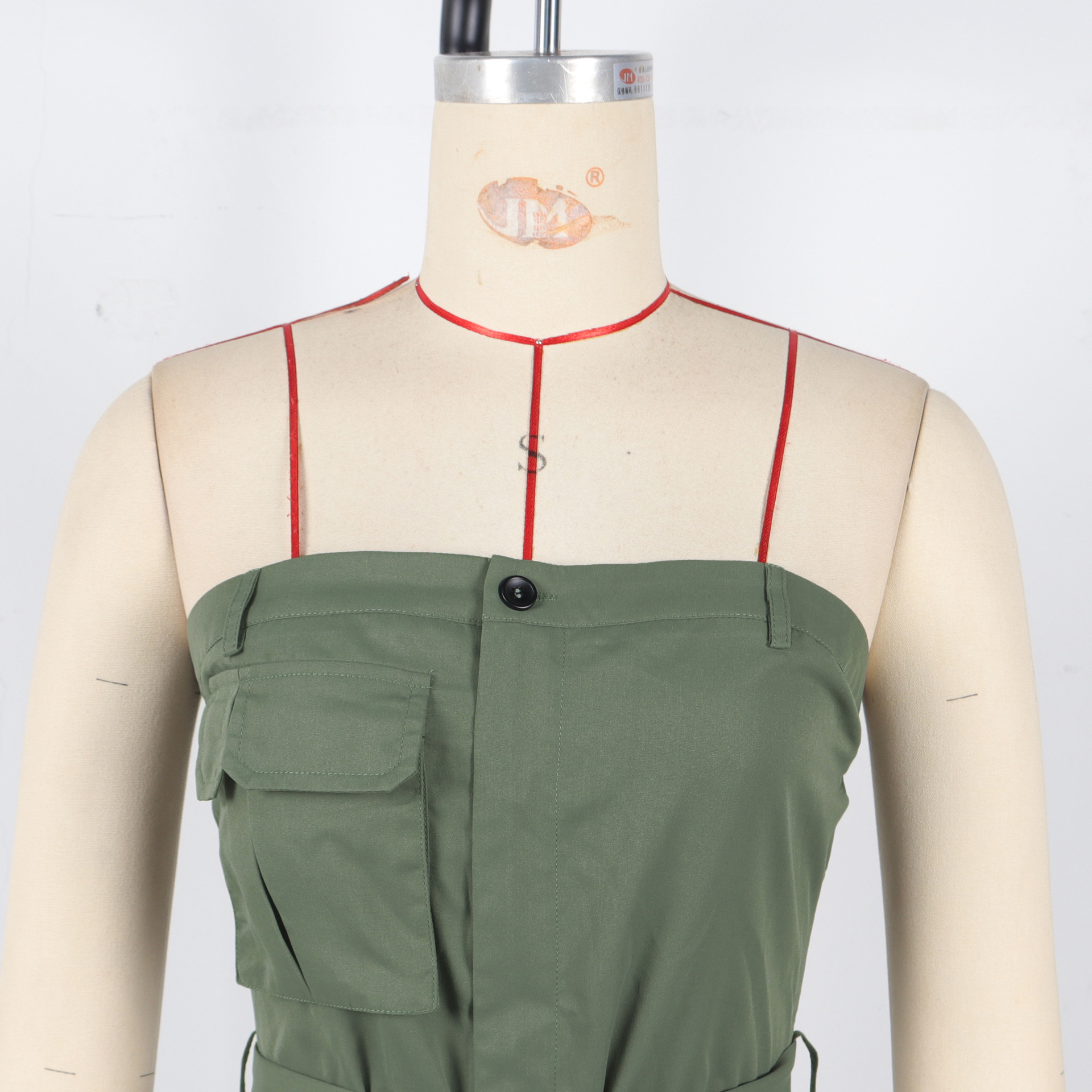 This Casual Career Solid Color Multi-Pocket Strapless Cargo Jumpsuit Design Made Of High Quality Polyster And Spandex Material. It Is Stretchy, Durable And Comfortable. Affordable Sexy Jumpsuits For Women Has Long Been a Party Favorite. BamBam provides a Rich selection Of Sequin, Beaded, See Through Mesh, Leopard, Floral Lace, Leather, Velvet, Tight And Fitted retail Jumpsuit Without Moq Limit.