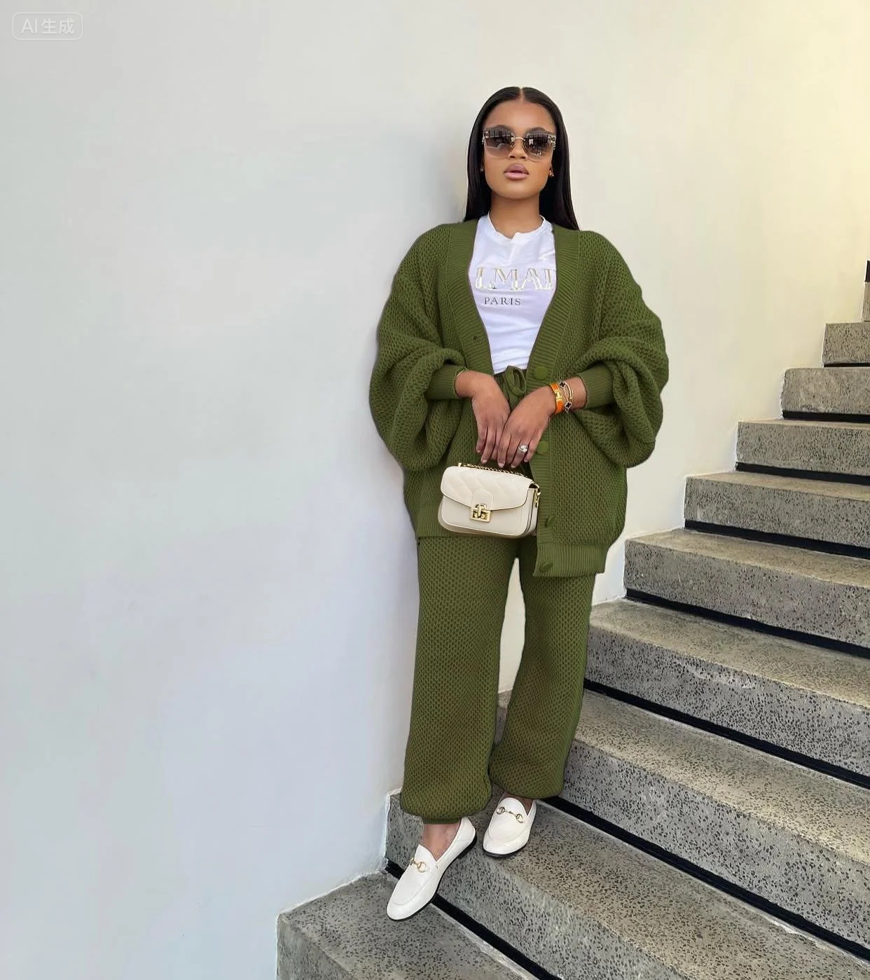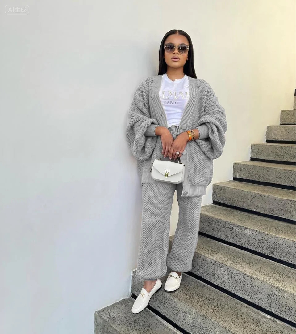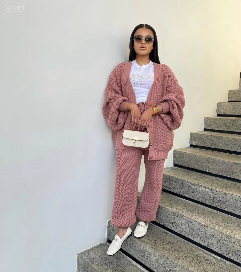 This Casual Loose v-Neck Cardigan Pants Two-Piece Set Design Made Of High Quality polyester And Spandex Material. It Is Stretchy, Durable And Comfortable. It Is a Must-Have Outfit For All Seasons. retail Two Piece Pant Sets Can Solve Your cloth selection Troubles. Explore More 2 Piece Pants Set On BamBam retail Women Clothing Online Store.