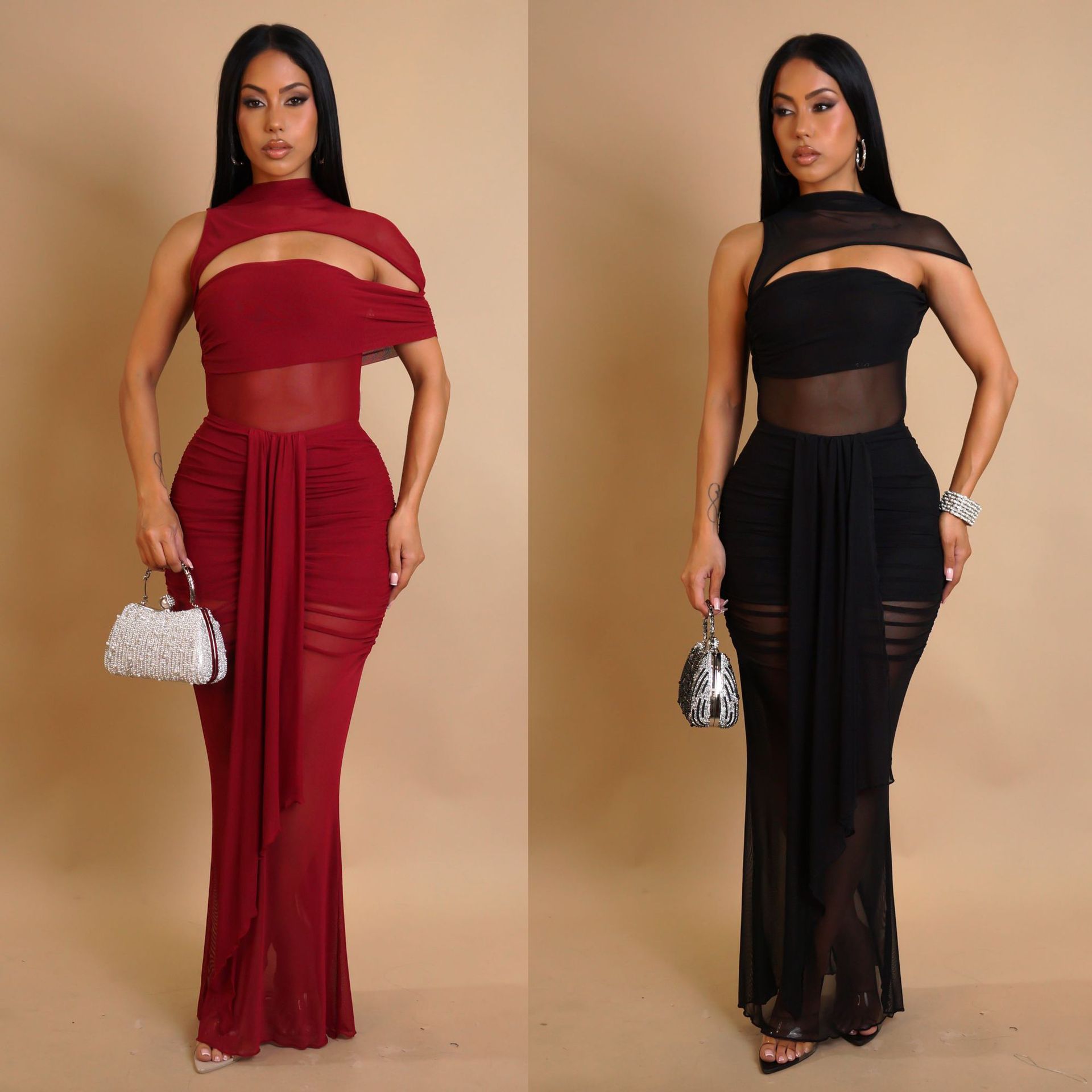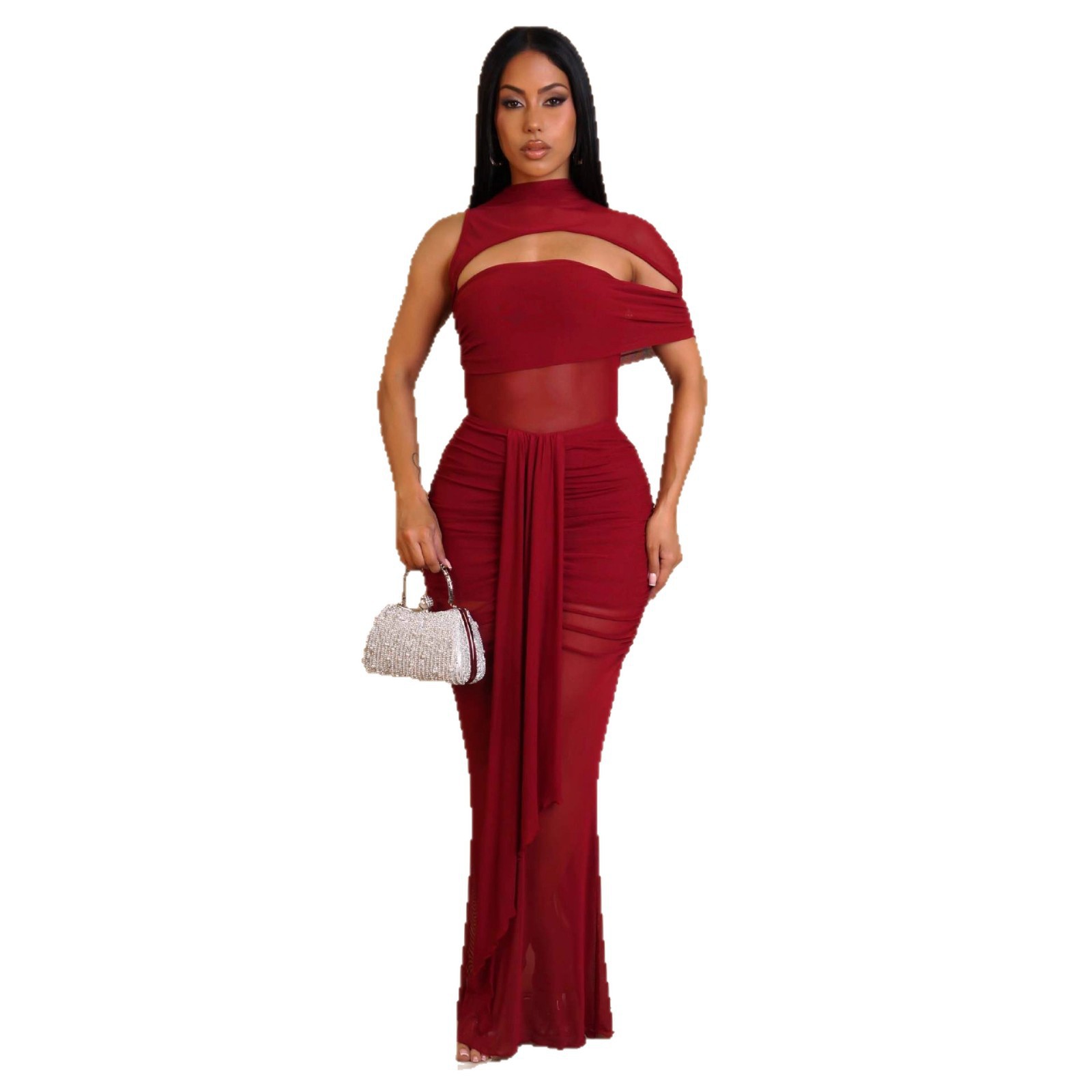 This Casual Off-Shoulder Sexy Hollow See-Through Mesh Ruffle Bodycon Dress Set Design Made Of Good Quality Polyester And Spandex Material, Which Is Stretchy, Durable And Comfortable. The Long Evening Dresses And Gowns Is Always The main Choice For All Kinds Of Parties, Cocktail, Prom, Events, And Dating Occasions. Evening Gowns At BamBam Comes With Huge Selections - Sequins, Beaded, Satin, Velvet, Lace.... When You Need retail Evening Dresses, BamBam retail Women Garment Online Shop Is Your One-Stop Online Shopping Choice.