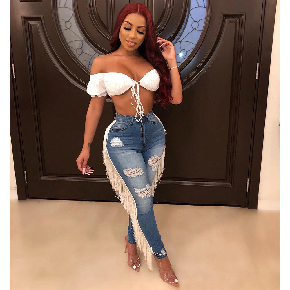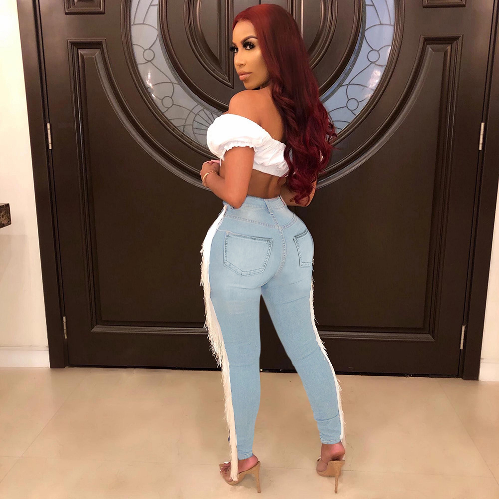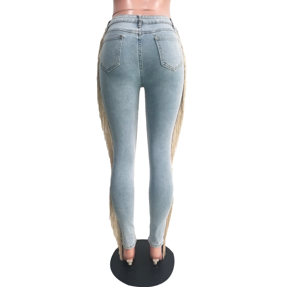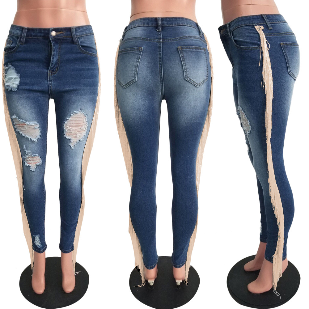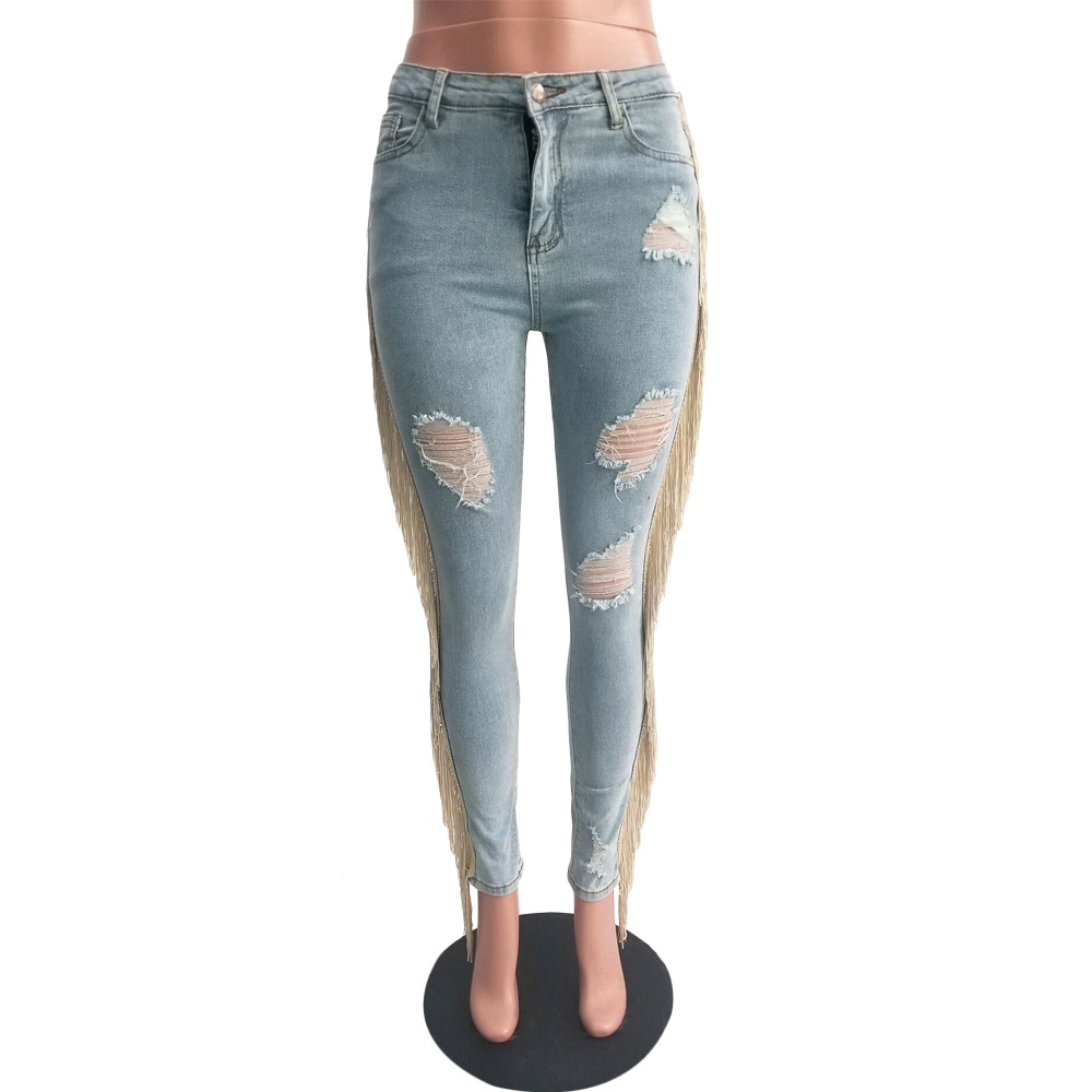 This Casual Ripped Fringe Denim Pants Trendy High Street Jeans Design Made Of Durable And Stretchy Jeans Fabric. It Is a Must-Have Item For everyday use. Trendy retail Jeans Is a Indispensable Item For Everyday Fashion. Women’s Jeans With High Waist Is a Must Have trouser/pant that helps bring the grace of shape of your legs out even more and fits perfectly snugging your thighs and body gracefully. Grab a Must Have High Waist Jeans retail For Your Closet, Just Choose Different Matching Tops To stay in control of Every Occasion Easily.
