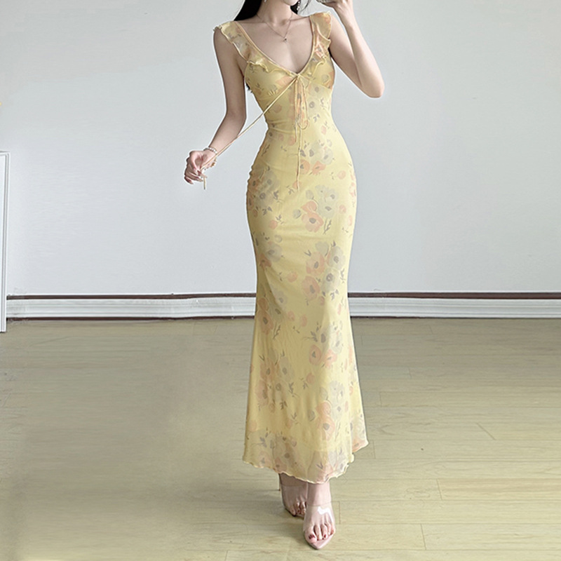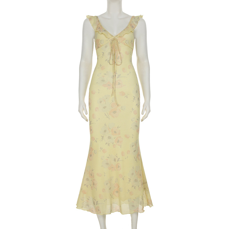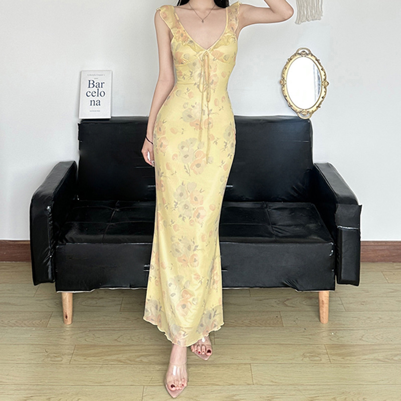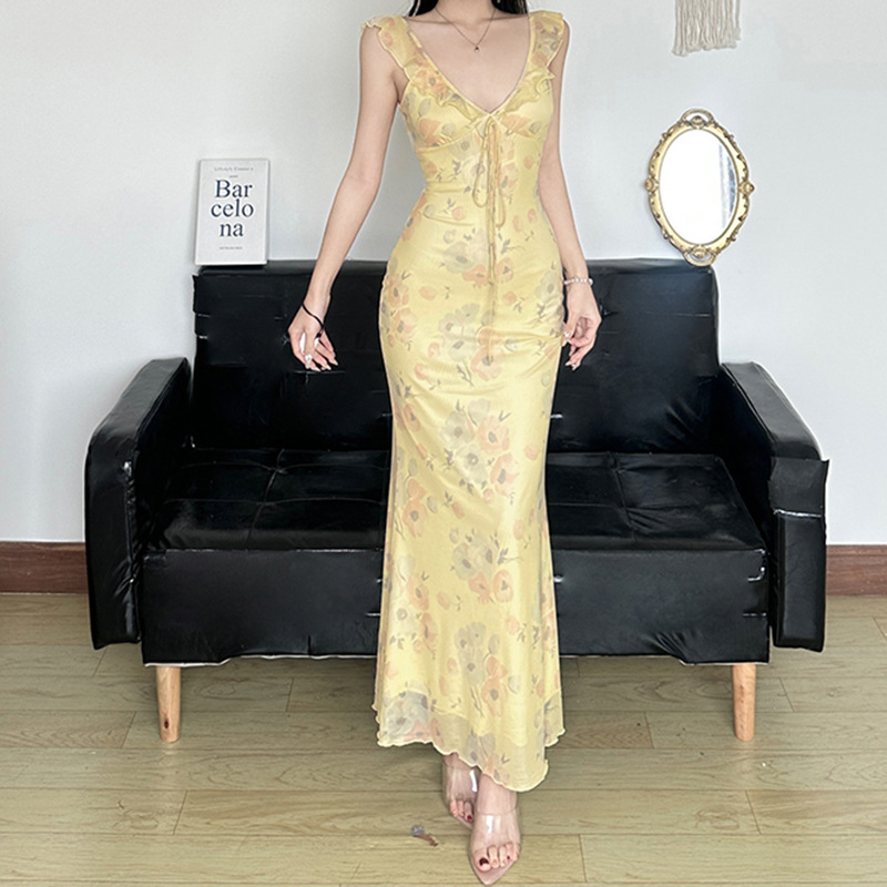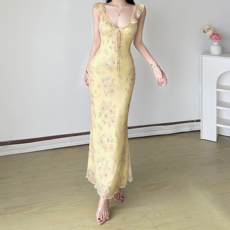 This Chic Holidays Floral Strap Ruffle Sexy Flying Sleeve Long Dress Design Made Of High Quality polyester And Spandex Material. It Is Stretchy, Durable And Comfortable. Casual Dresses With Long Sleeves Can Not Only Be Worn As Outerwear In Spring And Autumn, But Also Matching a Jacket In Winter, It Is a Must Have Item For Every Season. Grab Really Great Buy Casual Dresses For Women And Grow Your Business. No Moq In BamBam.