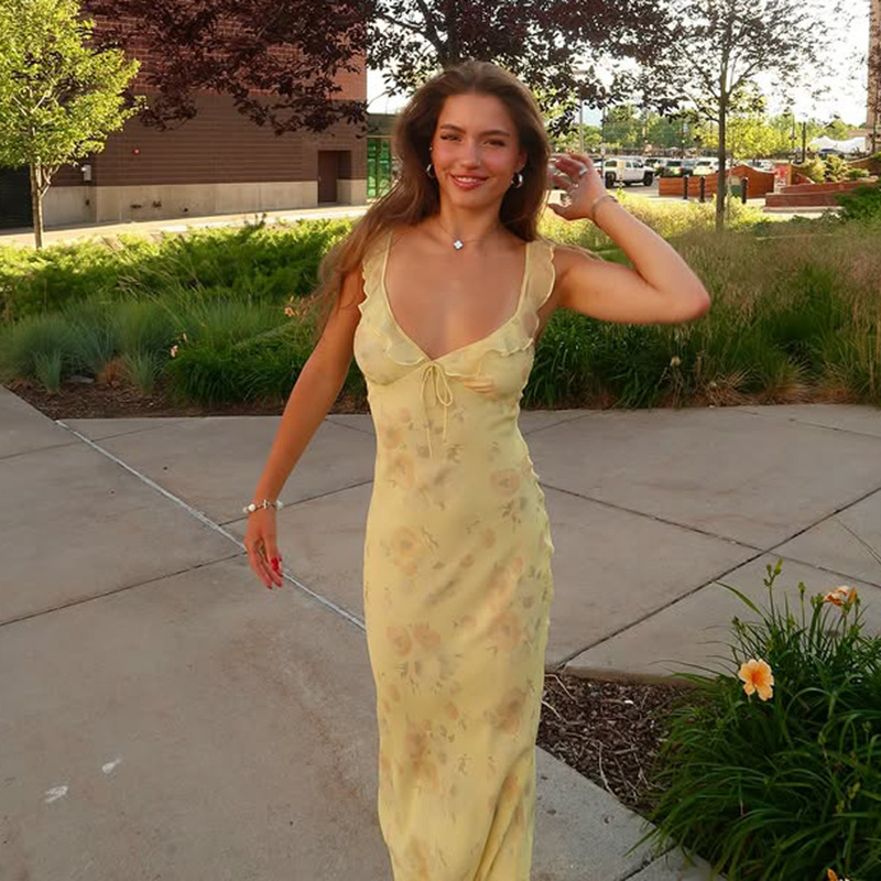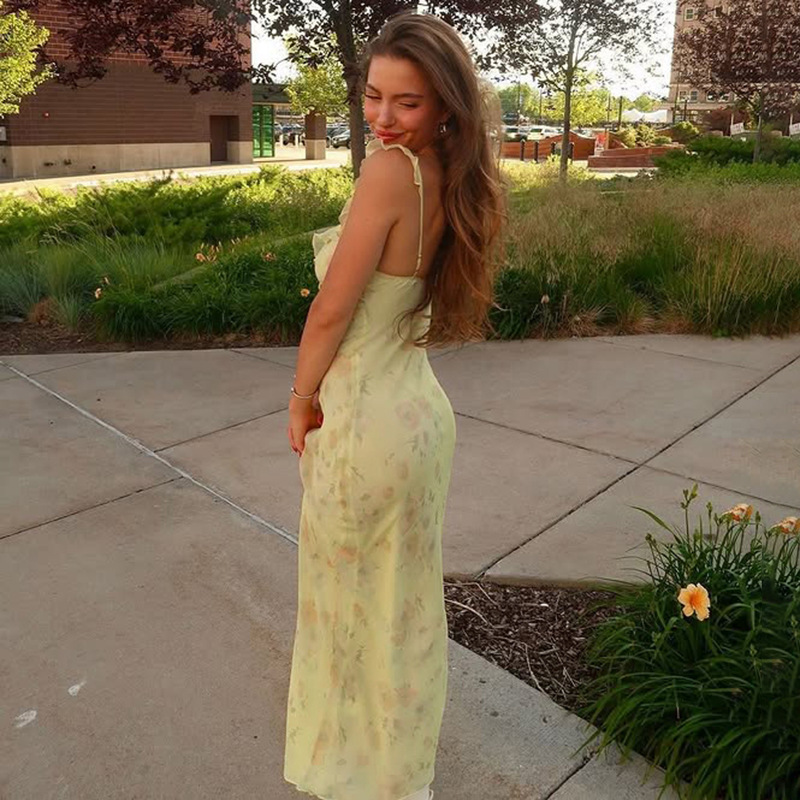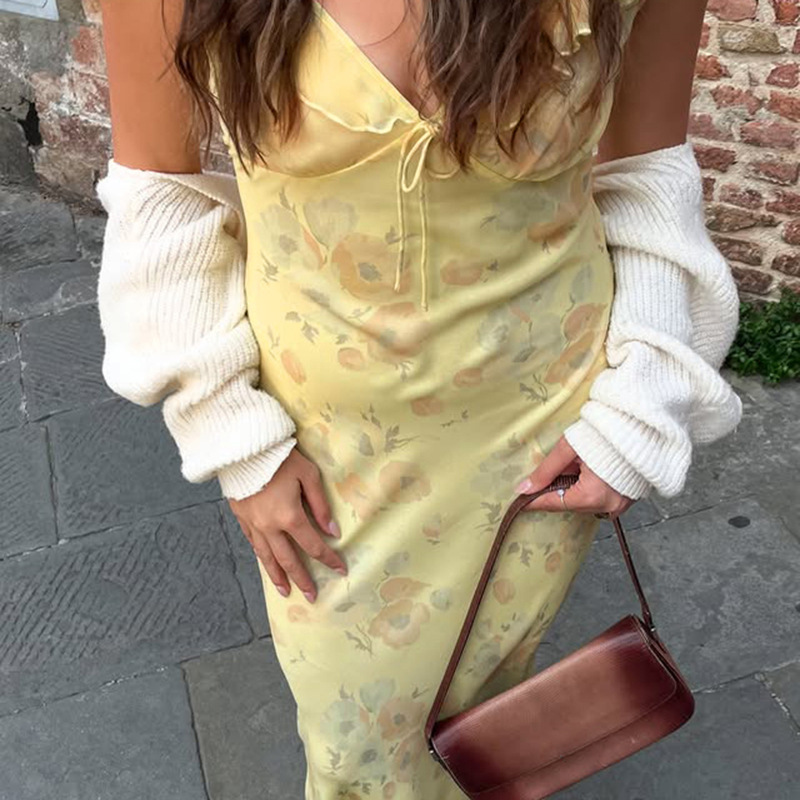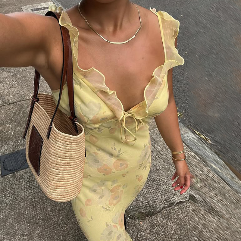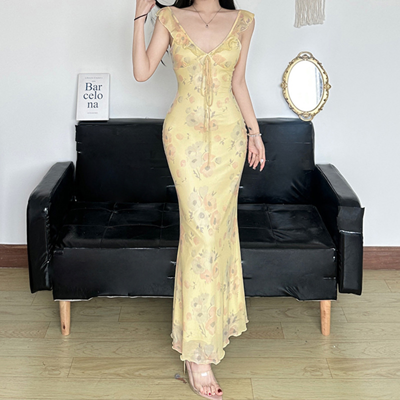 This Chic Holidays Floral Strap Ruffle Sexy Flying Sleeve Long Dress Design Made Of High Quality polyester And Spandex Material. It Is Stretchy, Durable And Comfortable. Casual Dresses With Long Sleeves Can Not Only Be Worn As Outerwear In Spring And Autumn, But Also Matching a Jacket In Winter, It Is a Must Have Item For Every Season. Grab Really Great Buy Casual Dresses For Women And Grow Your Business. No Moq In BamBam.