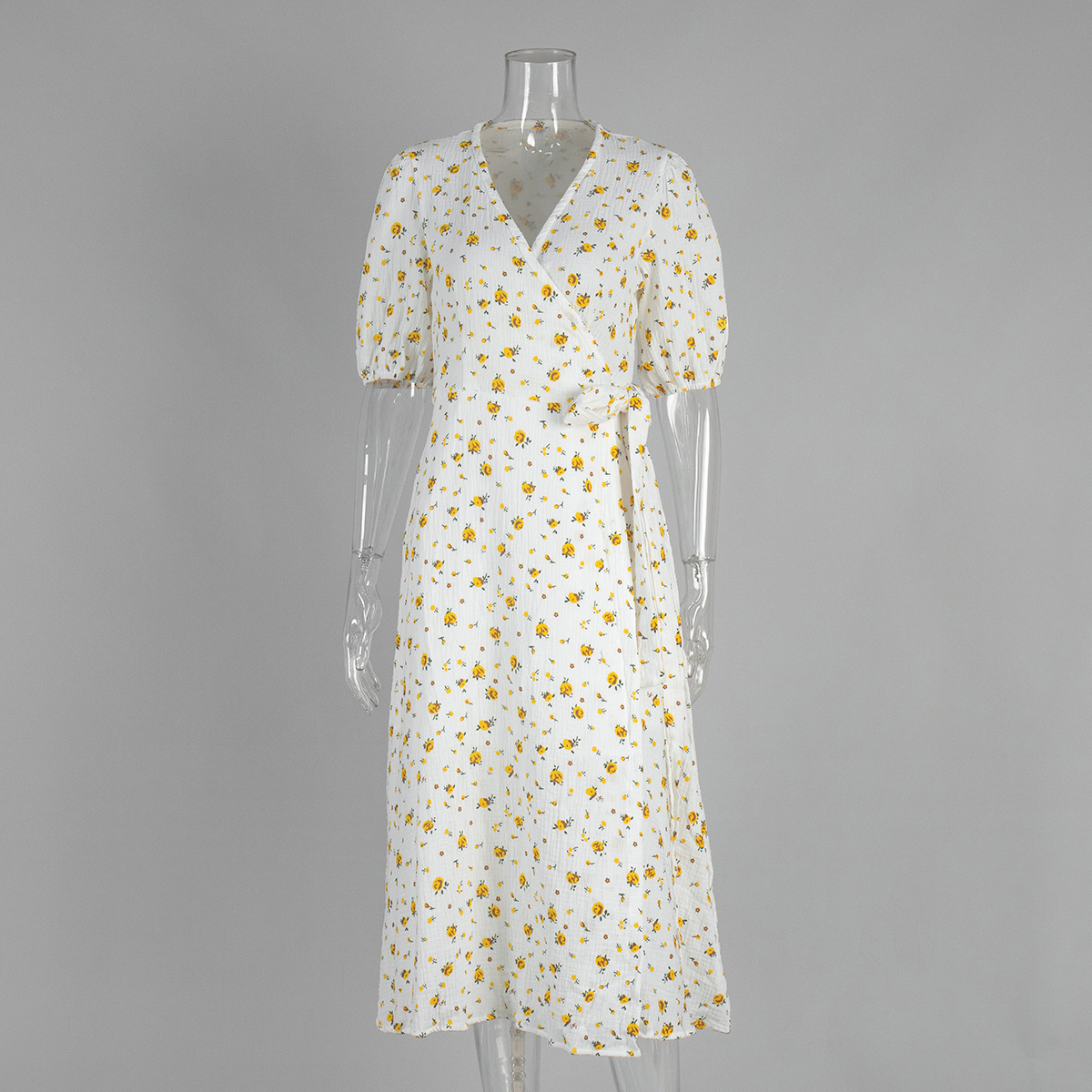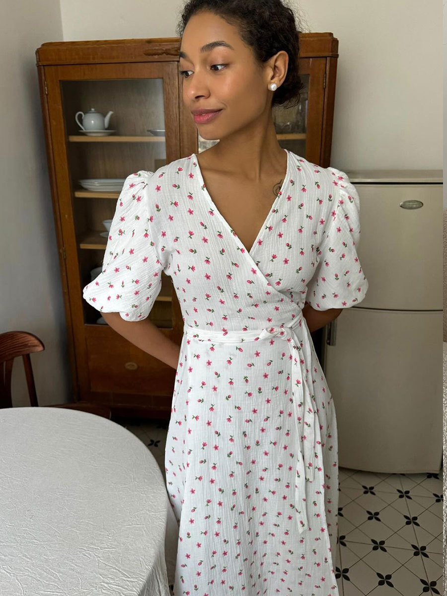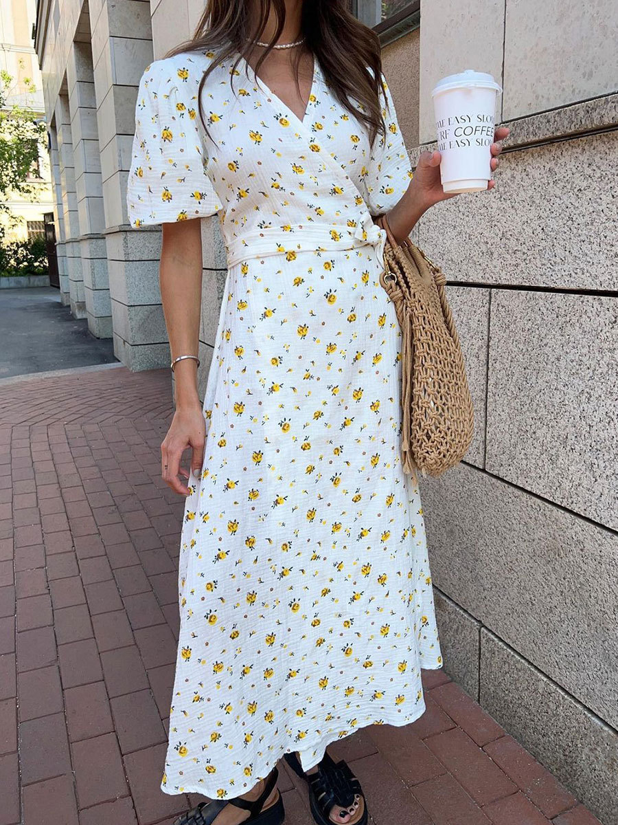 This Cotton Floral Print Summer Lace-Up Bubble Sleeve Maxi Dress Design Made Of High Quality polyester And Spandex Material. It Is Stretchy, Durable And Comfortable. Casual Dresses With Long Sleeves Can Not Only Be Worn As Outerwear In Spring And Autumn, But Also Matching a Jacket In Winter, It Is a Must Have Item For Every Season. Grab Really Great Buy Casual Dresses For Women And Grow Your Business. No Moq In BamBam.