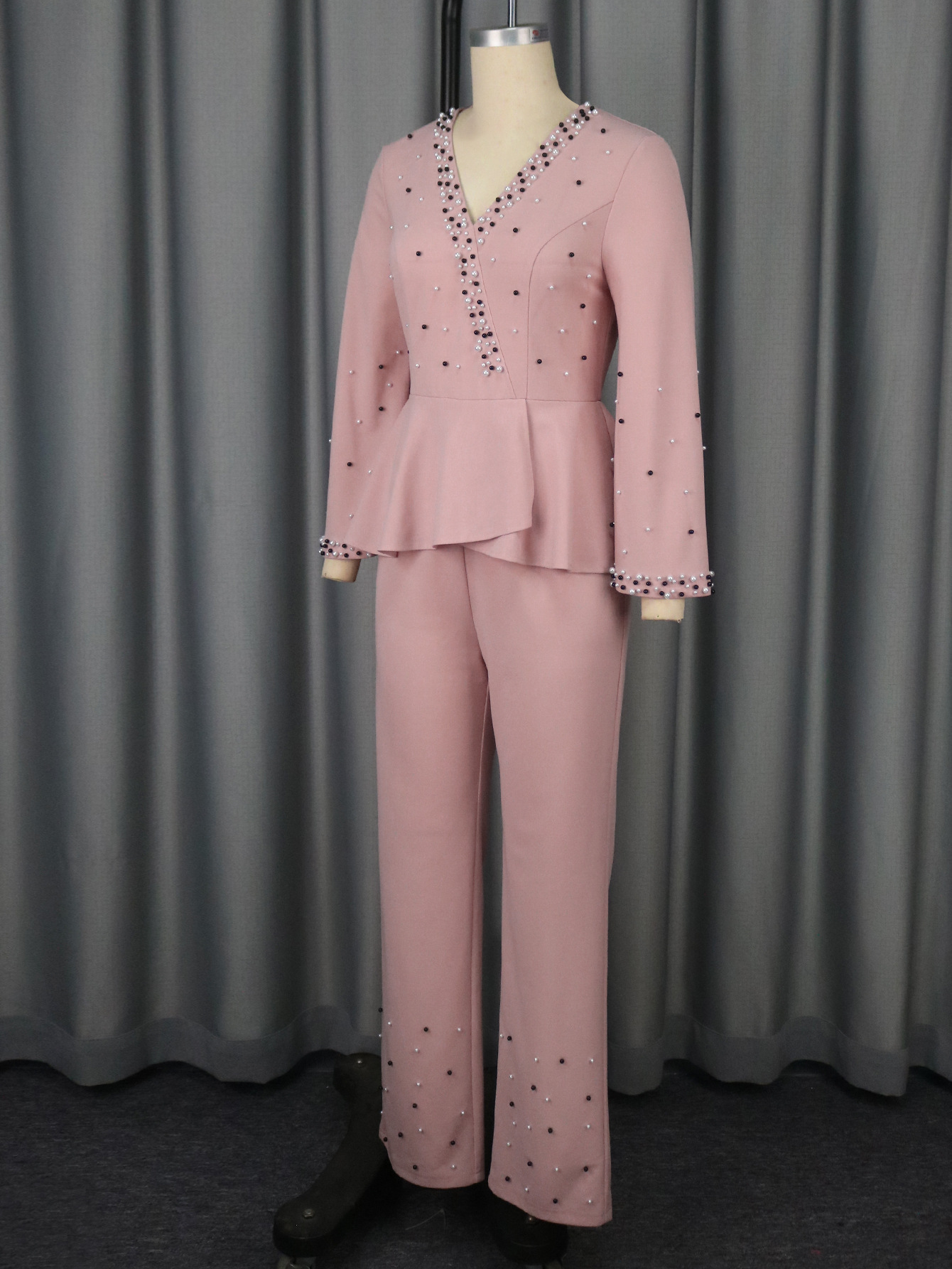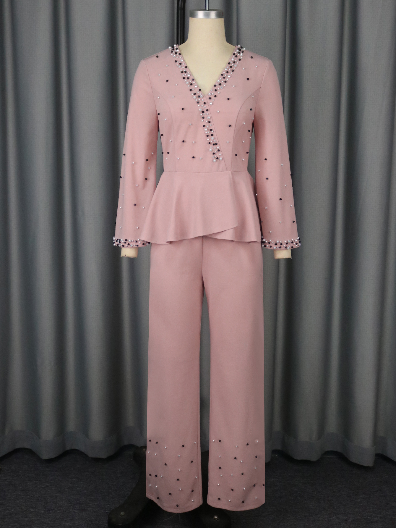 This Deep v Ruffle Slim Waist Beaded Elegant Chic Party Jumpsuits Design Made Of High Quality Polyster And Spandex Material. It Is Stretchy, Durable And Comfortable. Affordable Sexy Jumpsuits For Women Has Long Been a Party Favorite. BamBam provides a Rich selection Of Sequin, Beaded, See Through Mesh, Leopard, Floral Lace, Leather, Velvet, Tight And Fitted retail Jumpsuit Without Moq Limit.