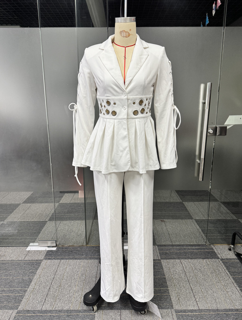 This Elegant Career Slim Waist Lace-Up Decor Blazer Two-Piece Set Made Of Durable And Comfortable Material. It Is a Must-Have Item For Commuting And Events. Ladies Blazer Can Be Found In All Seasons And All Occasions. No One Can Refuse The Temptation Of Blazers. Blazers Are No Longer Just Suitable For Business Occasions, Casual And Loose Cut Style Cheap retail Women’s Blazer Jackets Can Be Worn daily. Blazer Matching Women’s Pants Suits Looks More Business-Friendly And Can Be Worn To Work And Formal Occasions. When You Need More retail Women Blazers And Blazer Sets, You Can Always Find What You Need On Our retail Women Clothing Online Store.