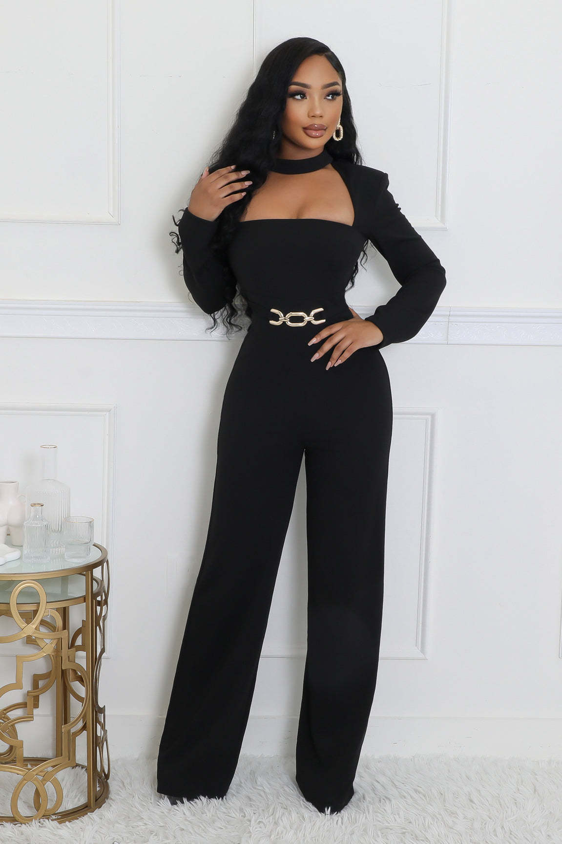 This Elegant Cutout Neck Long Sleeve Wide-Leg Jumpsuit Design Made Of High Quality Polyster And Spandex Material. It Is Stretchy, Durable And Comfortable. Affordable Sexy Jumpsuits For Women Has Long Been a Party Favorite. BamBam provides a Rich selection Of Sequin, Beaded, See Through Mesh, Leopard, Floral Lace, Leather, Velvet, Tight And Fitted retail Jumpsuit Without Moq Limit.
