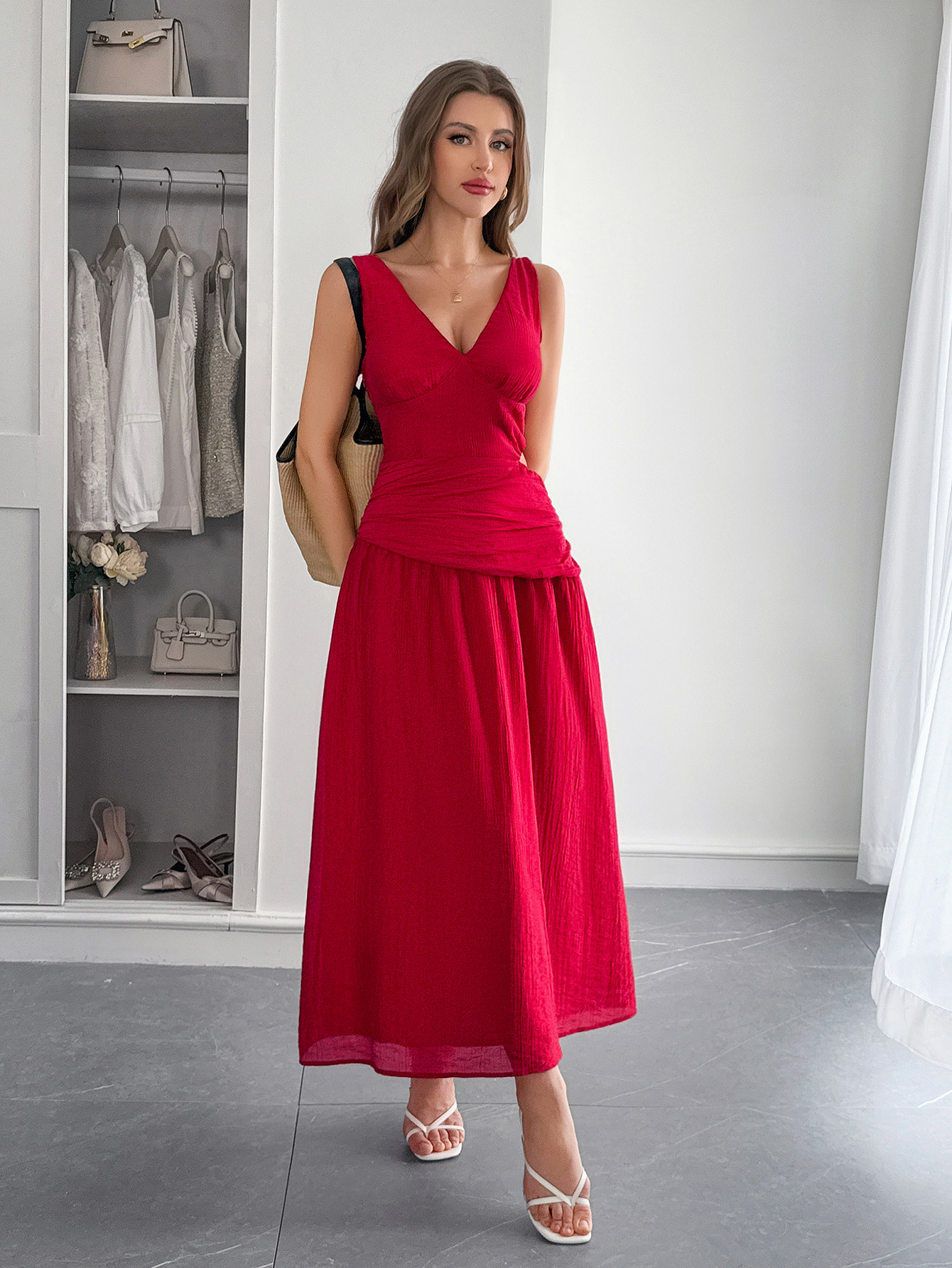 This Elegant Holiday Deep v-Neck Maxi Dress For Summer Design Made Of High Quality polyester And Spandex Material. It Is Stretchy, Durable And Comfortable. Casual Dresses With Long Sleeves Can Not Only Be Worn As Outerwear In Spring And Autumn, But Also Matching a Jacket In Winter, It Is a Must Have Item For Every Season. Grab Really Great Buy Casual Dresses For Women And Grow Your Business. No Moq In BamBam.