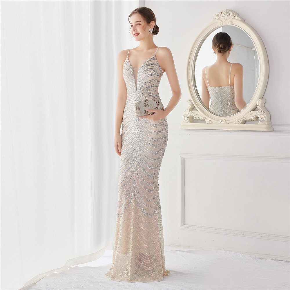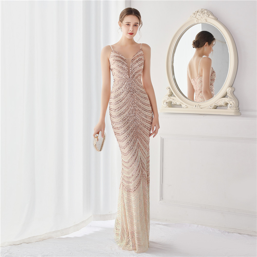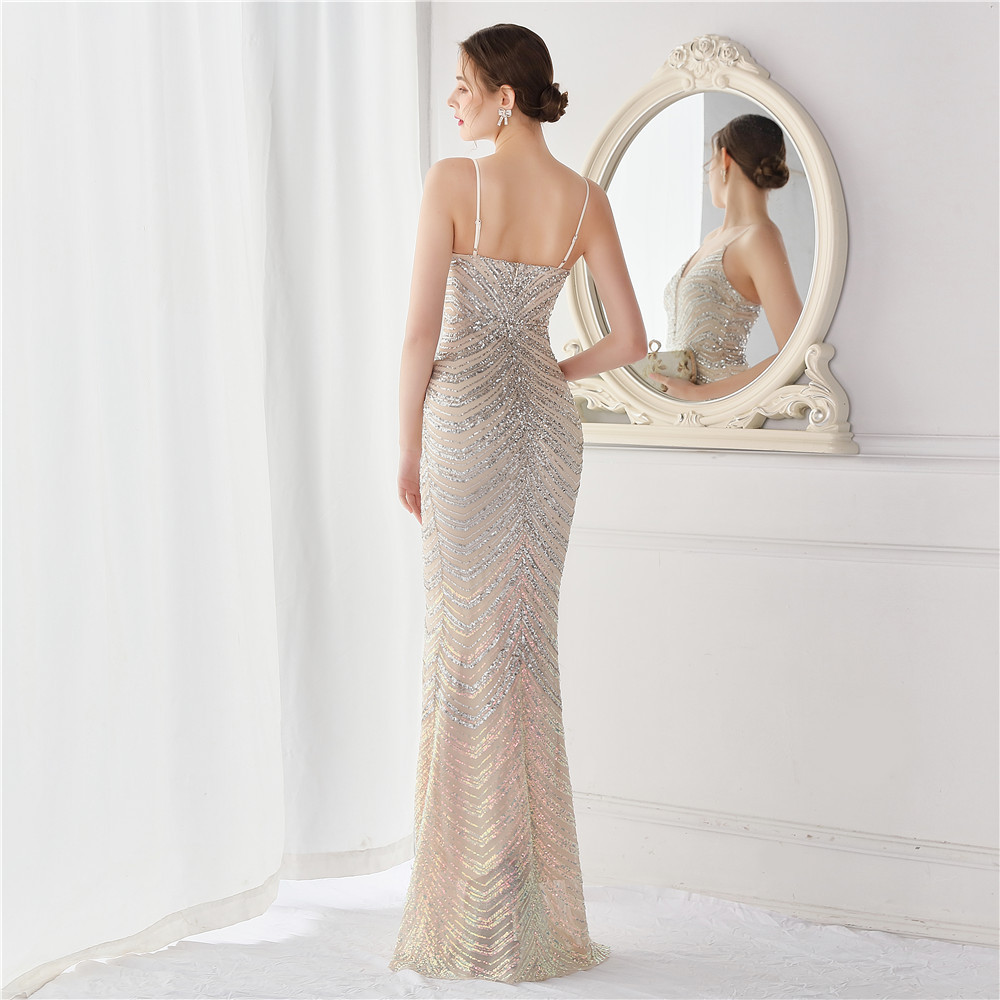 This Elegant Shining Sequin v Neck Strapless Slim Formal Cocktail Party Gown Design Made Of Good Quality Polyester And Spandex Material, Which Is Stretchy, Durable And Comfortable. The Long Evening Dresses And Gowns Is Always The main Choice For All Kinds Of Parties, Cocktail, Prom, Events, And Dating Occasions. Evening Gowns At BamBam Comes With Huge Selections - Sequins, Beaded, Satin, Velvet, Lace.... When You Need retail Evening Dresses, BamBam retail Women Garment Online Shop Is Your One-Stop Online Shopping Choice.