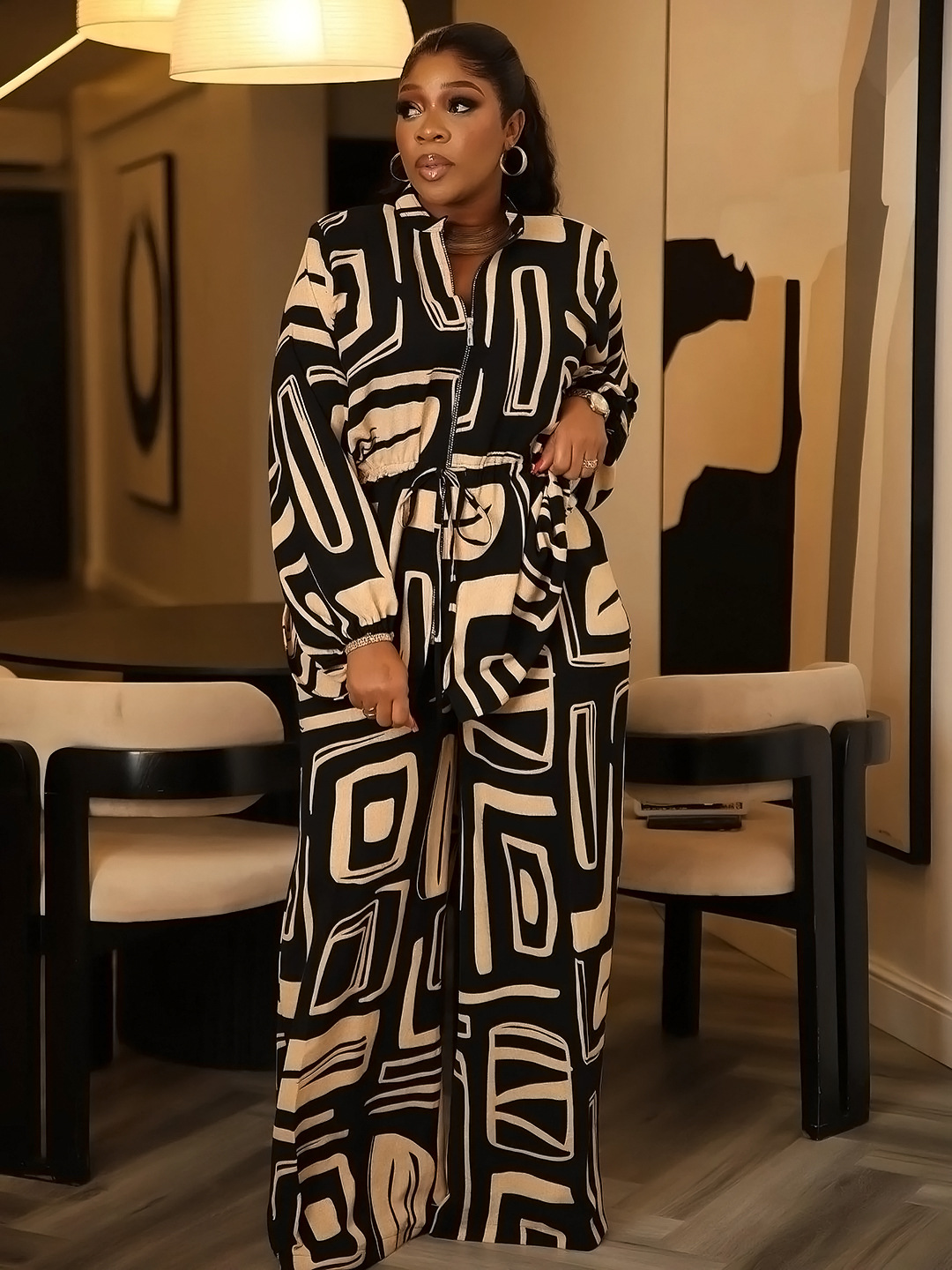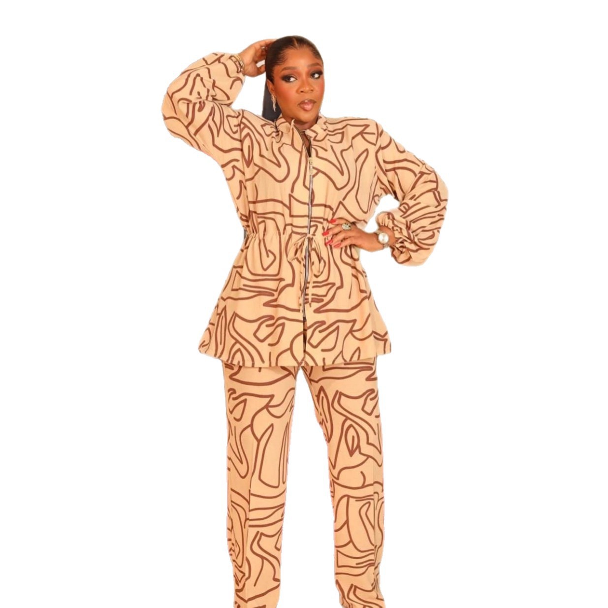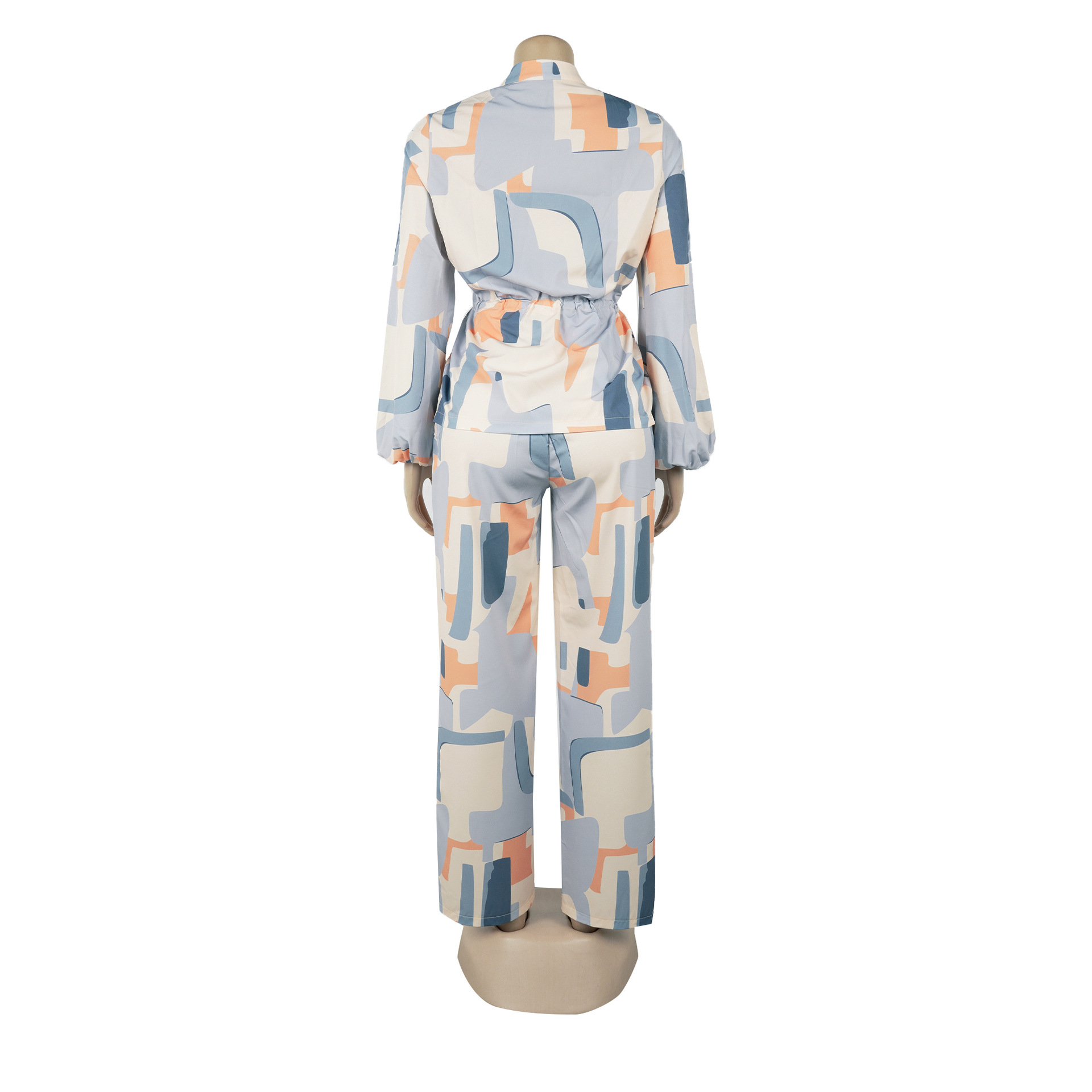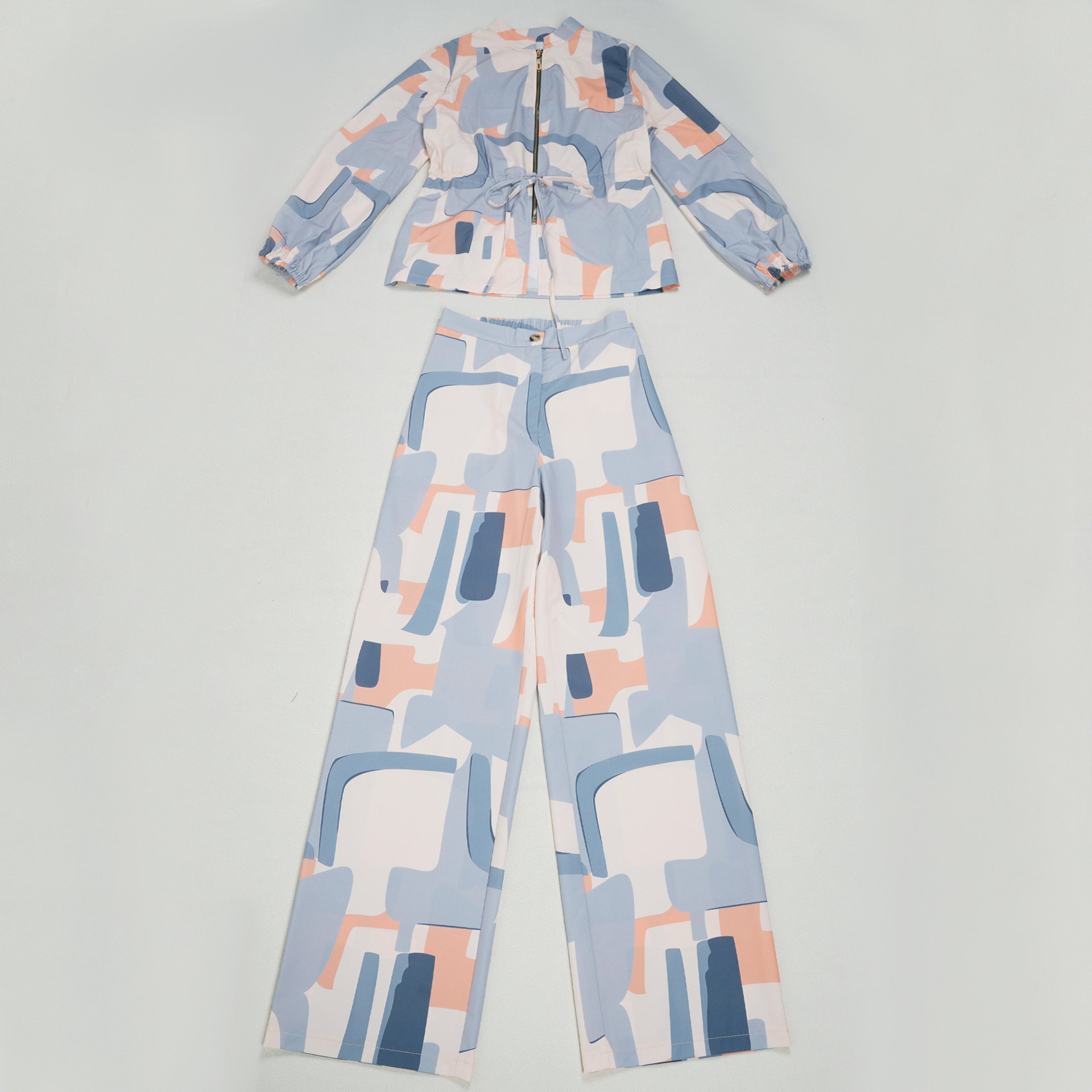 This Elegant Stand Collar Print Drawstring Slim Waist Long Sleeve Two-Piece Pants Set Design Made Of High Quality polyester And Spandex Material. It Is Stretchy, Durable And Comfortable. It Is a Must-Have Outfit For All Seasons. retail Two Piece Pant Sets Can Solve Your cloth selection Troubles. Explore More 2 Piece Pants Set On BamBam retail Women Clothing Online Store.