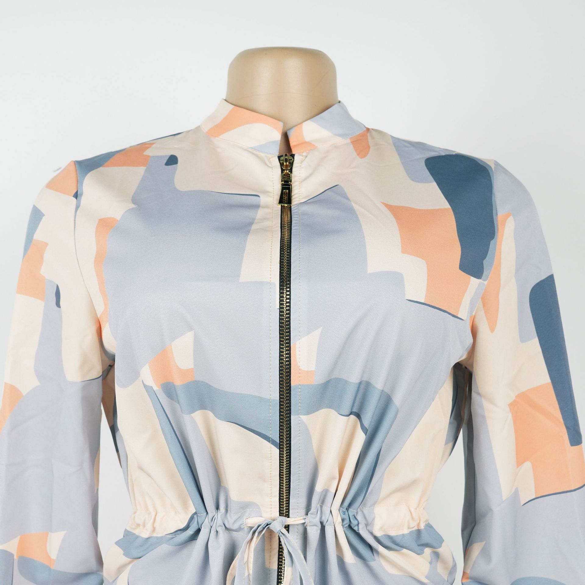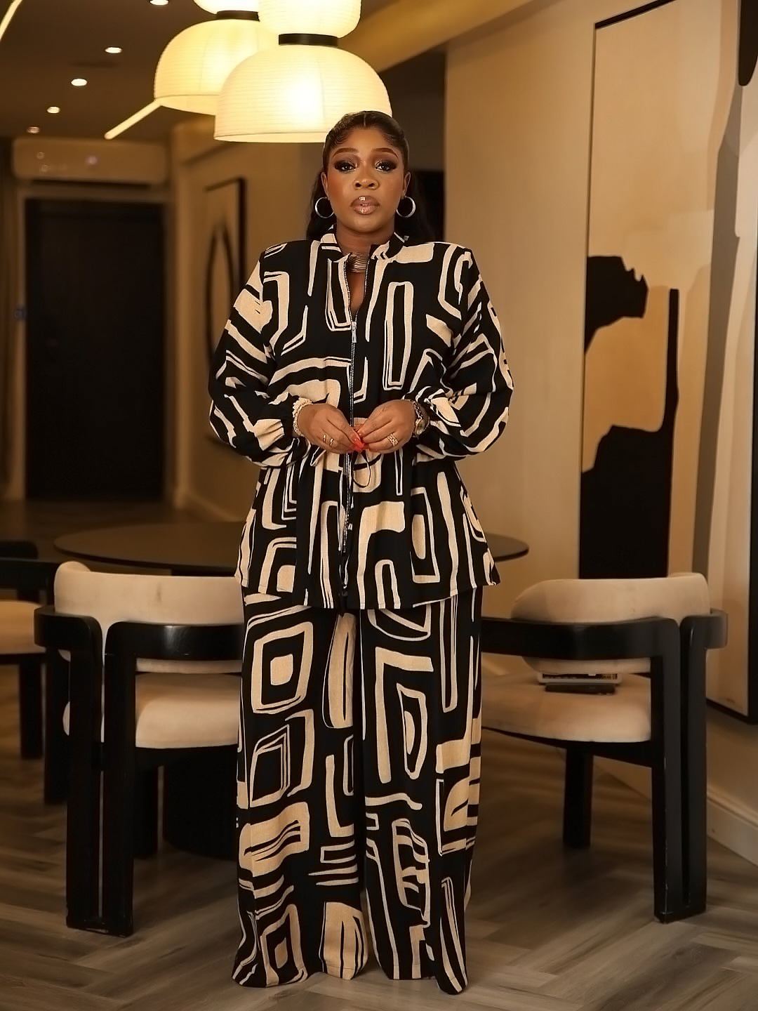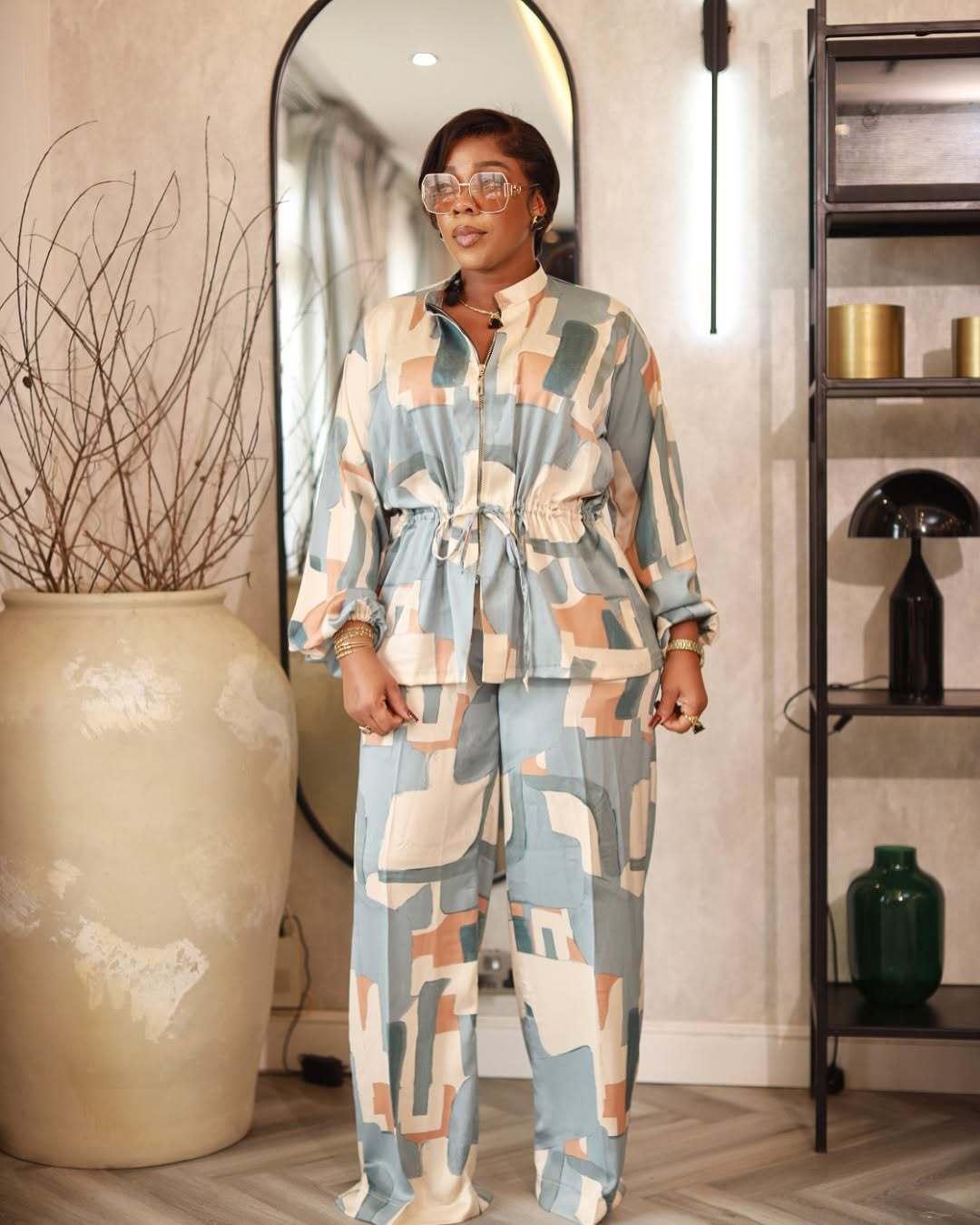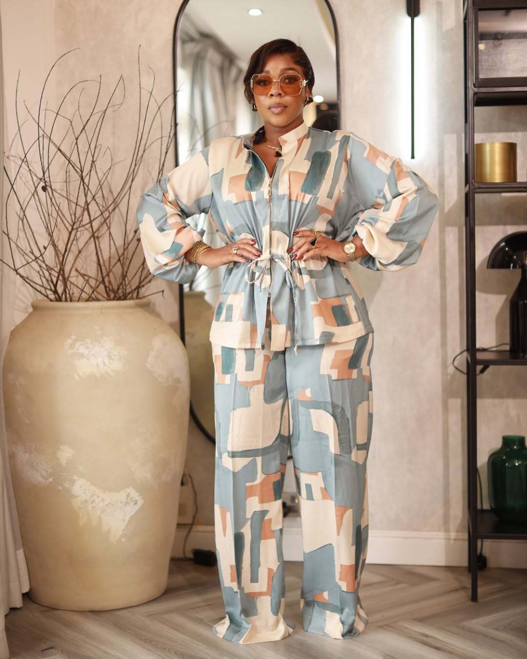 This Elegant Stand Collar Print Drawstring Slim Waist Long Sleeve Two-Piece Pants Set Design Made Of High Quality polyester And Spandex Material. It Is Stretchy, Durable And Comfortable. It Is a Must-Have Outfit For All Seasons. retail Two Piece Pant Sets Can Solve Your cloth selection Troubles. Explore More 2 Piece Pants Set On BamBam retail Women Clothing Online Store.