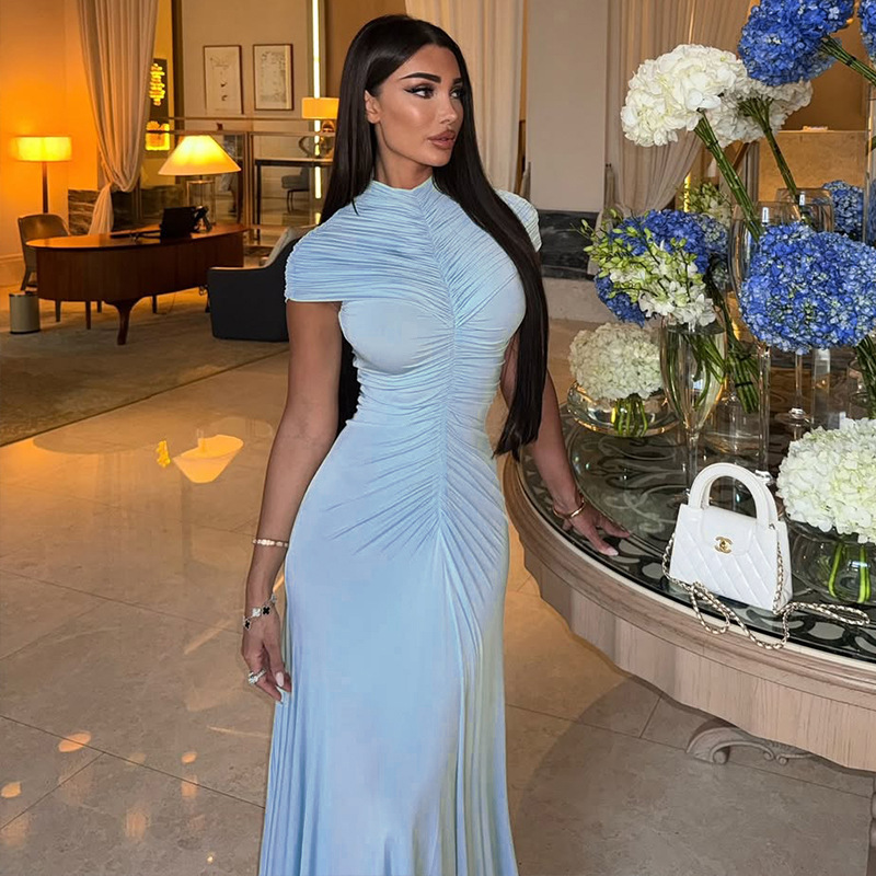 This Elegant Women's Pleated Solid Color Bodycon Slim High Neck Short-Sleeve Long Dress Design Made Of High Quality polyester And Spandex Material, Which Is Stretchy, Soft And Comfortable. The Is Always On Trend. This Casual Maxi Dresses Is a Must-Have For Vocations And Dating Occasions. Maxi Dresses At BamBam Comes With Huge Selections Of Colors, Sizes, Material, And Designs. When You Need retail affordable Maxi Dresses, You Can Always Find Vary Collection And No Moq On Our retail Women Fashion Online Store.