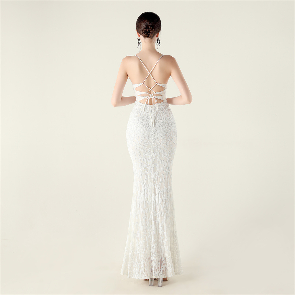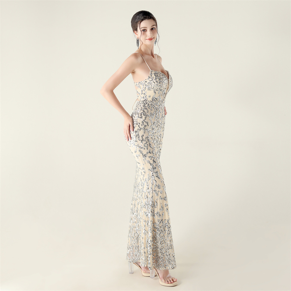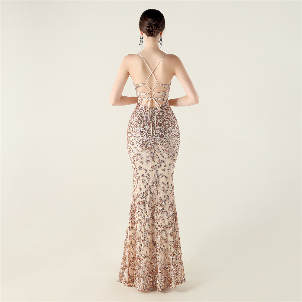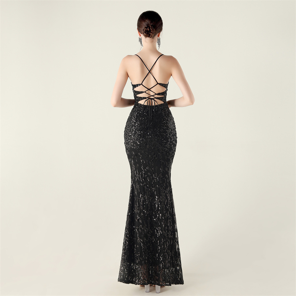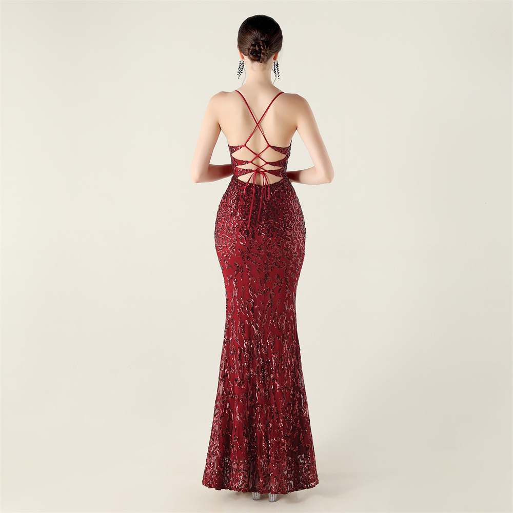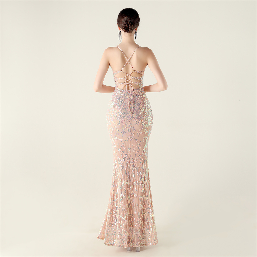 This Embroidery Sequin Slim Waist Lace-Up Deep v Neck Strap Formal Party Evening Dress Design Made Of Good Quality polyester And Spandex Material, Which Is Stretchy, Durable And Comfortable. The Long Evening Dresses And Gowns Is Always The main Choice For All Kinds Of Parties, Cocktail, Prom, Events, And Dating Occasions. Evening Gowns At BamBam Comes With Huge Selections - Sequins, Beaded, Satin, Velvet, Lace.... When You Need retail Evening Dresses, BamBam retail Women Garment Online Shop Is Your One-Stop Online Shopping Choice.