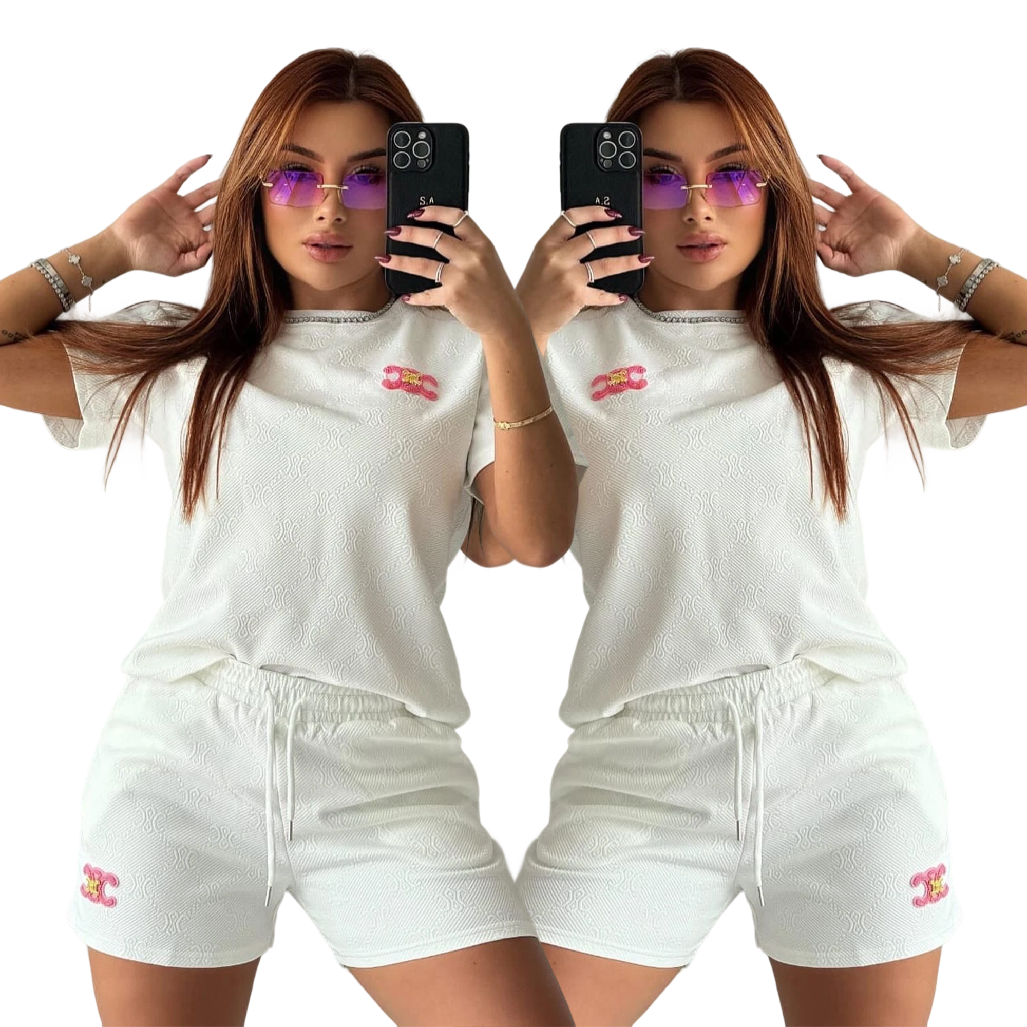 This Fashion Casual Women's Jacquard Short Sleeve Shorts Set Design Made Of High Quality polyester And Spandex Material. It Is Stretchy, Durable And Comfortable. It Come With The Top And Shorts. retail Short Sets Saves Some People From The Trouble Of Matching. And For Matchmakers It Is More Flexible Than One-Piece Outfit. Two Piece Short Set Can Be Worn Together Or Individually, Ladies Can Match Them According To Different Occasions. Grab Different Two Piece Short Sets For This Spring And Summer.