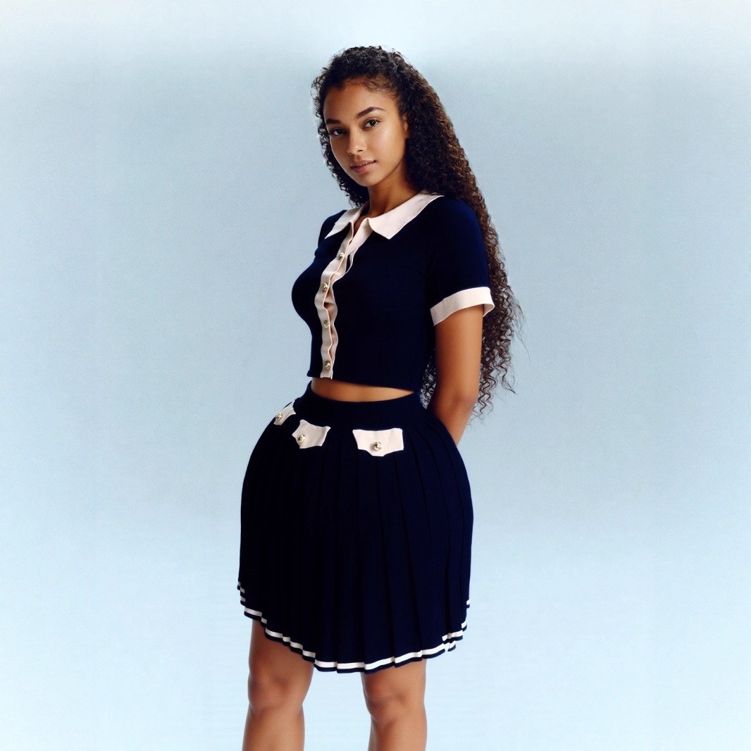 This Fashion Turndown Collar Metal Button Cardigan & Pleated Skirt Knit Set Design Made Of High Quality polyester And Spandex Material. It Is Stretchy, Durable And Comfortable. It Come With The Top And Skirt Matching Set. Women’s Skirt Suit Sets Is a Great Alternative To One Piece Outfit. It Can Either Be Worn Together Or Individually, So You Can Combine Them Endlessly. Grab Different Two Piece Skirt Set retail On Our Website a Women's Clothing Store Online At Really affordable price And Enjoy fast delivery worldwide.