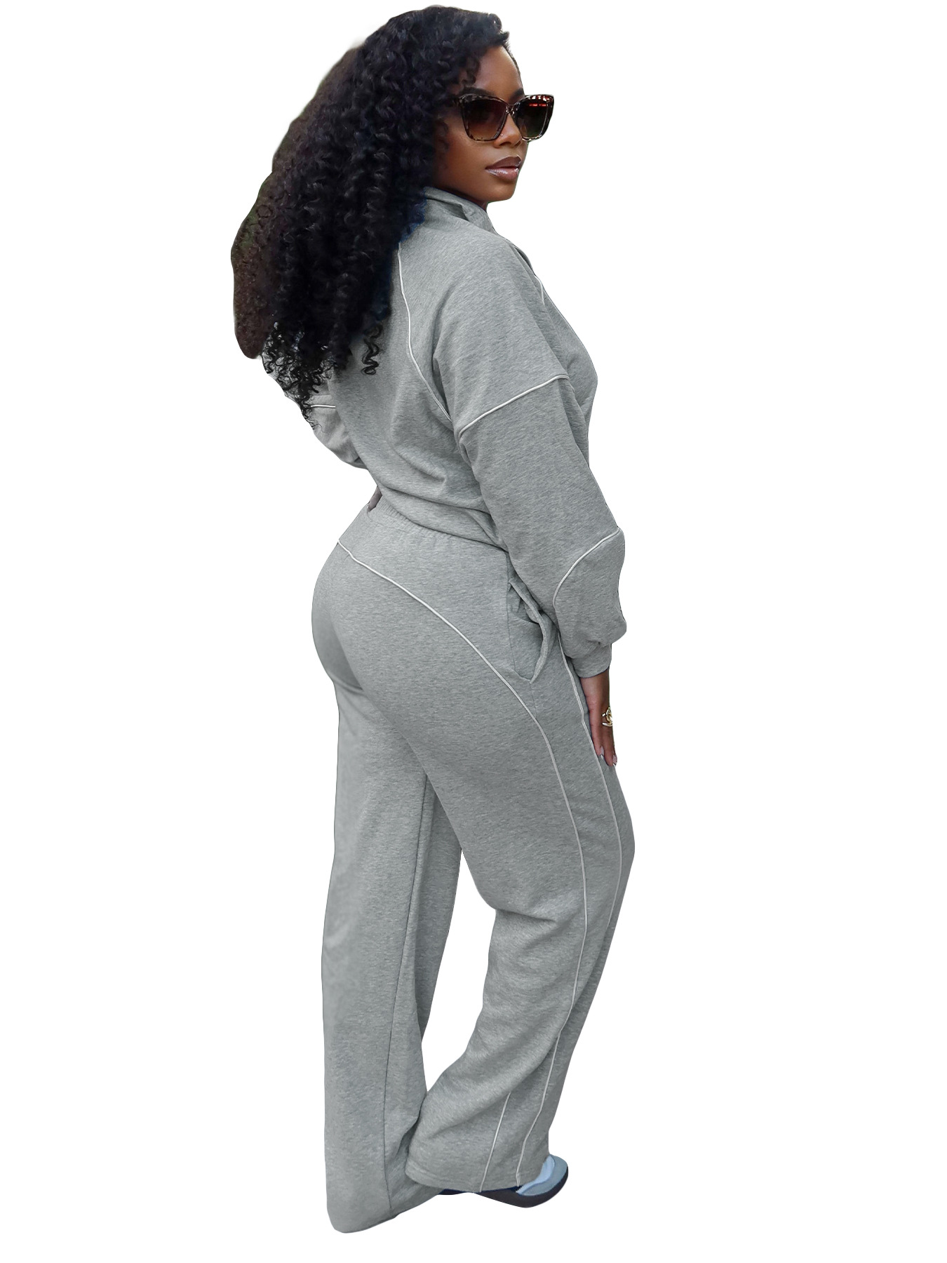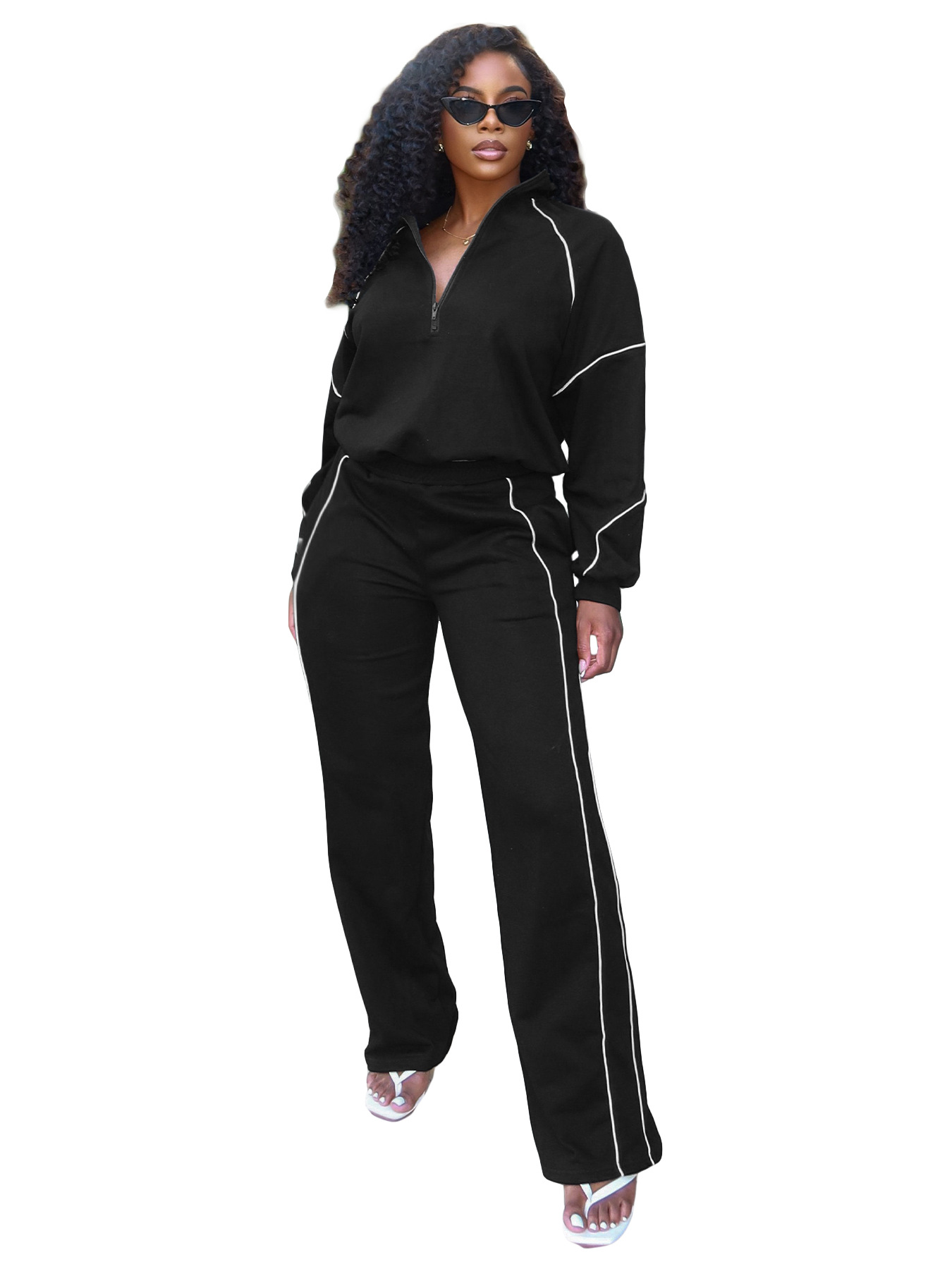 This Fashion Women's Buckle Slim Waist Striped Zipper Top Straight Leg Sport Pants Two-Piece Set Design Made Of High Quality polyester And Spandex Material. It Is Stretchy, Durable And Comfortable. It Is a Must-Have Outfit For All Seasons. retail Two Piece Pant Sets Can Solve Your cloth selection Troubles. Explore More 2 Piece Pants Set On BamBam retail Women Clothing Online Store.