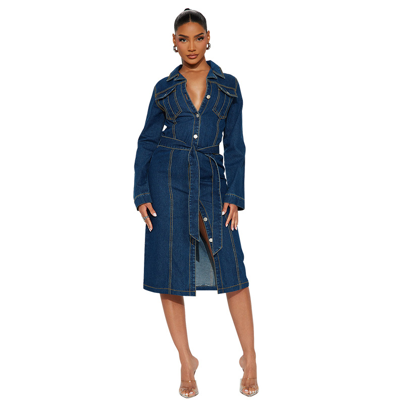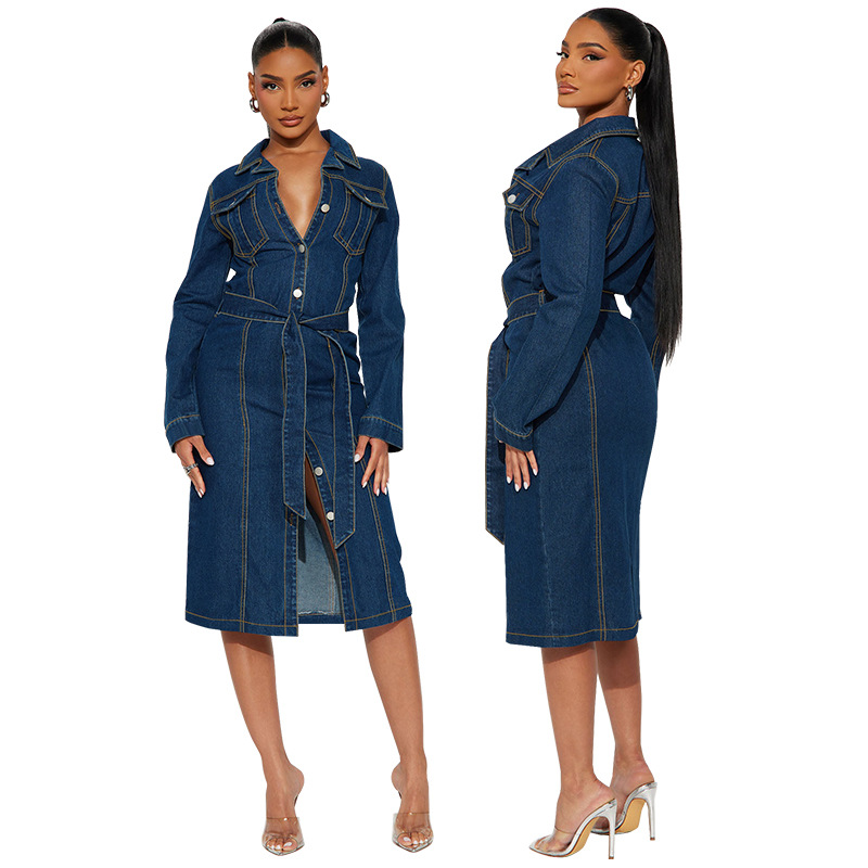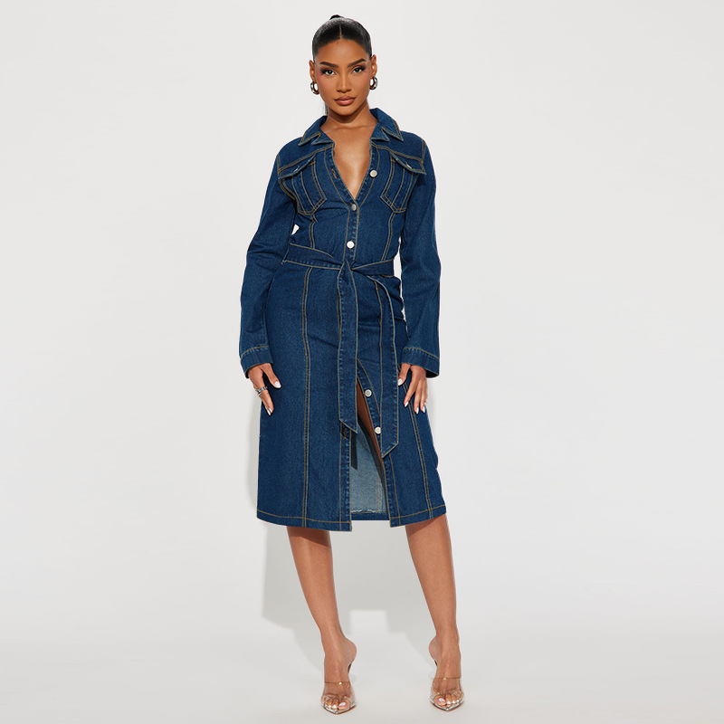 This Fashion Women's Clothing Denim Long Sleeve Button Midi Dress Design Made Of High Quality polyester And Spandex Material. It Is Stretchy, Durable And Comfortable. Casual Dresses With Long Sleeves Can Not Only Be Worn As Outerwear In Spring And Autumn, But Also Matching a Jacket In Winter, It Is a Must Have Item For Every Season. Grab Really Great Buy Casual Dresses For Women And Grow Your Business. No Moq In BamBam.