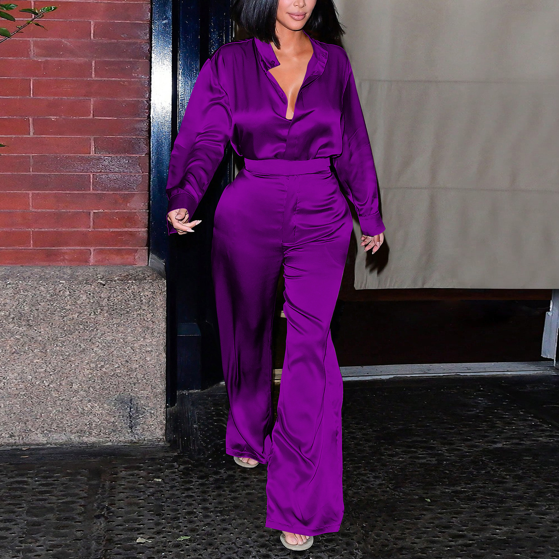 This Fashion Women's Long Sleeve Shirt & Pants Set Design Made Of High Quality polyester And Spandex Material. It Is Stretchy, Durable And Comfortable. It Is a Must-Have Outfit For All Seasons. retail Two Piece Pant Sets Can Solve Your cloth selection Troubles. Explore More 2 Piece Pants Set On BamBam retail Women Clothing Online Store.