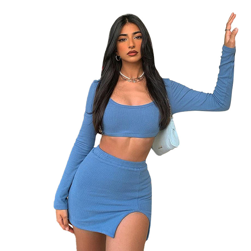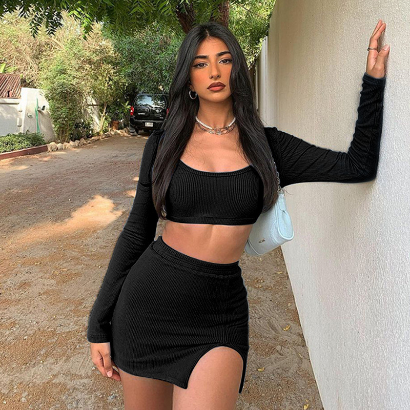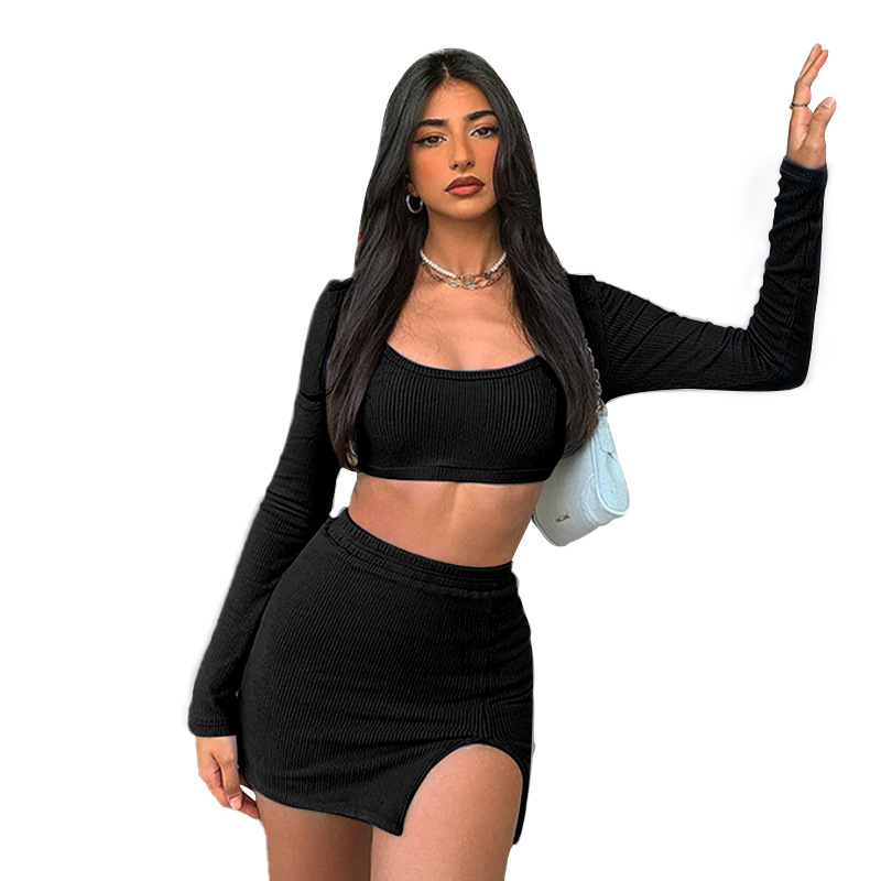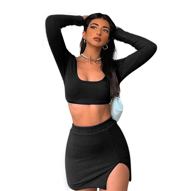 This Fashion Women's Rib Long Sleeve Camisole Top Sexy Slit Tight-Fitting Bodycon Short Skirt Set Design Made Of High Quality polyester And Spandex Material. It Is Stretchy, Durable And Comfortable. It Come With The Top And Skirt Matching Set. Women’s Skirt Suit Sets Is a Great Alternative To One Piece Outfit. It Can Either Be Worn Together Or Individually, So You Can Combine Them Endlessly. Grab Different Two Piece Skirt Set retail On Our Website a Women's Clothing Store Online At Really affordable price And Enjoy fast delivery worldwide.