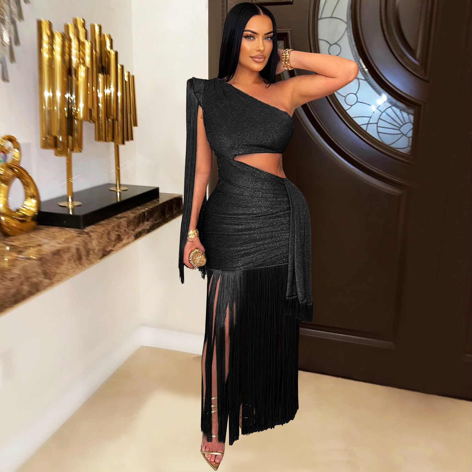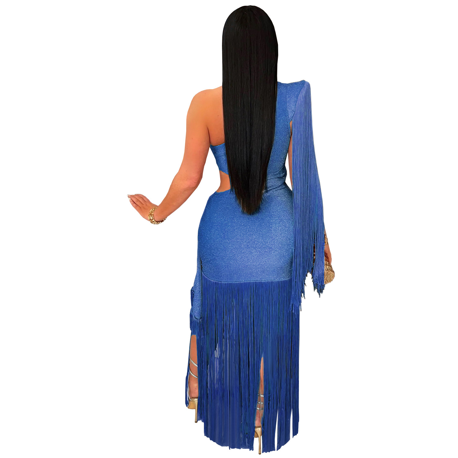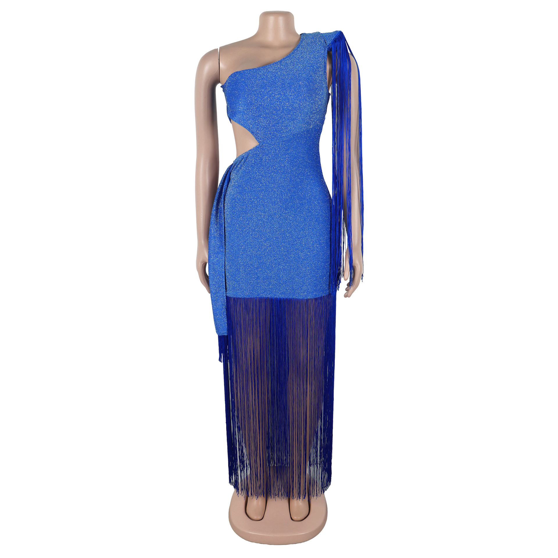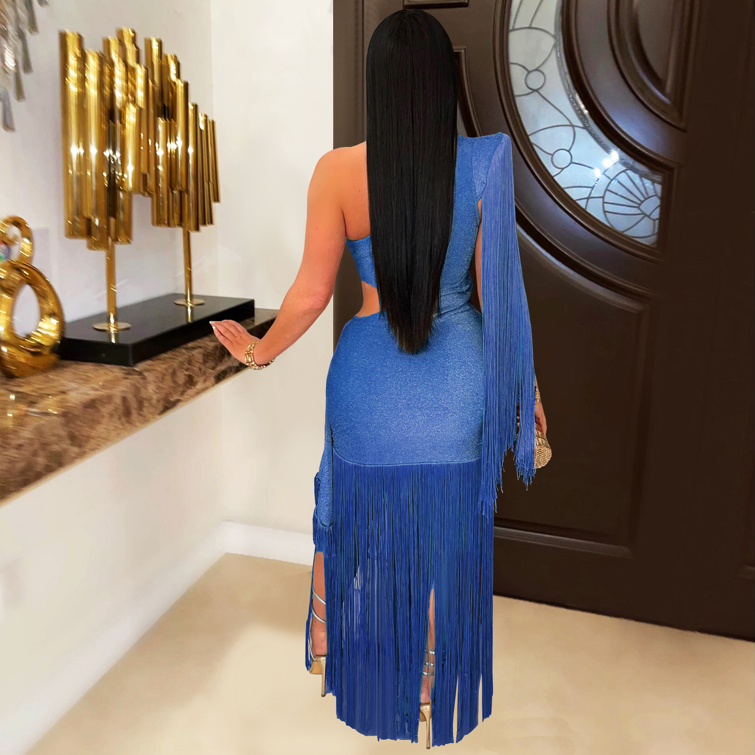 This Fashion Women's Sexy Casual One-Shoulder Tassel Maxi Dress Design Made Of Good Quality Polyester And Spandex Material, Which Is Stretchy, Durable And Comfortable. The Long Evening Dresses And Gowns Is Always The main Choice For All Kinds Of Parties, Cocktail, Prom, Events, And Dating Occasions. Evening Gowns At BamBam Comes With Huge Selections - Sequins, Beaded, Satin, Velvet, Lace.... When You Need retail Evening Dresses, BamBam retail Women Garment Online Shop Is Your One-Stop Online Shopping Choice.