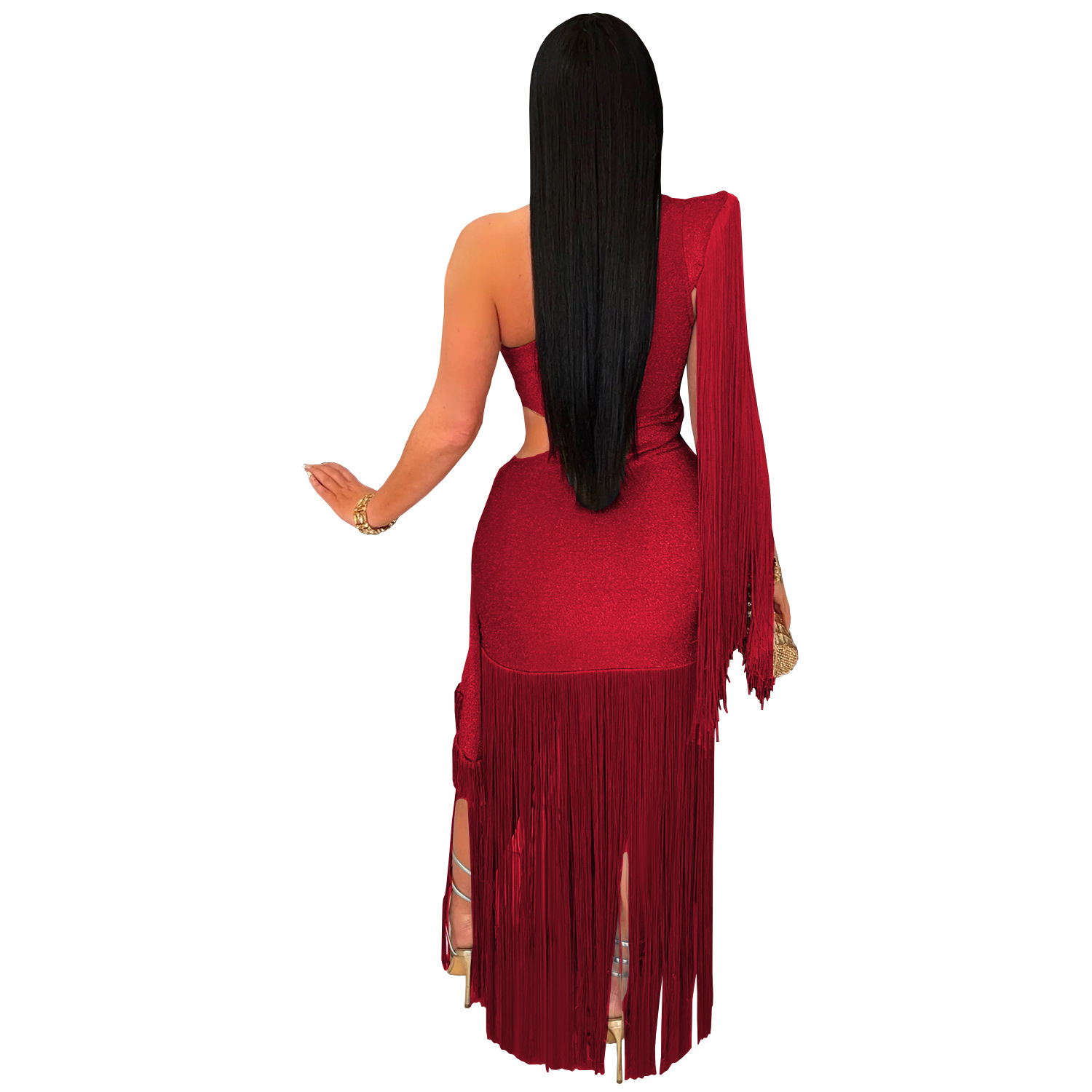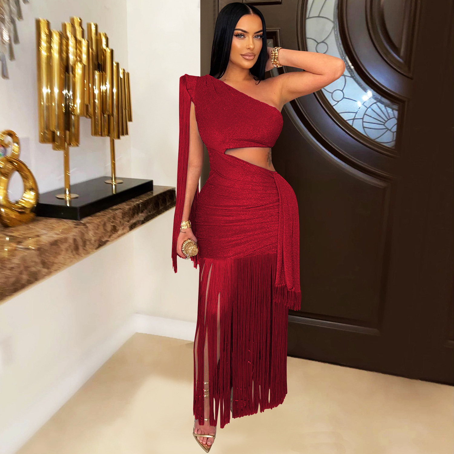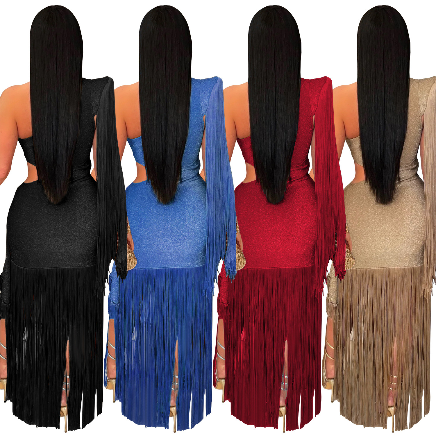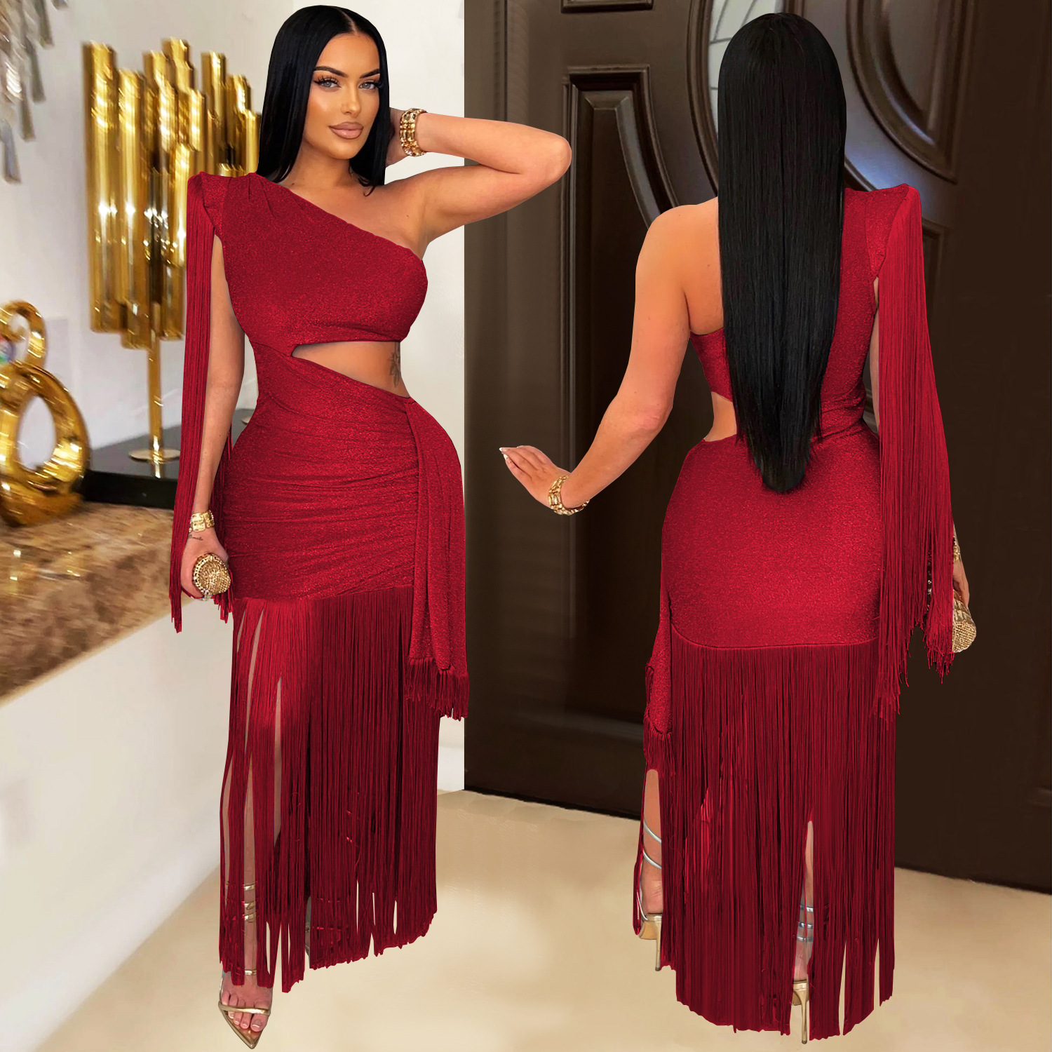 This Fashion Women's Sexy Casual One-Shoulder Tassel Maxi Dress Design Made Of Good Quality Polyester And Spandex Material, Which Is Stretchy, Durable And Comfortable. The Long Evening Dresses And Gowns Is Always The main Choice For All Kinds Of Parties, Cocktail, Prom, Events, And Dating Occasions. Evening Gowns At BamBam Comes With Huge Selections - Sequins, Beaded, Satin, Velvet, Lace.... When You Need retail Evening Dresses, BamBam retail Women Garment Online Shop Is Your One-Stop Online Shopping Choice.