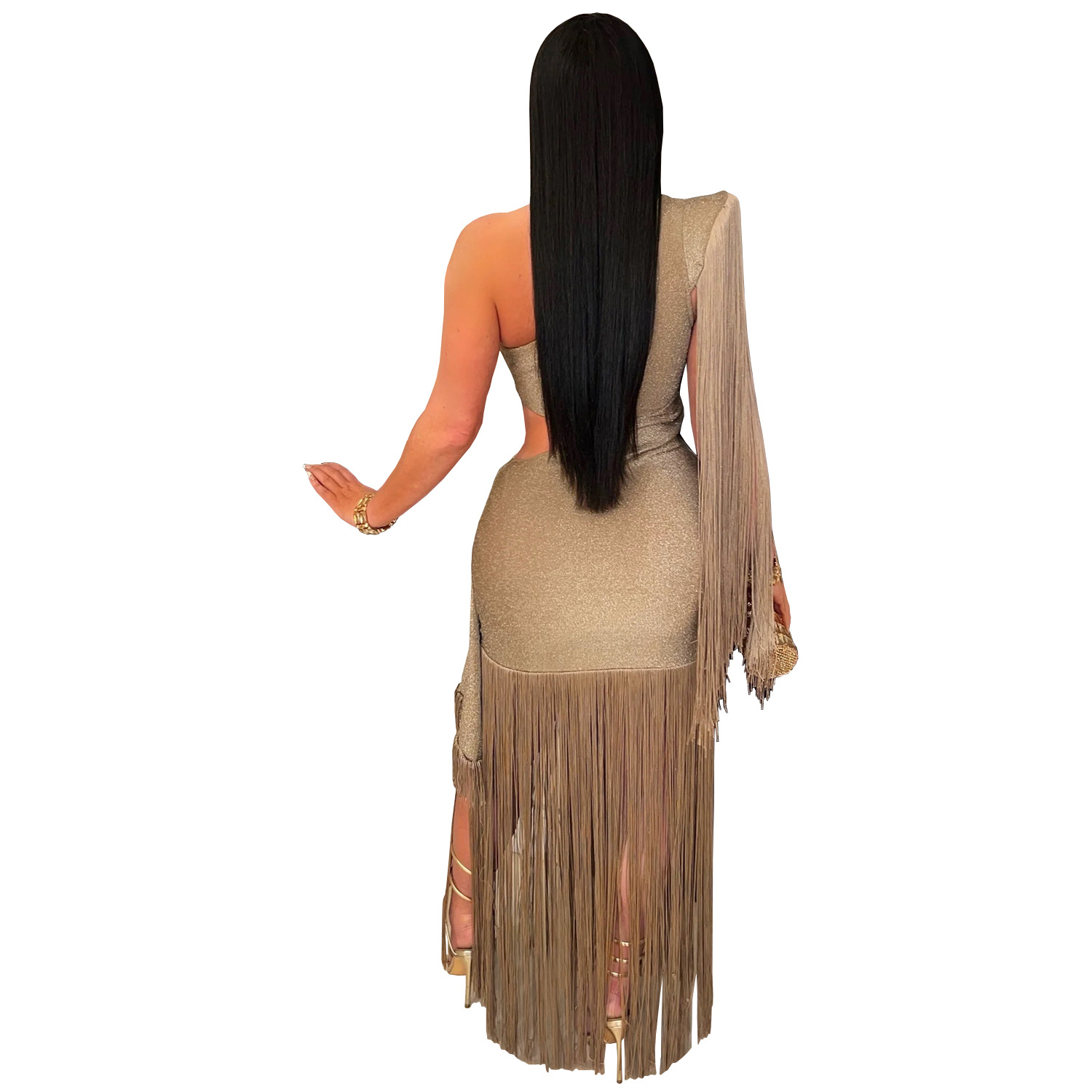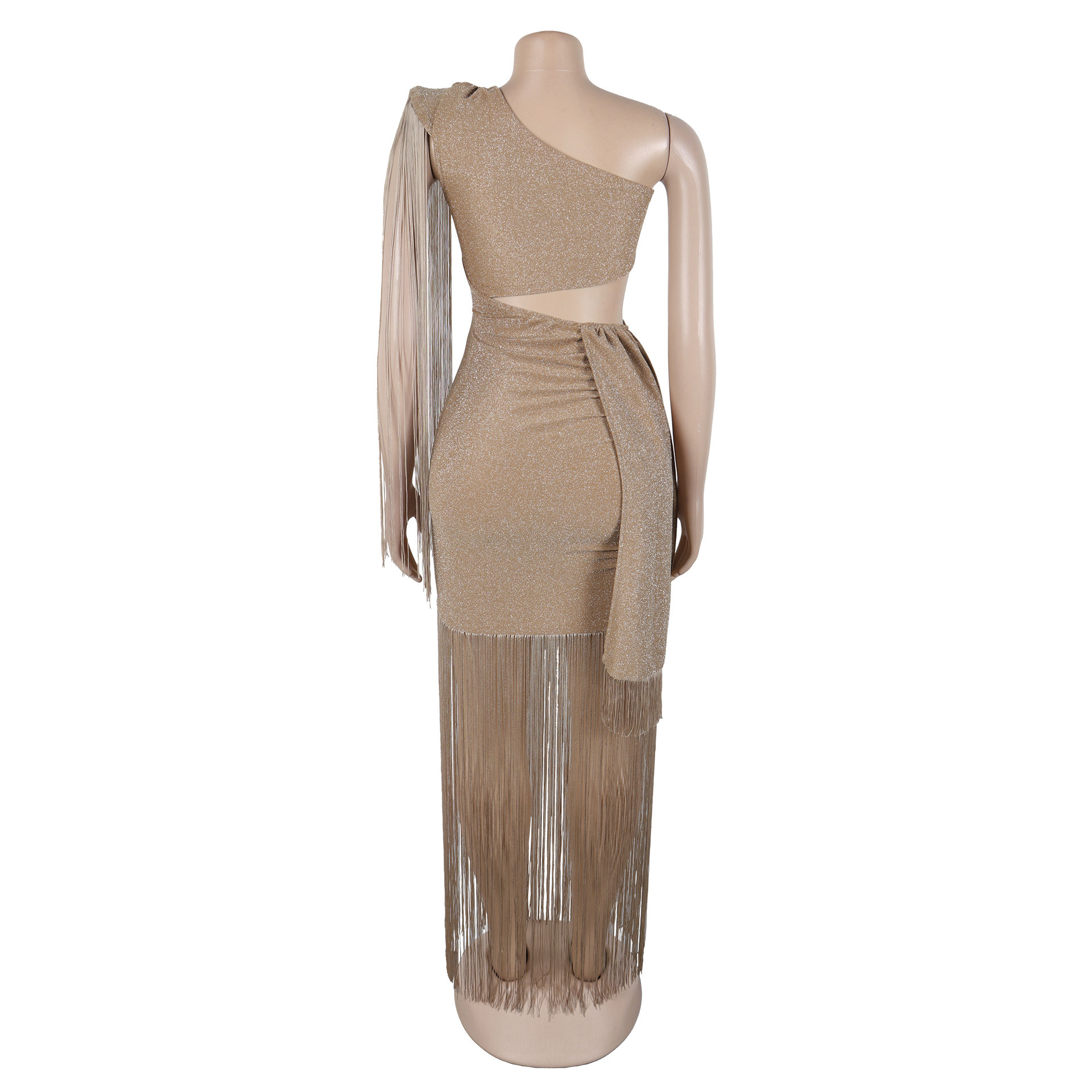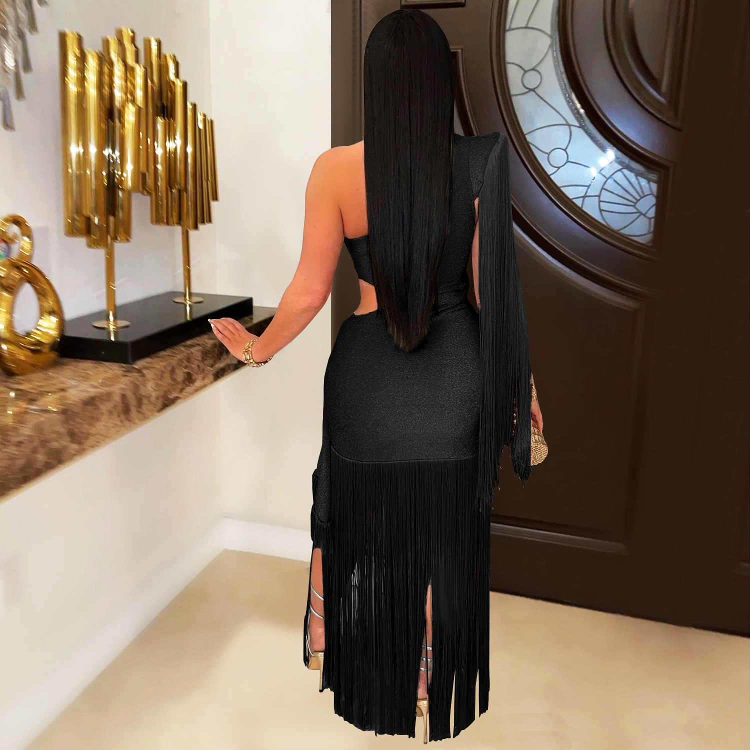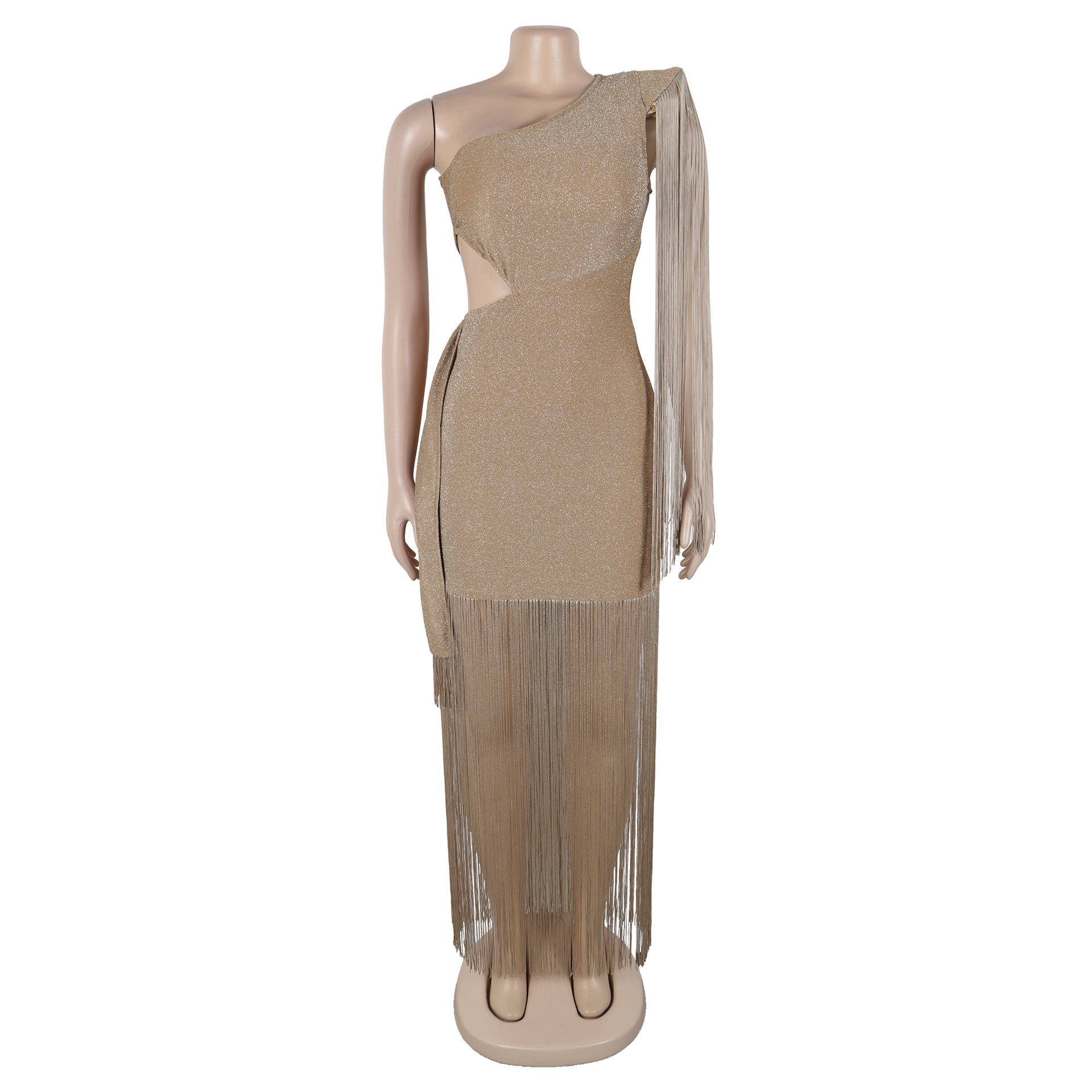 This Fashion Women's Sexy Casual One-Shoulder Tassel Maxi Dress Design Made Of Good Quality Polyester And Spandex Material, Which Is Stretchy, Durable And Comfortable. The Long Evening Dresses And Gowns Is Always The main Choice For All Kinds Of Parties, Cocktail, Prom, Events, And Dating Occasions. Evening Gowns At BamBam Comes With Huge Selections - Sequins, Beaded, Satin, Velvet, Lace.... When You Need retail Evening Dresses, BamBam retail Women Garment Online Shop Is Your One-Stop Online Shopping Choice.