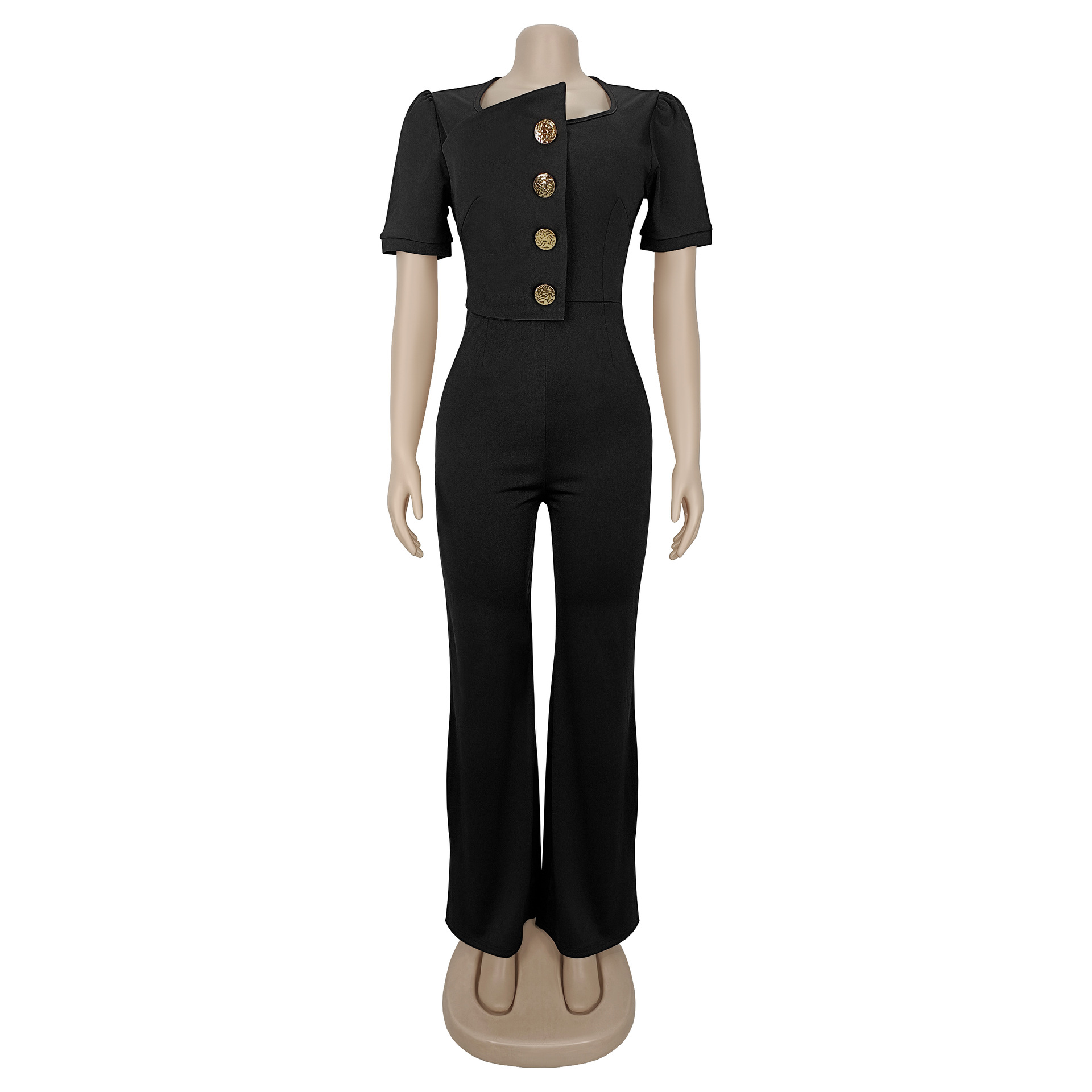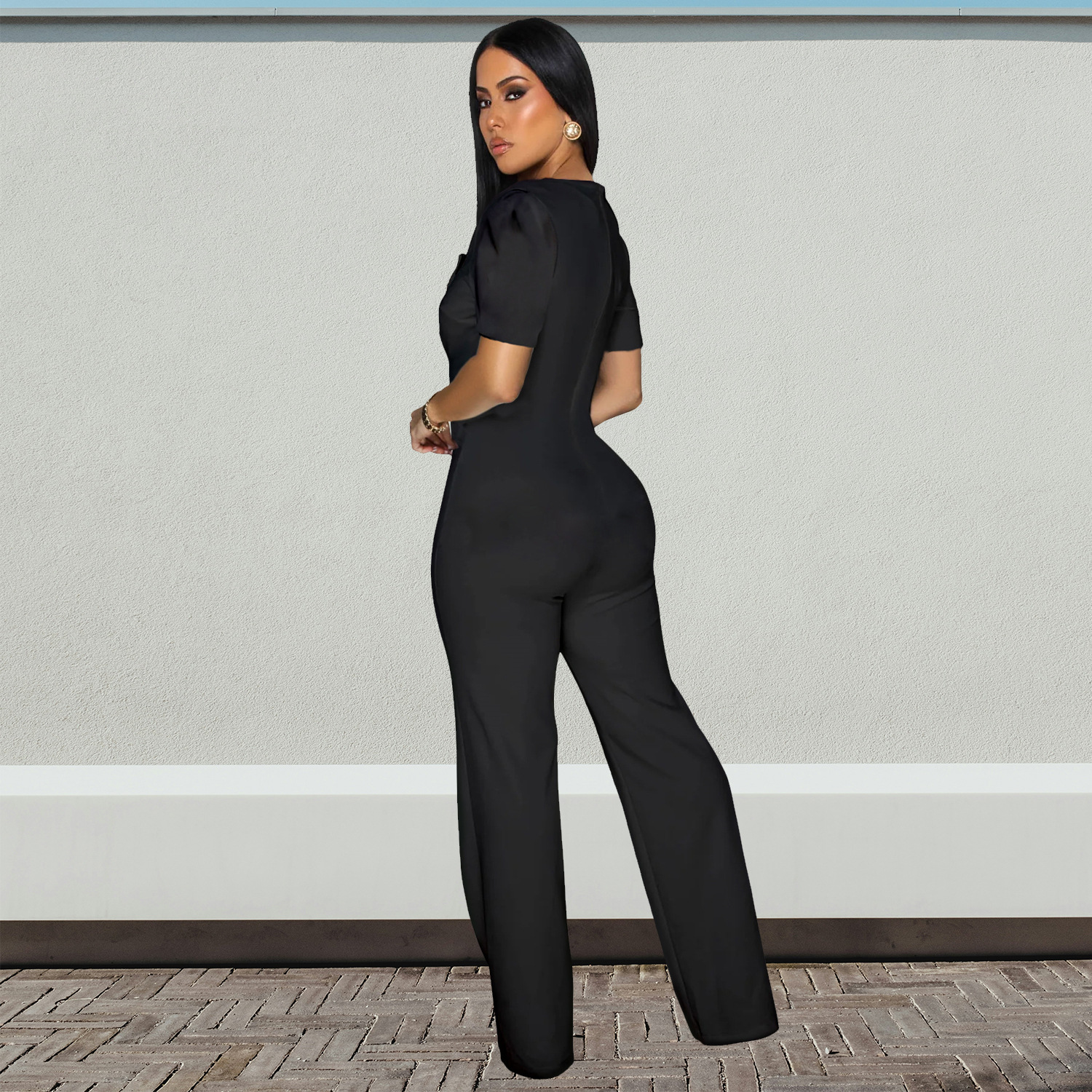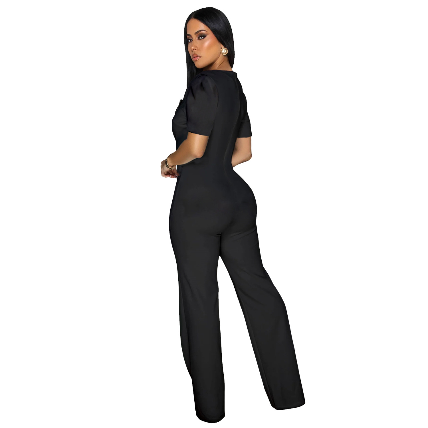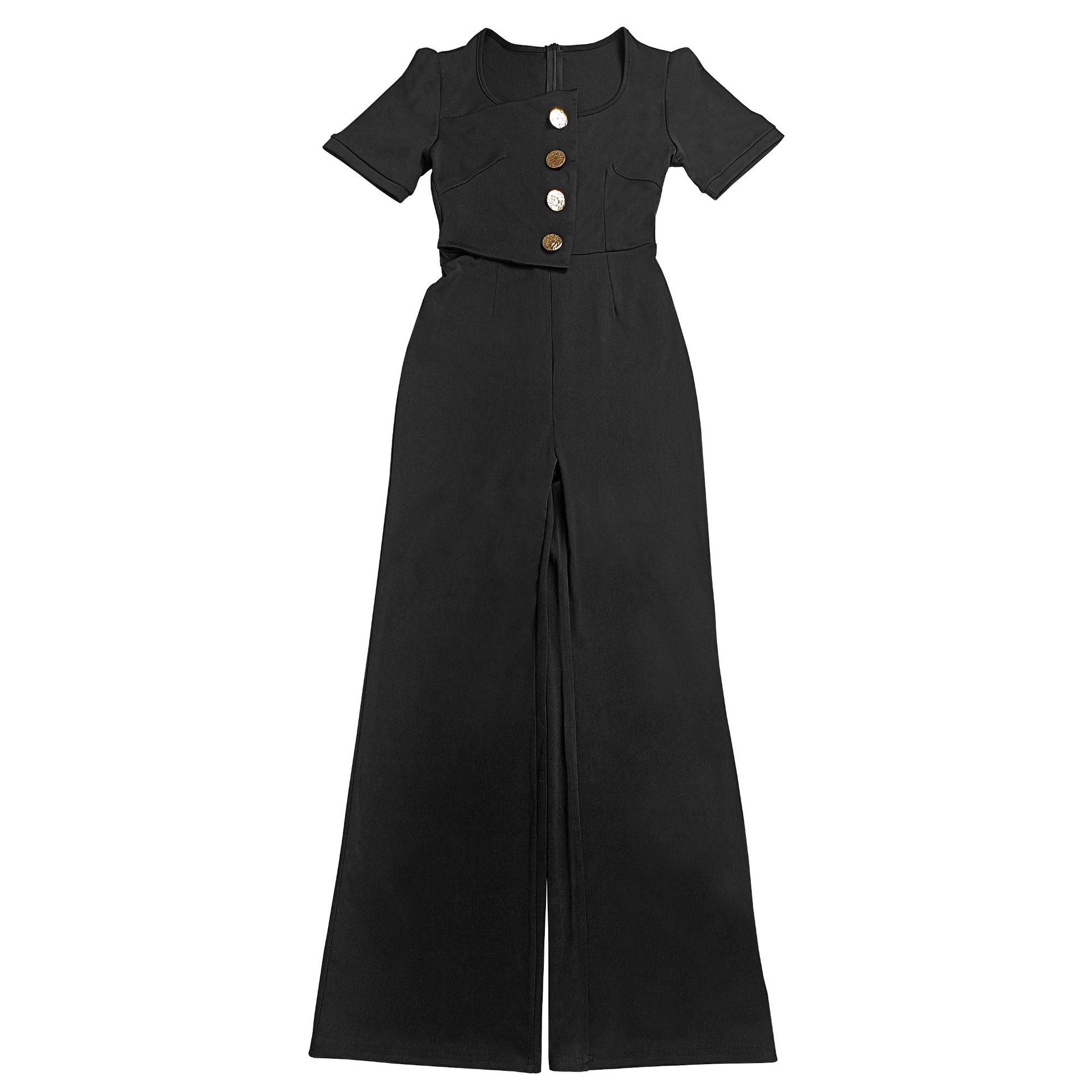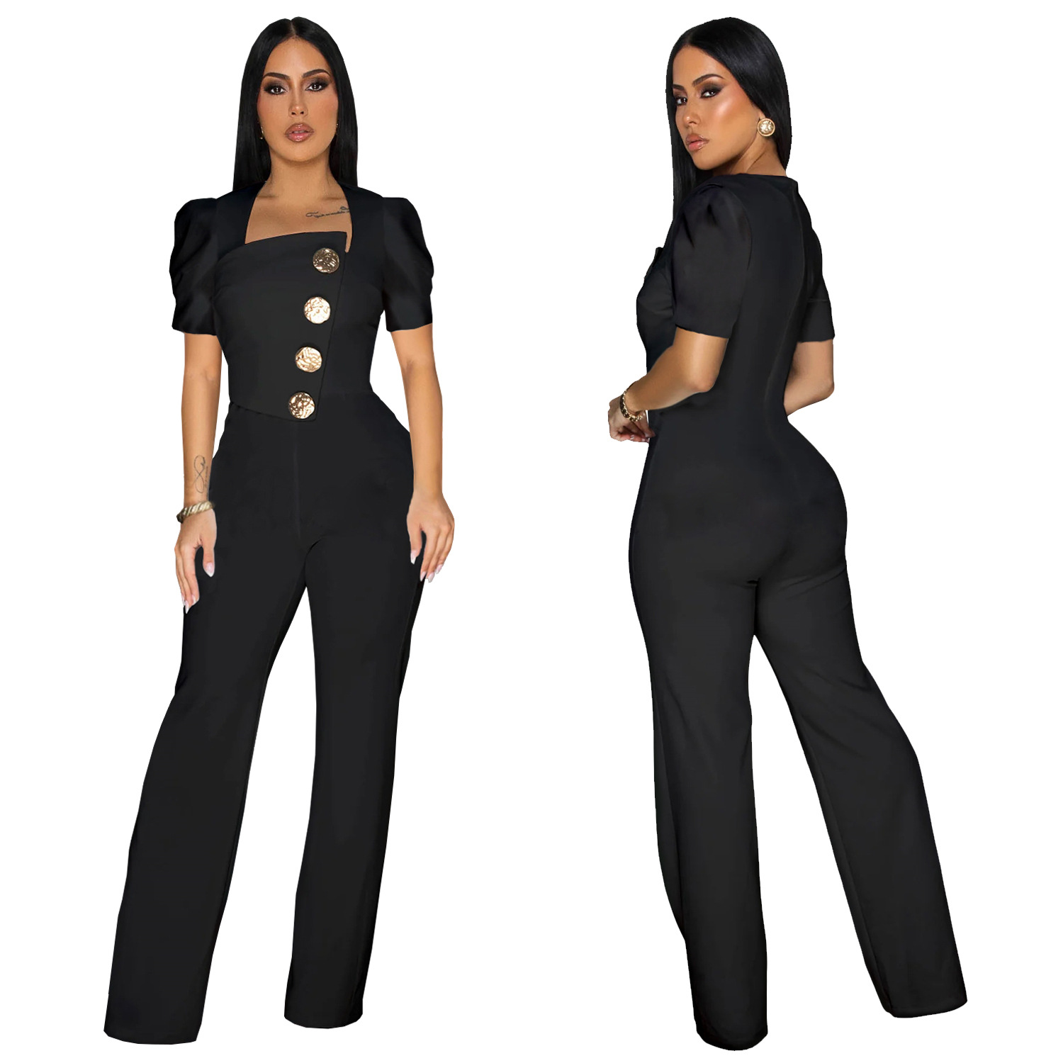 This Fashion Women's Short-Sleeve Wide-Leg Button Jumpsuit Design Made Of High Quality Polyster And Spandex Material. It Is Stretchy, Durable And Comfortable. Affordable Sexy Jumpsuits For Women Has Long Been a Party Favorite. BamBam provides a Rich selection Of Sequin, Beaded, See Through Mesh, Leopard, Floral Lace, Leather, Velvet, Tight And Fitted retail Jumpsuit Without Moq Limit.