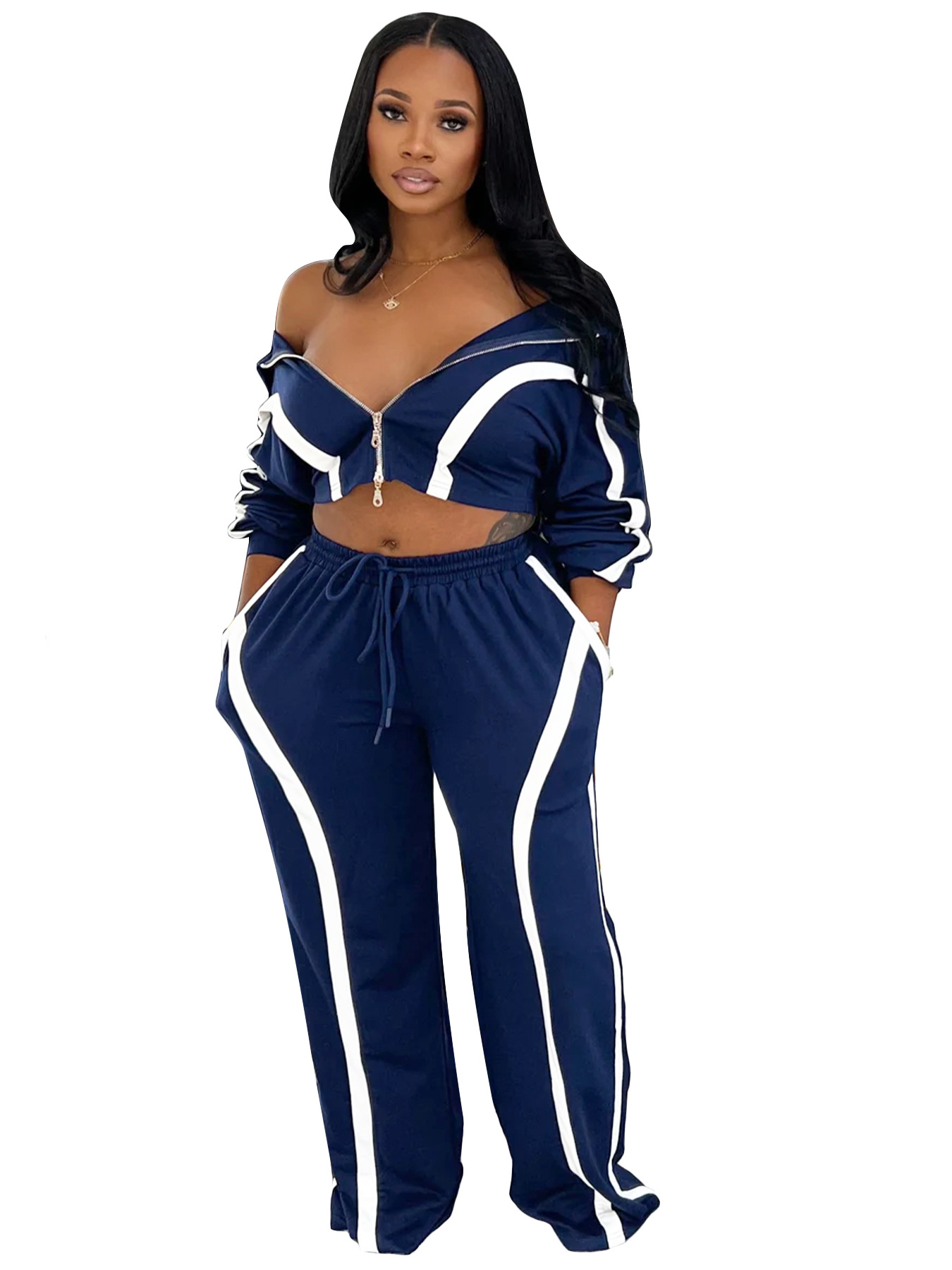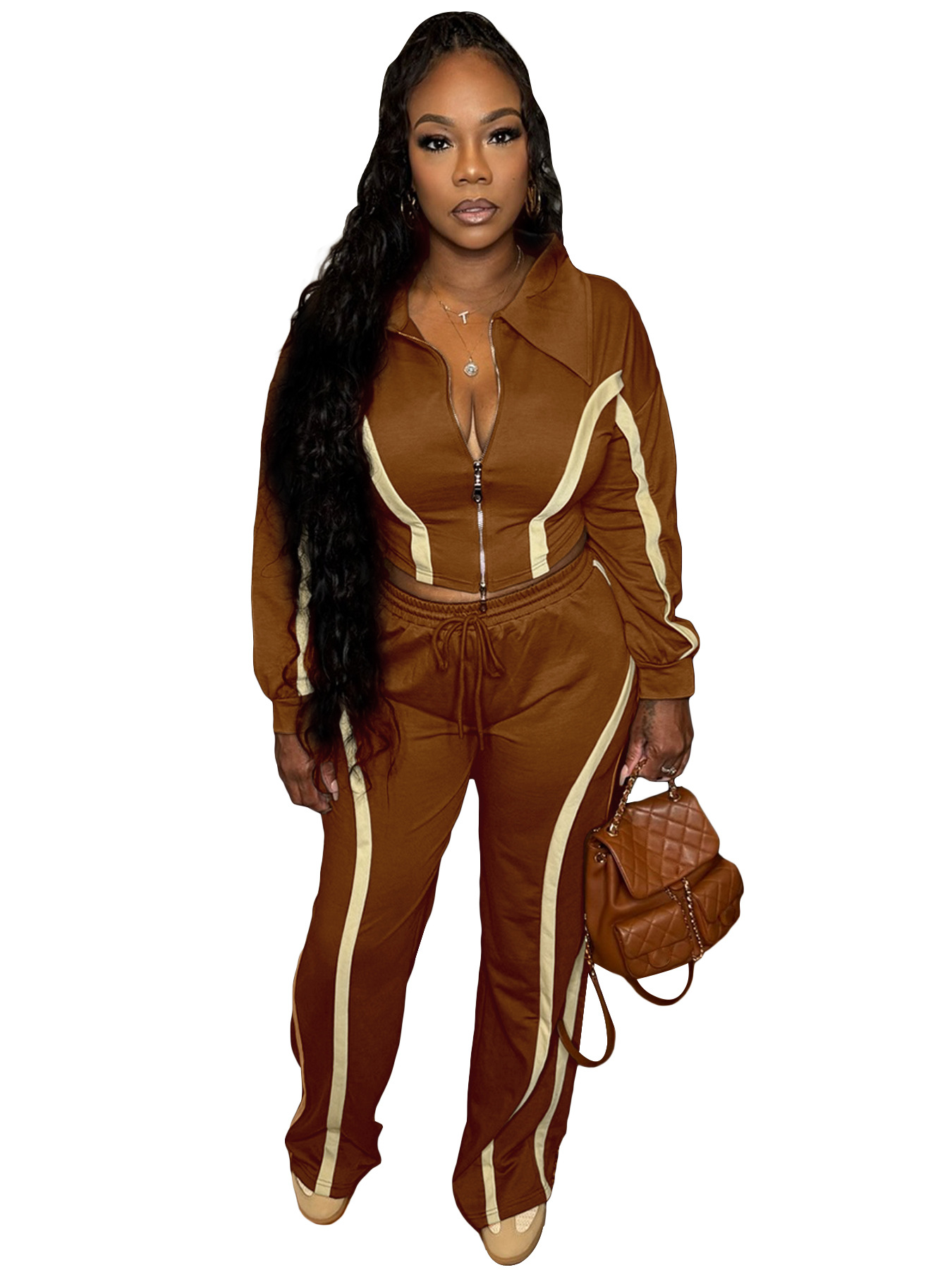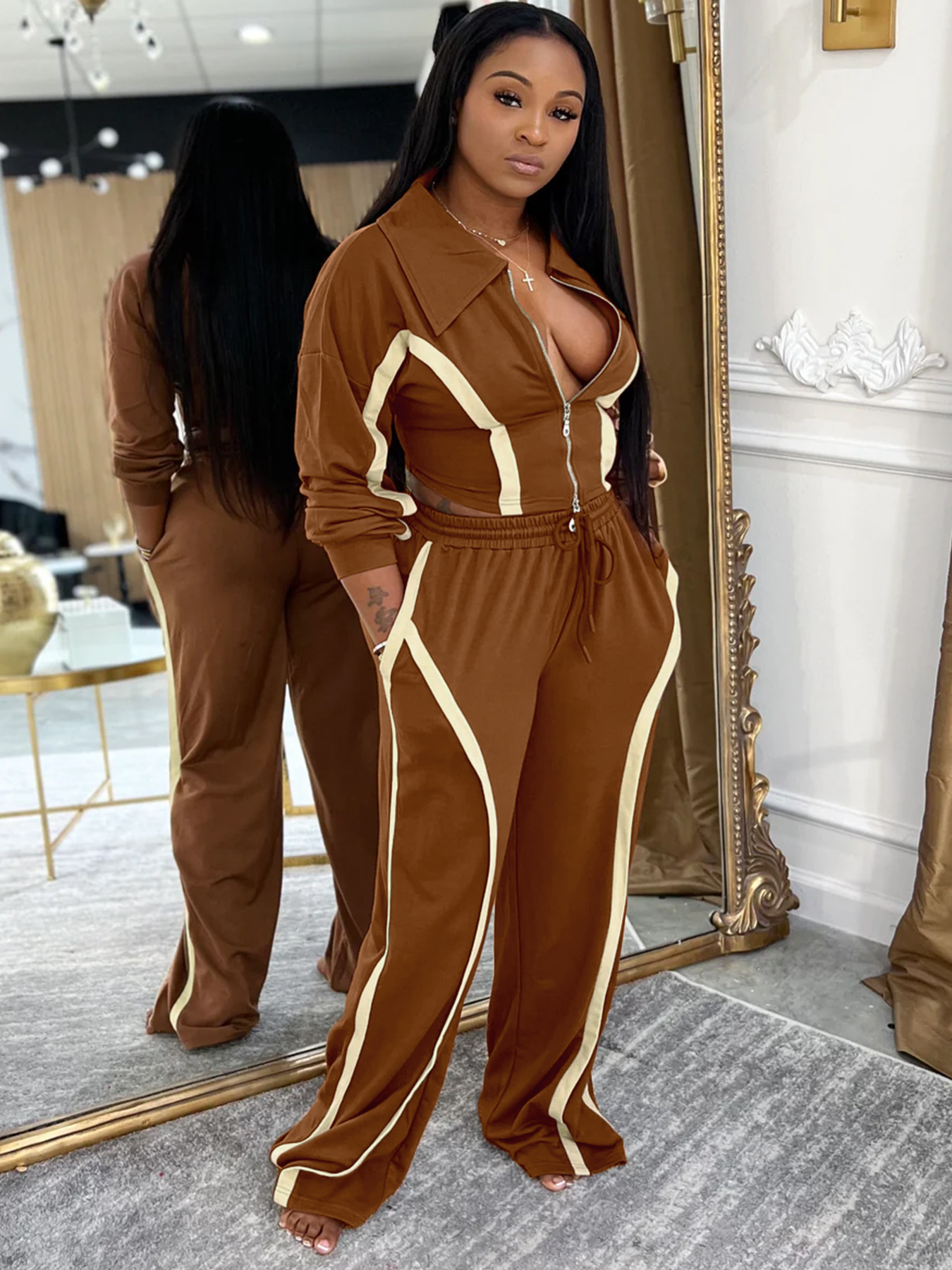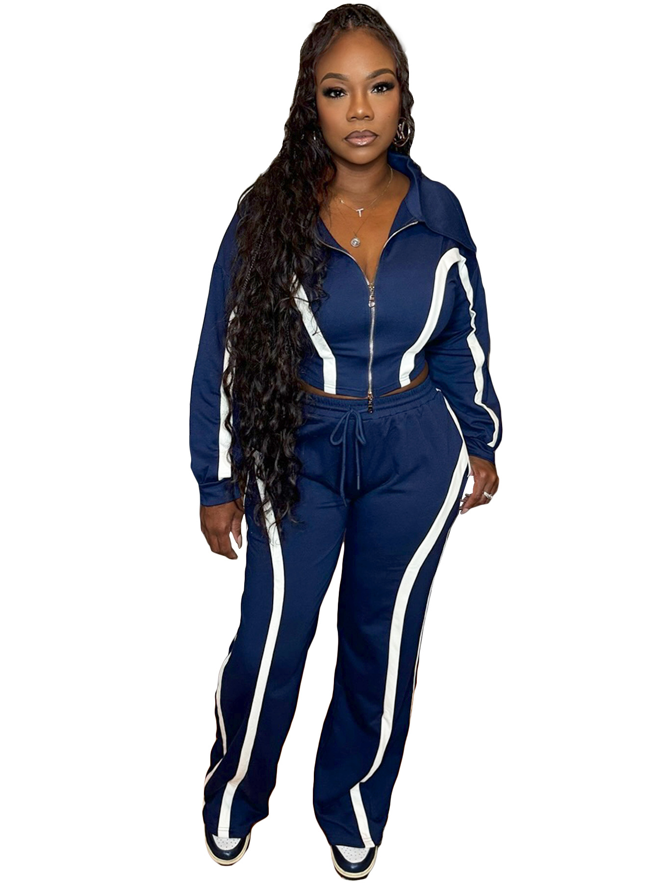This Fashion Women's Striped Patchwork Color Block Zipper Turndown Collar Top Wide Leg Pants Two-Piece Set Design Made Of High Quality polyester And Spandex Material. It Is Stretchy, Durable And Comfortable. It Is a Must-Have Outfit For All Seasons. retail Two Piece Pant Sets Can Solve Your cloth selection Troubles. Explore More 2 Piece Pants Set On BamBam retail Women Clothing Online Store.